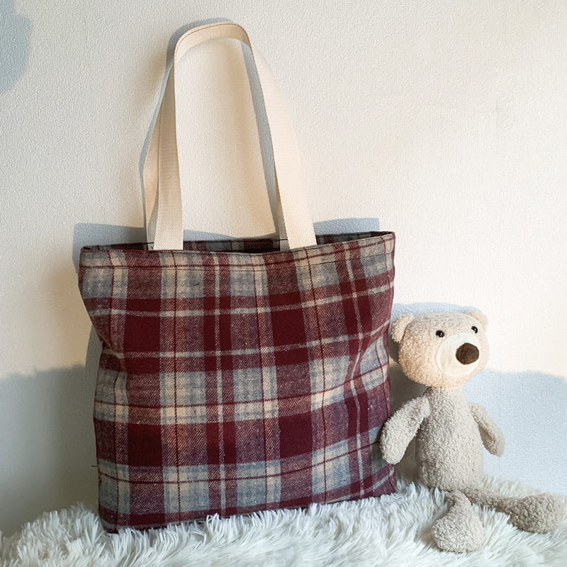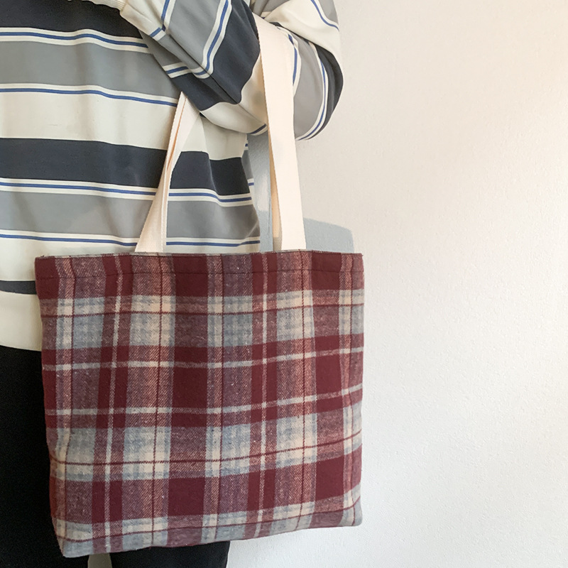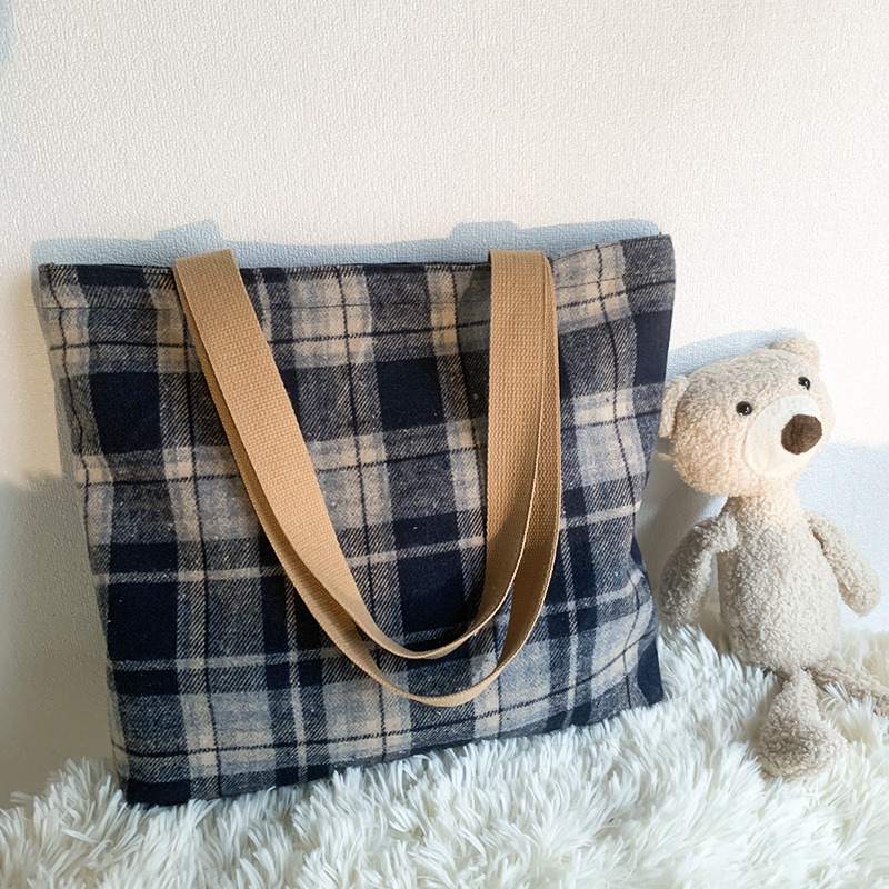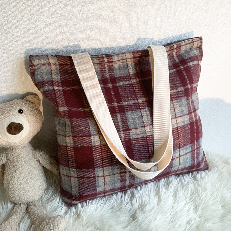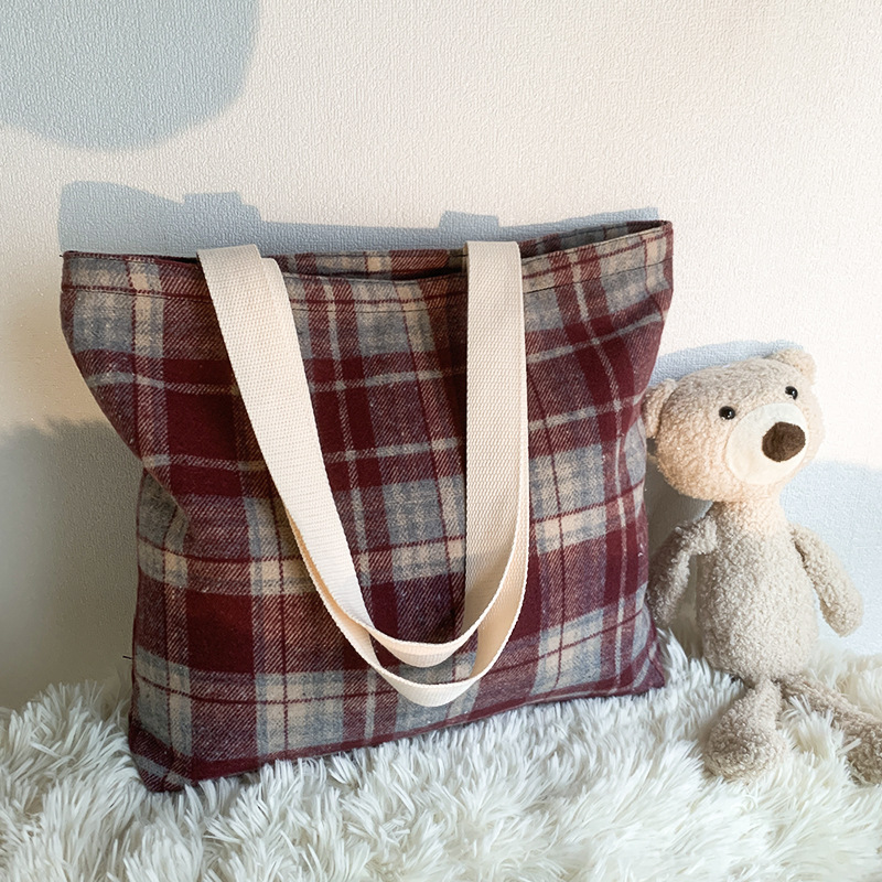 Retro color mezclado tejido lana Plaid hombro bolsa diaria versátil gran capacidad Plaid bolsa bolso de mano de las mujeres