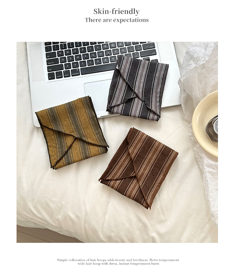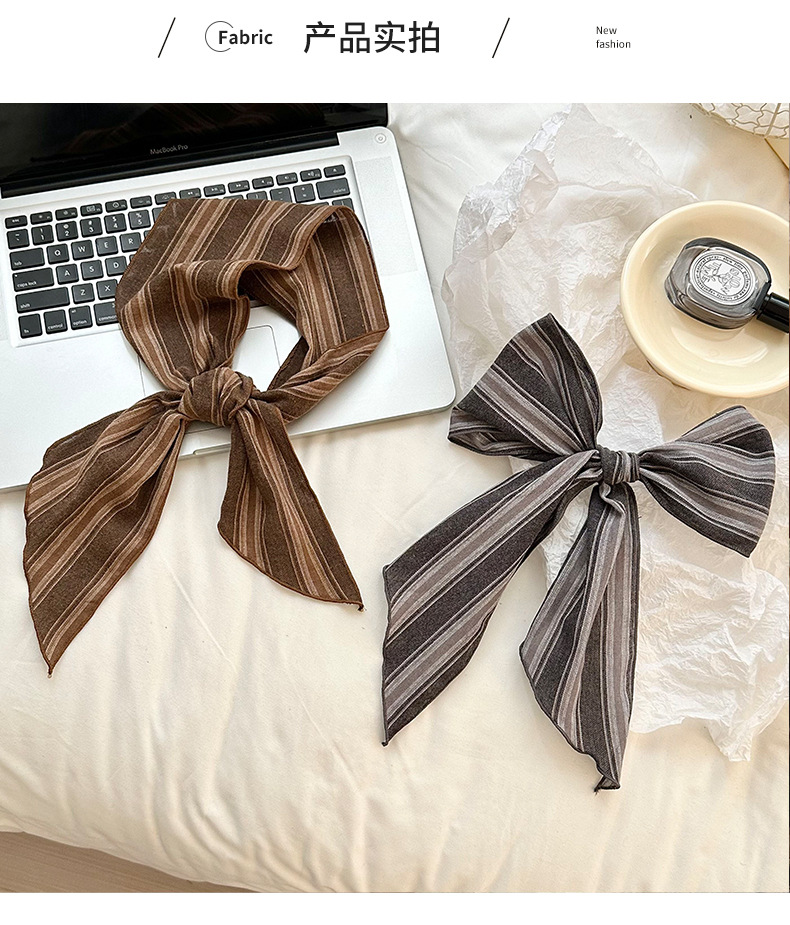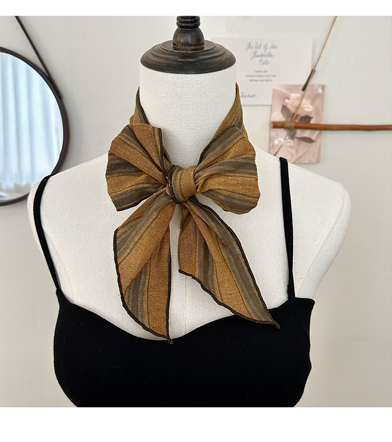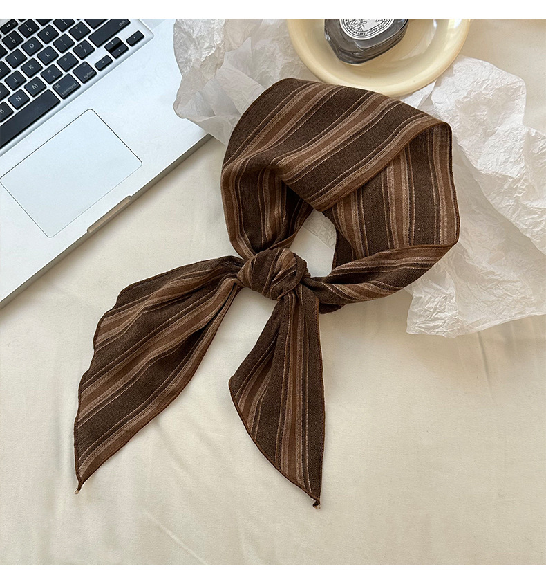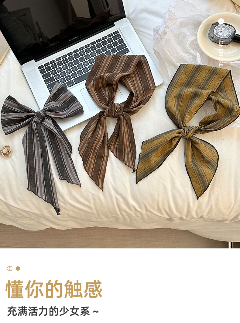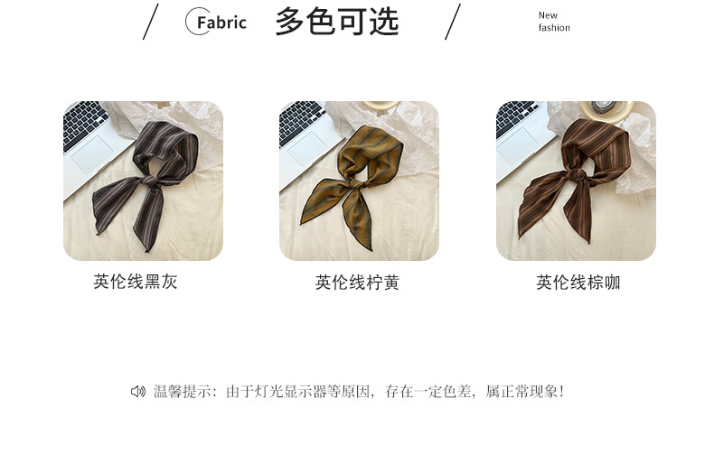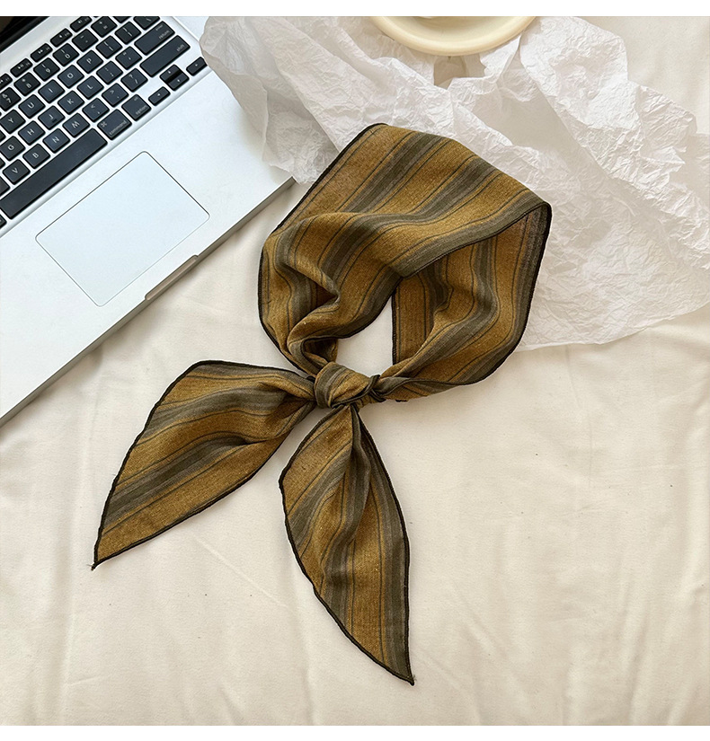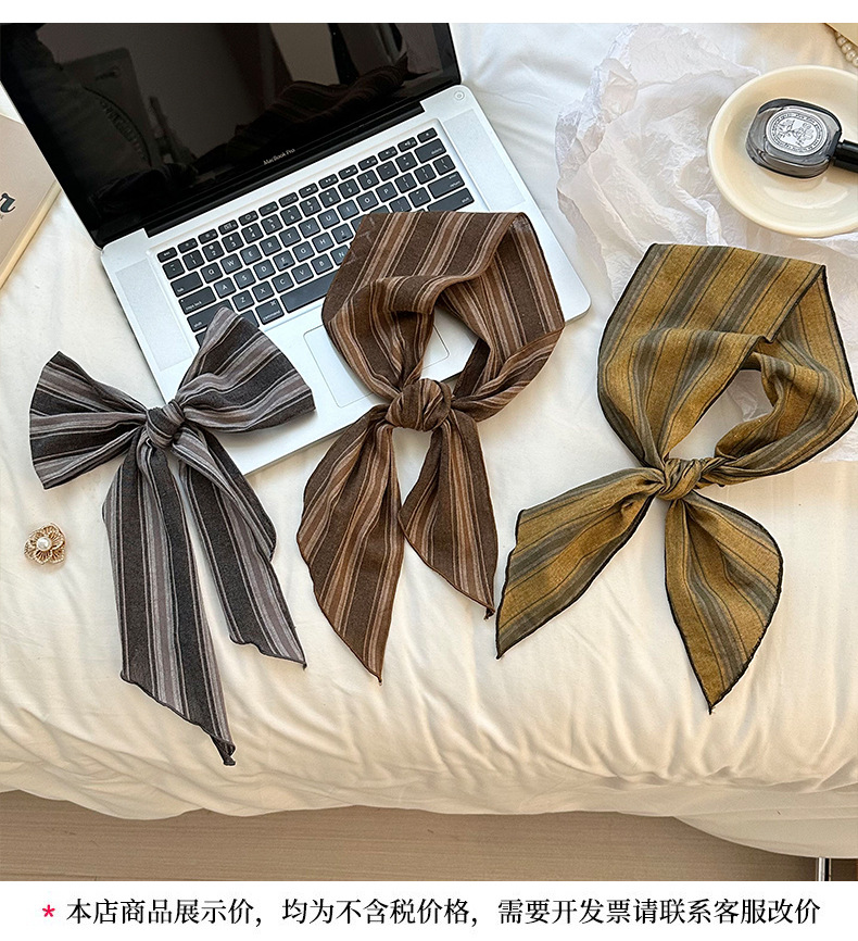 Bufanda de seda Sensación de alta gama Nuevo todo fósforo Vintage Rayas con cuello Bufanda delgada Bufanda en la cabeza Multiusos Cinta para el cabello Cinta