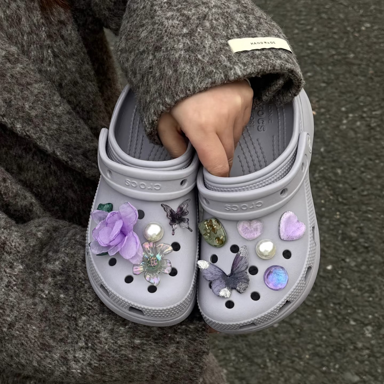 Butterfly Princess nuevos accesorios de zapatos agujeros de alta calidad, botones de zapatos agujeros de color púrpura, botones de botones de botones