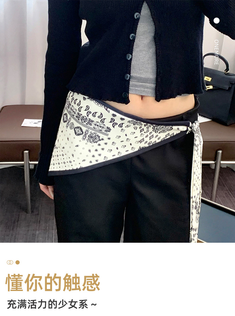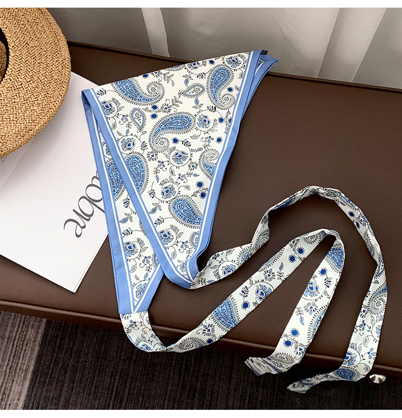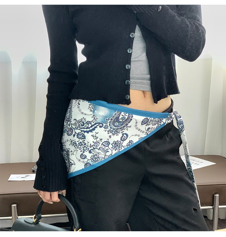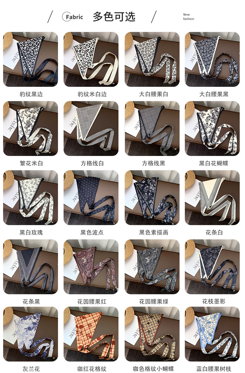 Toalla triangular con cintura, bufanda de seda con flor de anacardo retro, sensación de alta gama, cortina de pedo apilada multifuncional de verano, diadema de todo fósforo