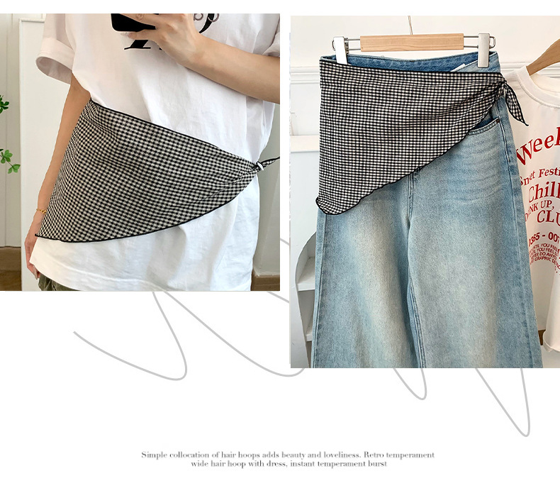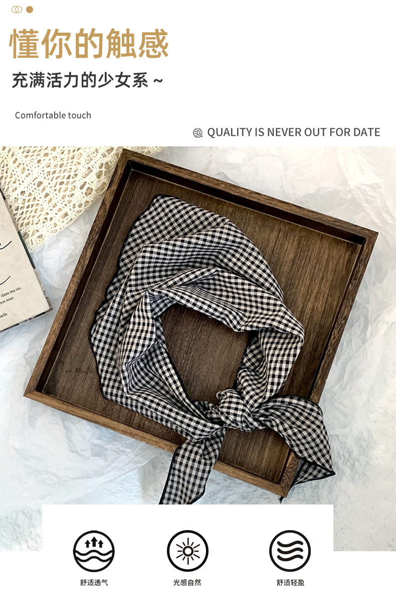 Pañuelo de seda de alta gama nuevo todo-fósforo retro a cuadros diadema cinturón para el cabello atado bufanda decorativa multiusos bufanda triangular cintura