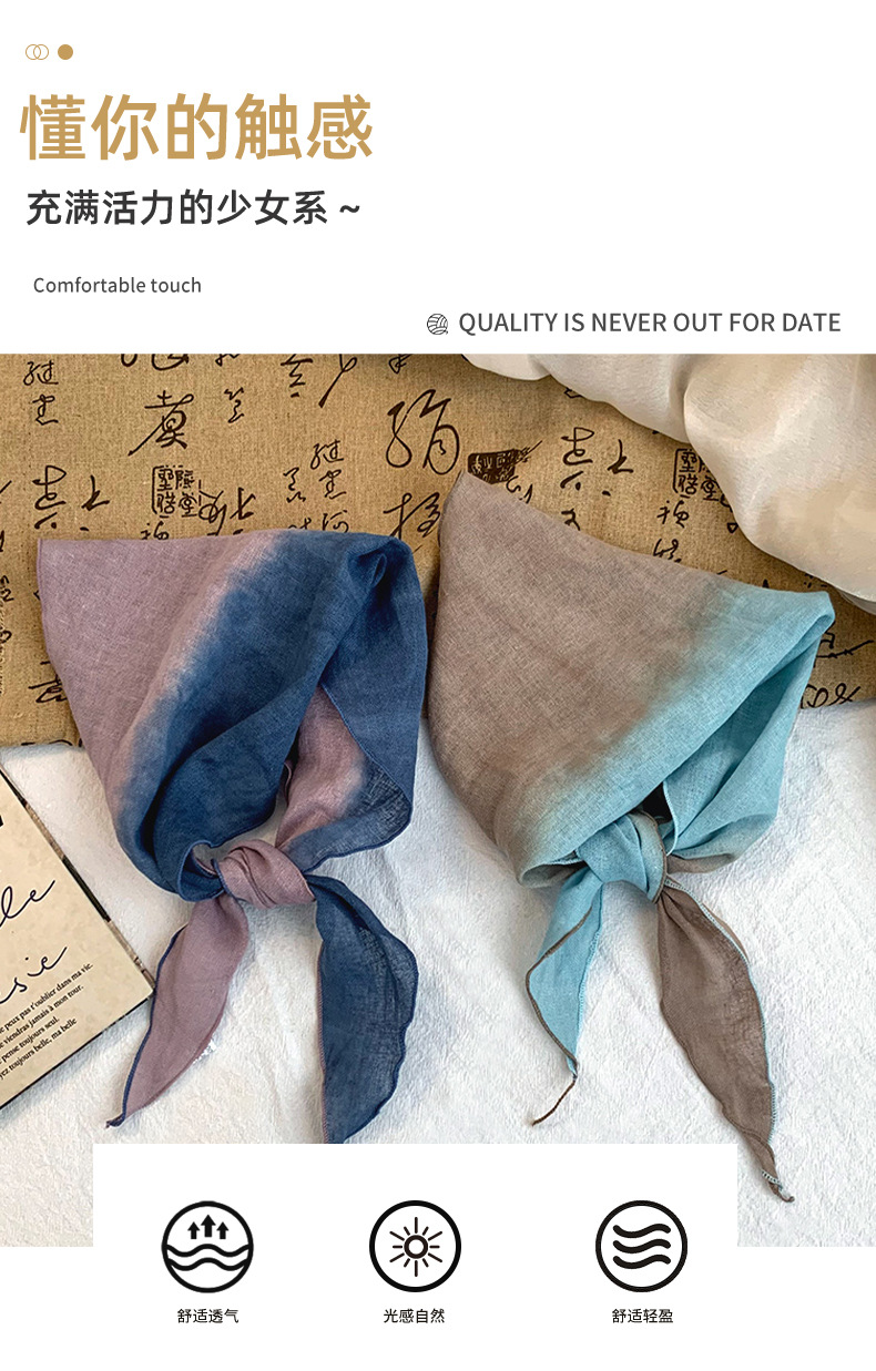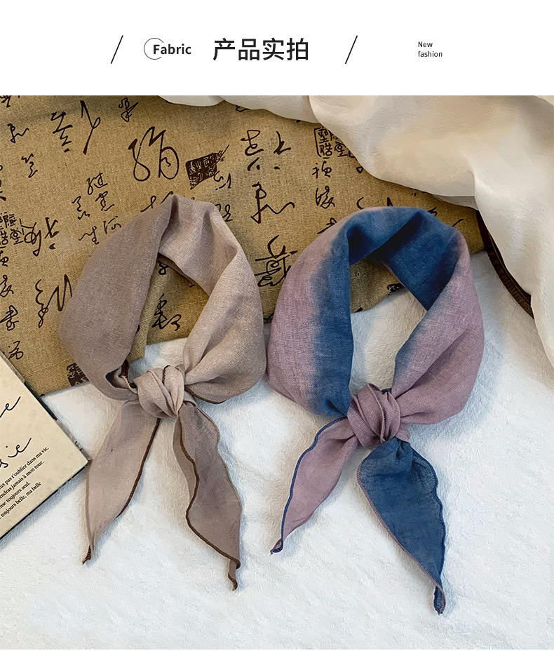 Pañuelo de seda de alta calidad nuevo estilo literario a juego de color algodón lino en forma de diamante bufanda decorativa pañuelo en la cabeza cinturón para el cabello protector para el cuello chal pequeño
