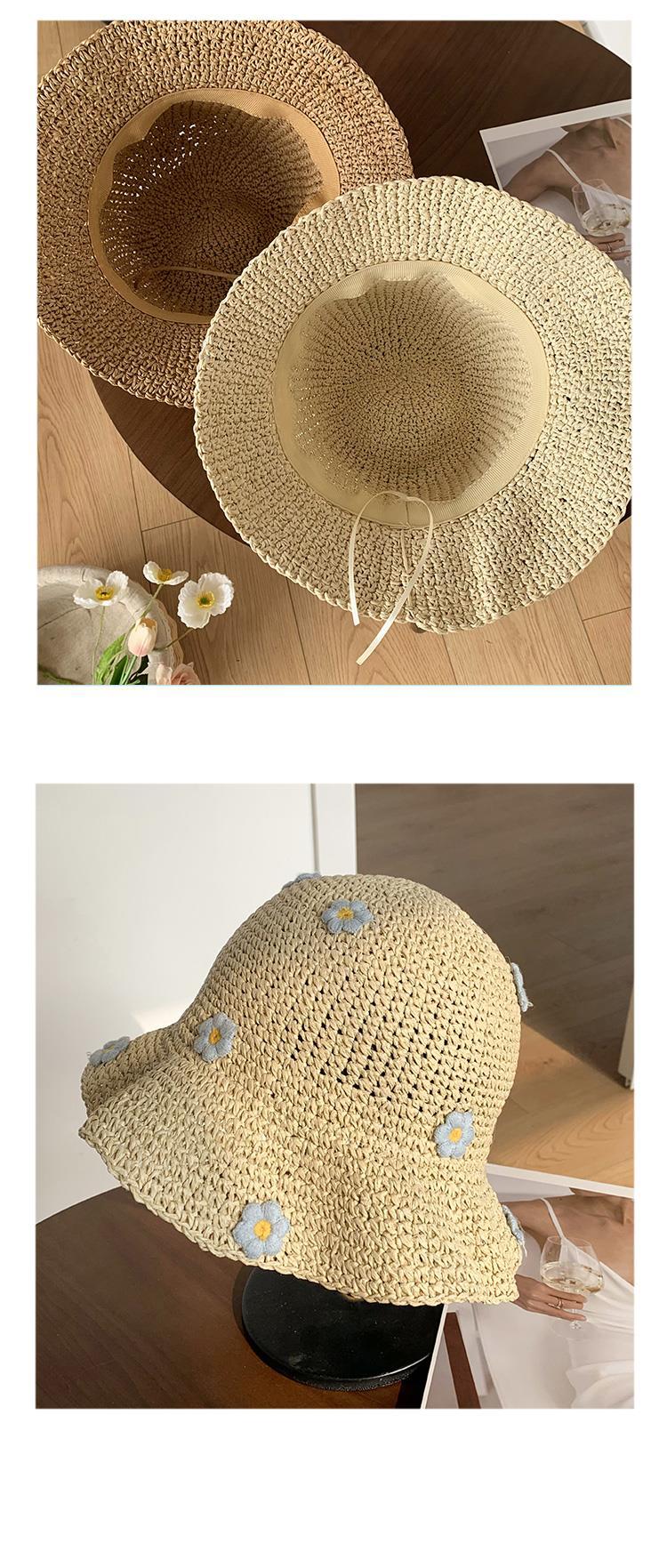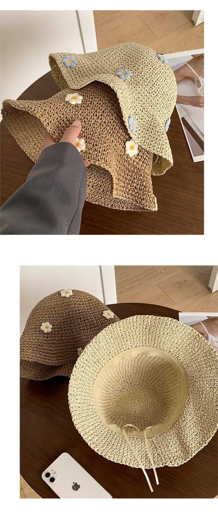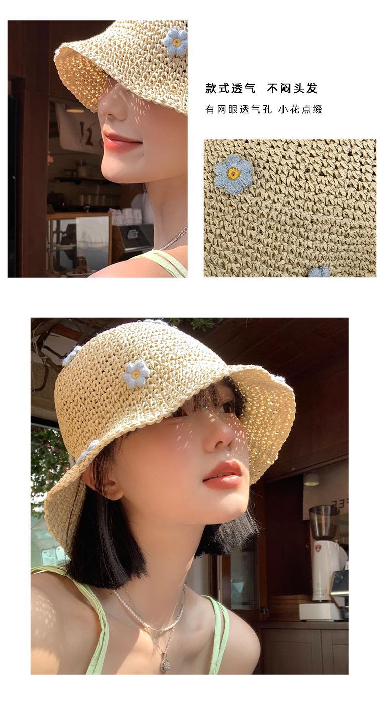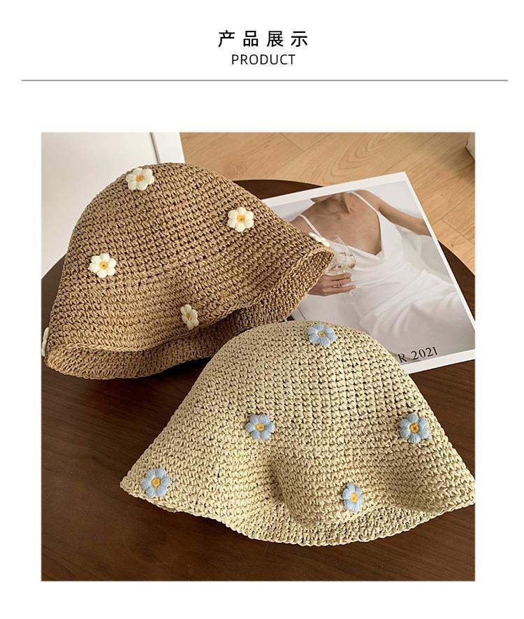 Sombrero de paja de flor de mujer verano transpirable a prueba de sol sombrero de cubo a prueba de sol estilo japonés sombrero de hierba de aspecto facial fresco