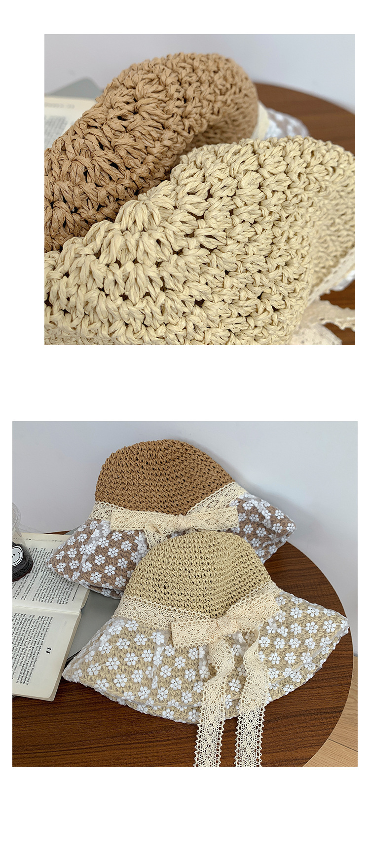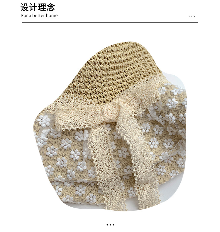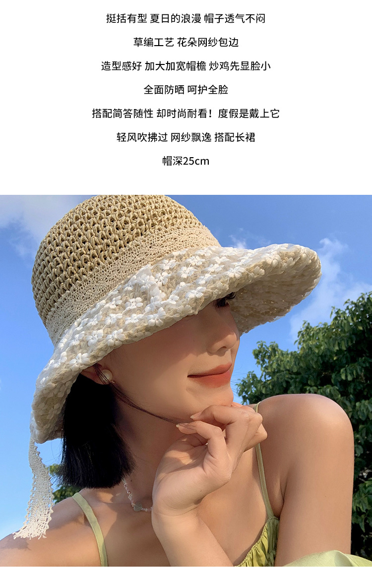 Encaje arco sombrero de paja de las mujeres verano transpirable ala grande protección solar sombrero estilo coreano playa sombrero para viajes junto al mar