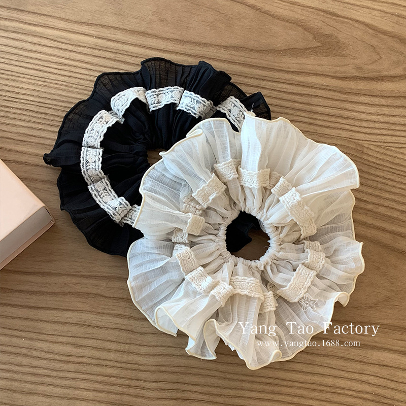 Nuevo estilo coreano encaje plisado anillo para el cabello femenino con sentido de alta gama cola de caballo cuerda de cabeza grande accesorios para el cabello de moda de celebridades de Internet