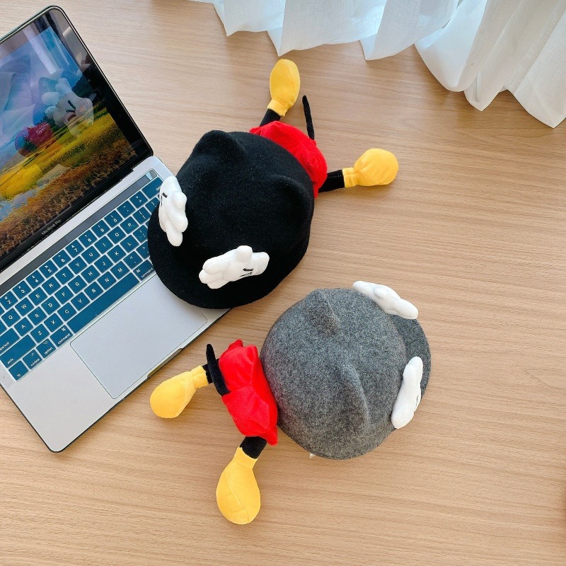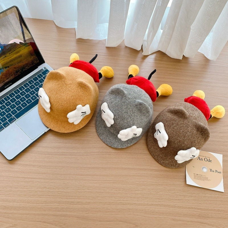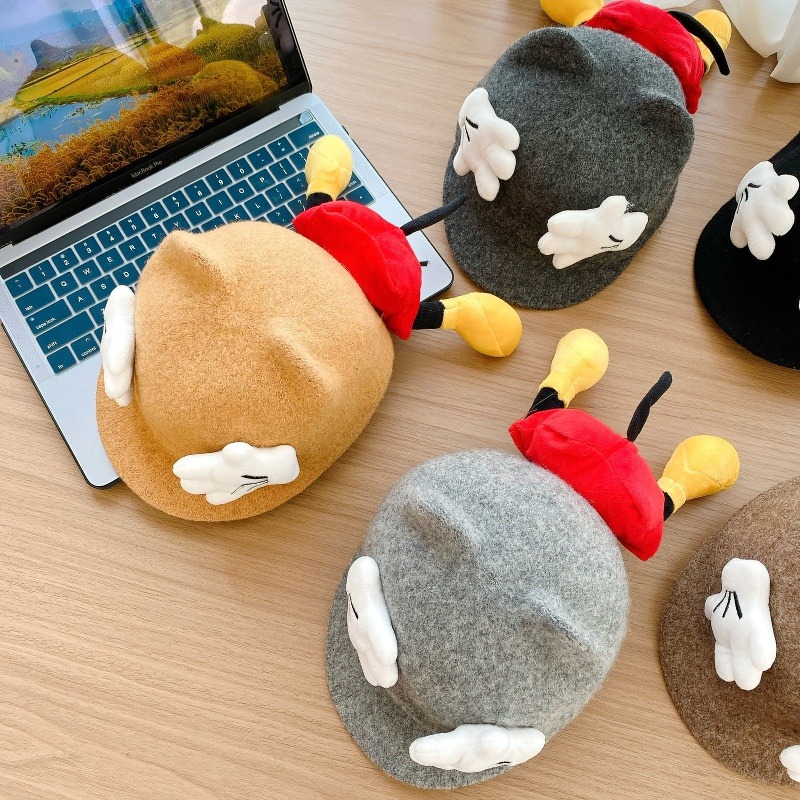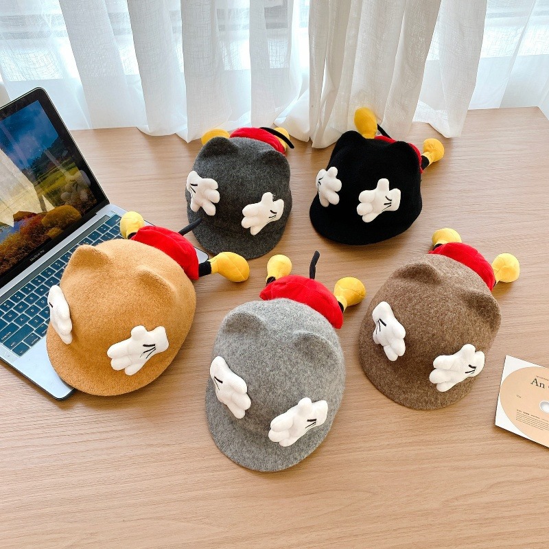 Sombreros para bebés otoño y invierno gorras de caballo de lengua de pato lindas sombreros de sol de Mickey para niños y niñas sombreros de cachemira de invierno
