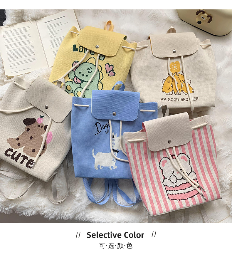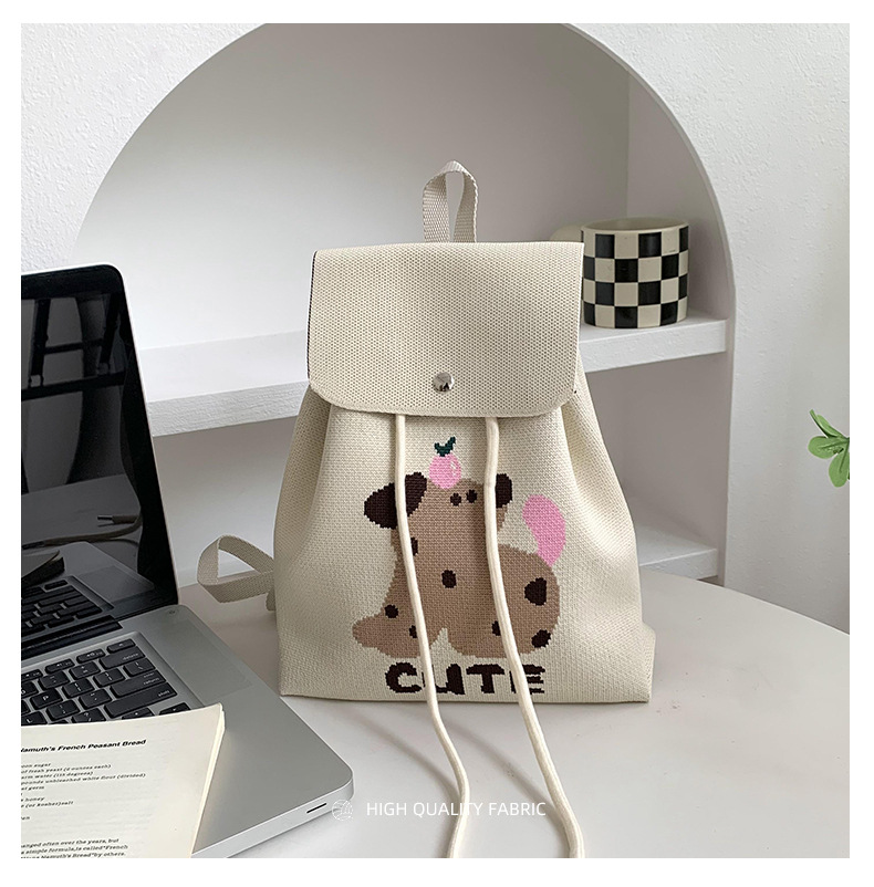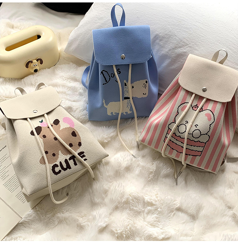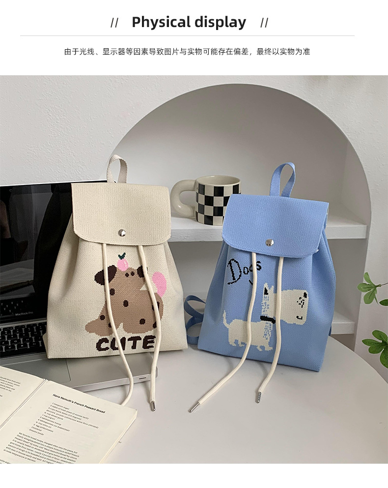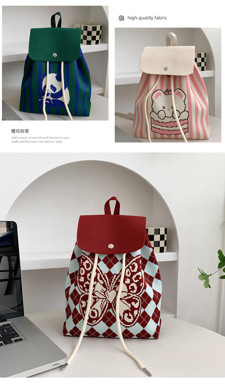 Mochila de alta calidad para damas nueva personalidad de dibujos animados versátil de gran capacidad de viaje bolsa de tejido portátil mochila de punto