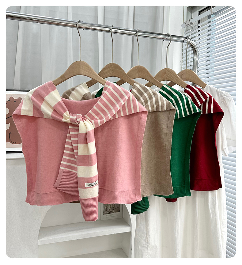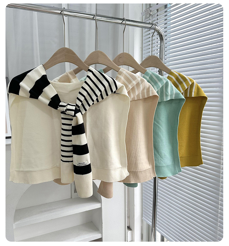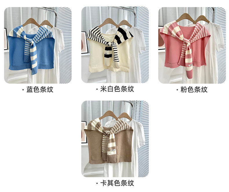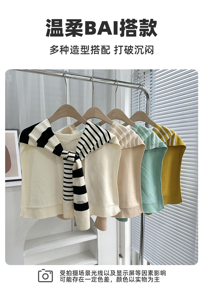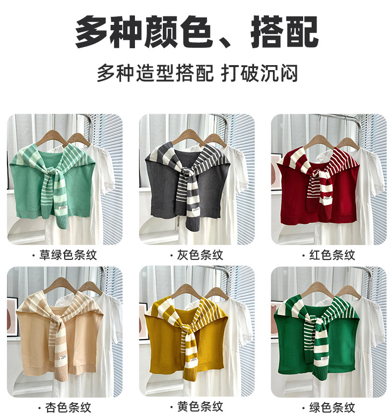 Primavera y otoño tejido a rayas cruzadas pequeñas sopales de cuello decoración delgada hombro de collar falso cardigan nudo