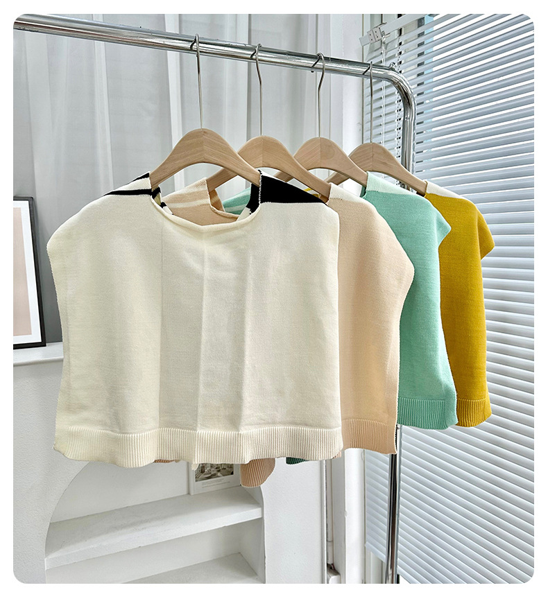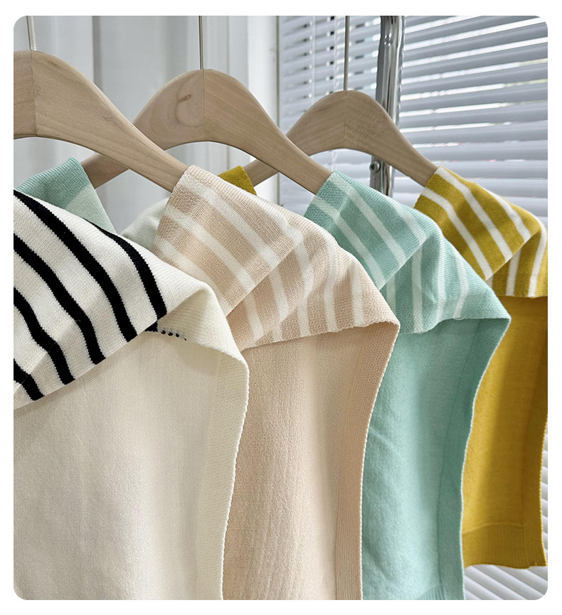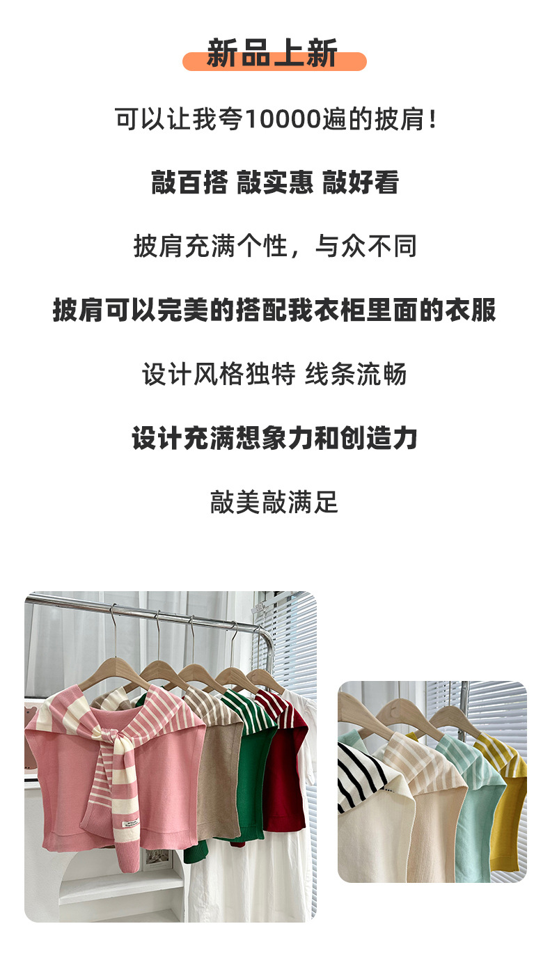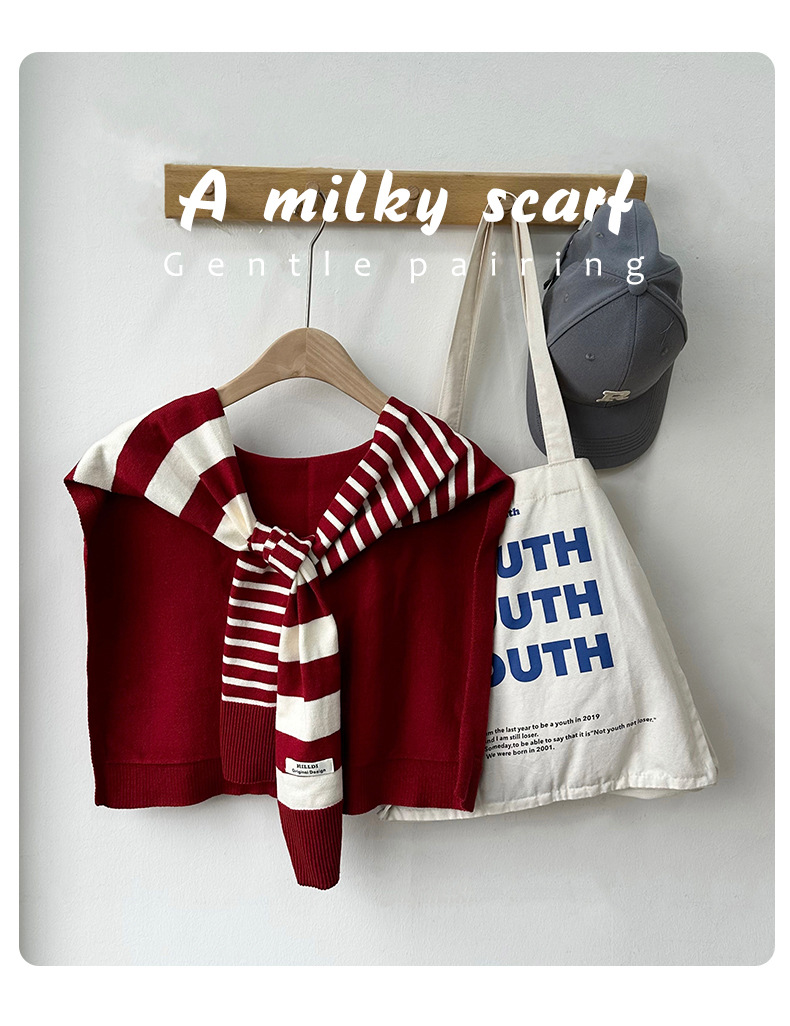Primavera y otoño tejido a rayas cruzadas pequeñas sopales de cuello decoración delgada hombro de collar falso cardigan nudo