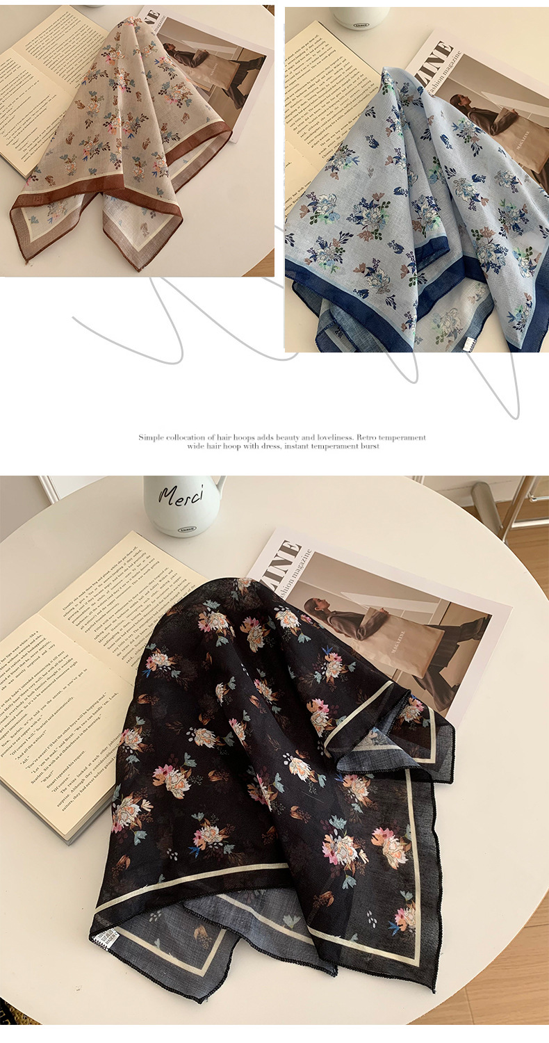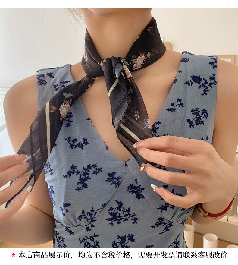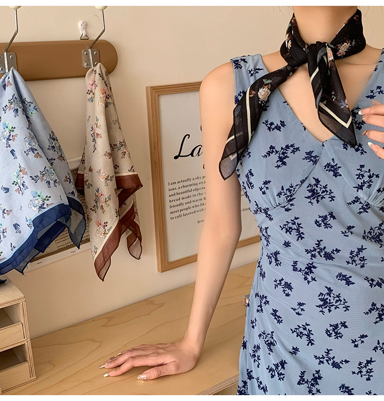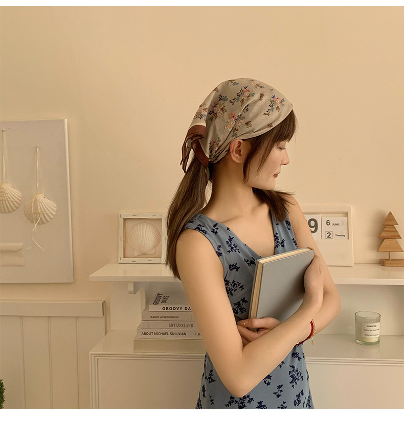 Bufanda de seda Bufanda cuadrada Sense de alta calidad Bufanda cuadrada pequeña decorativa Bufanda pequeña Bufanda multiusos Verano femenino Estilo pastoral Cinturón para el cabello Atar el cabello
