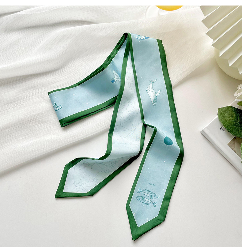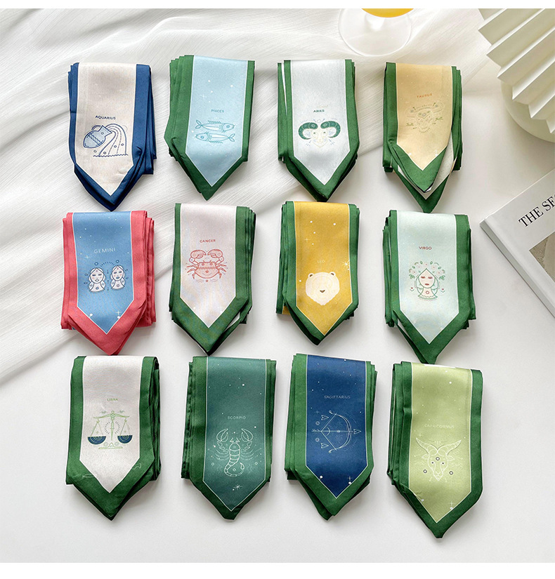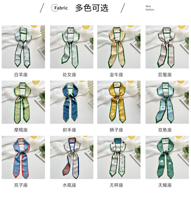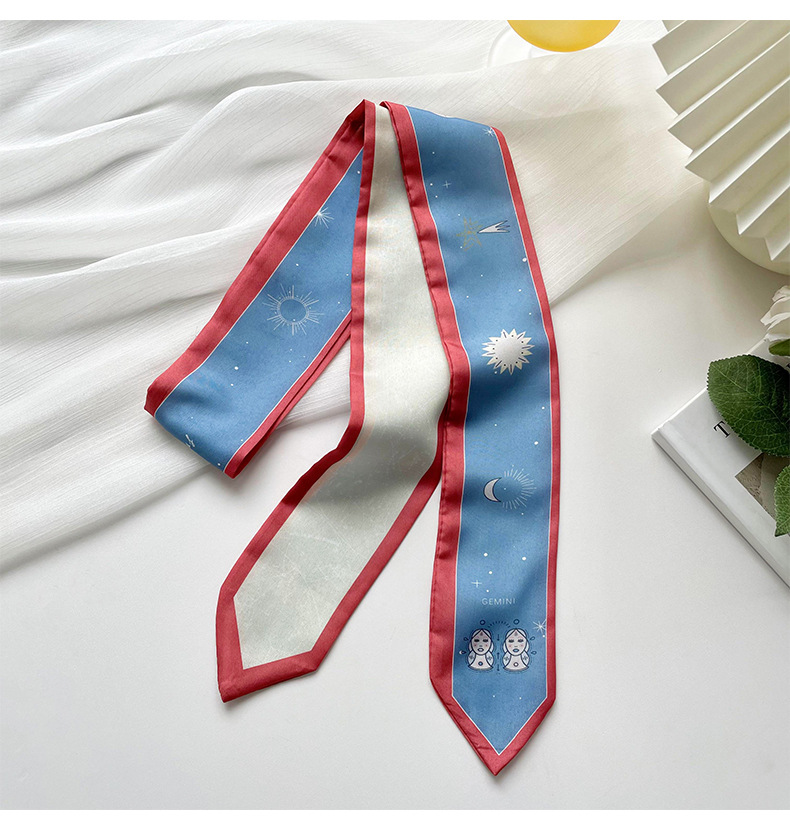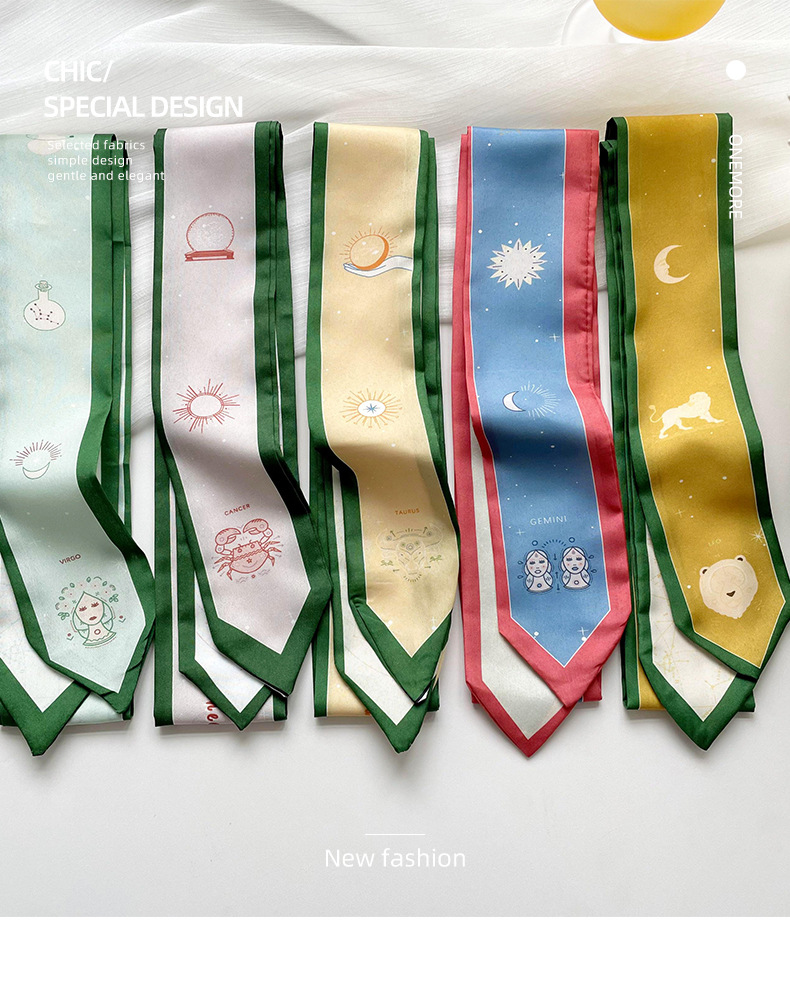 Doce constelaciones delgada estrecha larga bufanda de seda de primavera y verano todo partido corbata pajarita bolsa de corbata de pelo cinta decorativa accesorios para el cabello