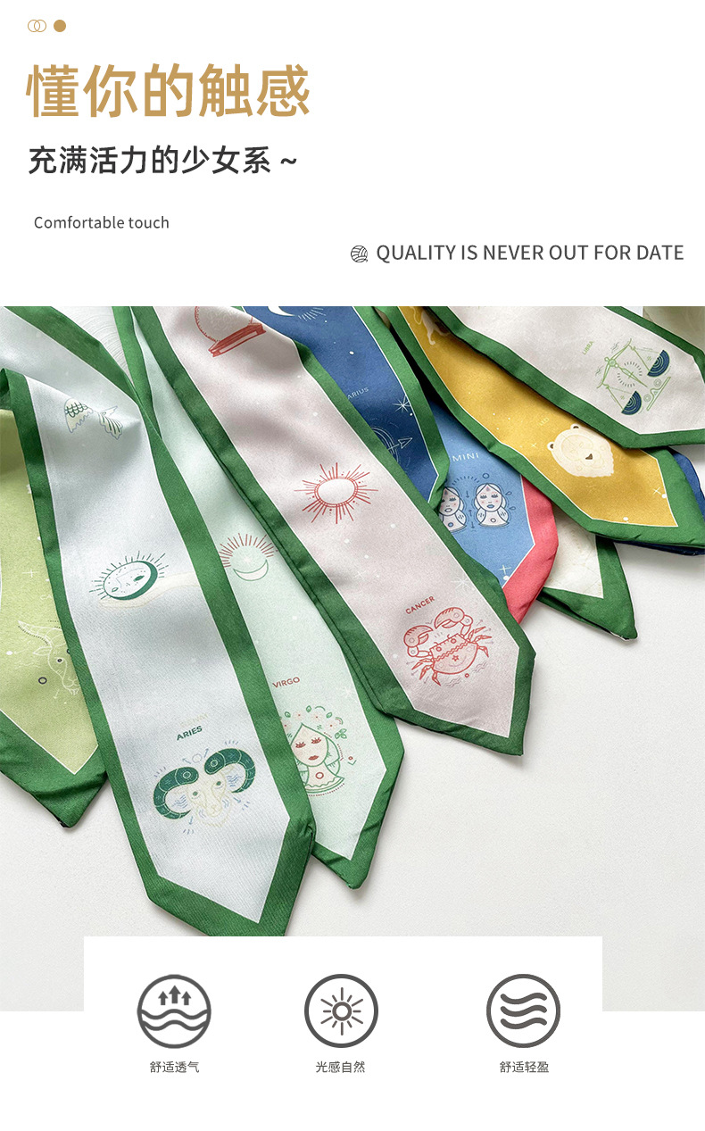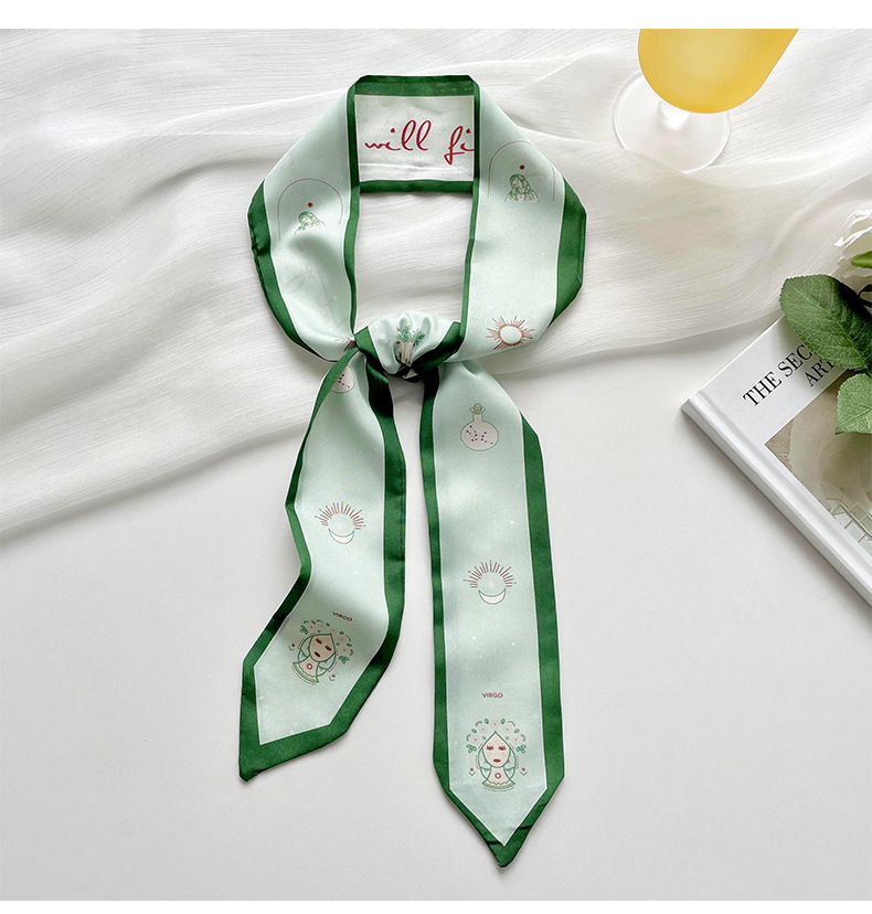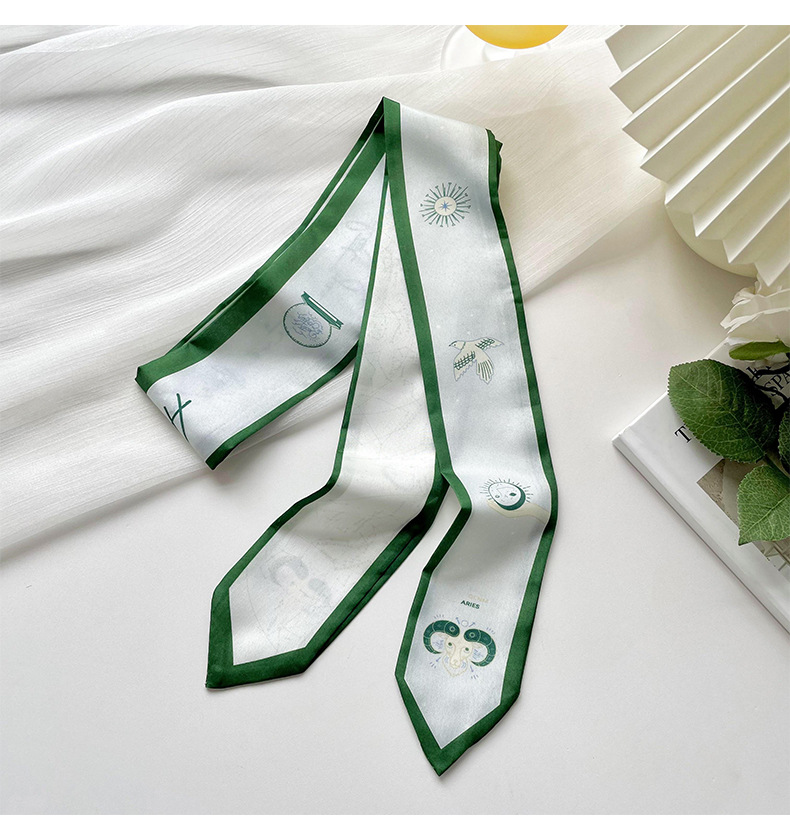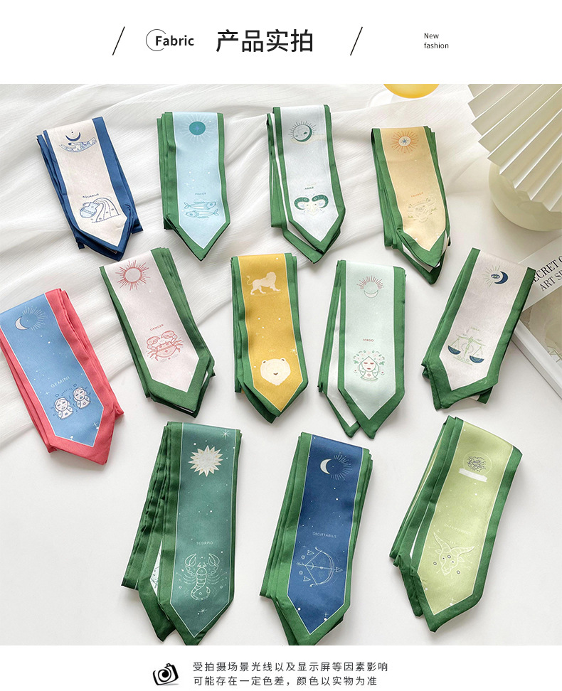 Doce constelaciones delgada estrecha larga bufanda de seda de primavera y verano todo partido corbata pajarita bolsa de corbata de pelo cinta decorativa accesorios para el cabello
