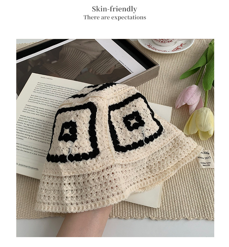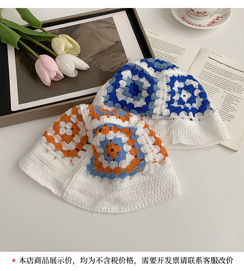 Sombrero de cabeza grande Sombrero de pescador de arte japonés Sombrero plegable de cúpula de flores de punto a juego de color para mujer Sombra de protección solar