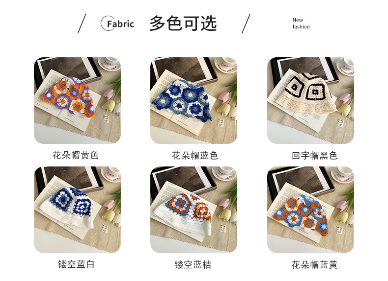 | Colores | Sombrero de flores amarillo,Sombrero de flores azul,Sombrero de palabra espalda negro,Azul y blanco hueco,Naranja azul hueca,Sombrero de flores azul y amarillo |