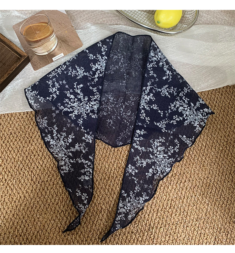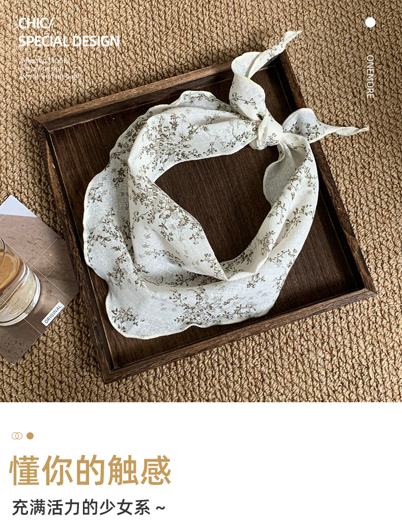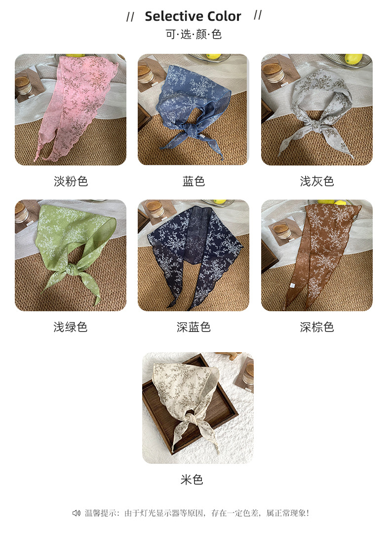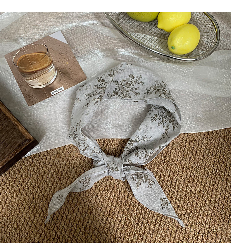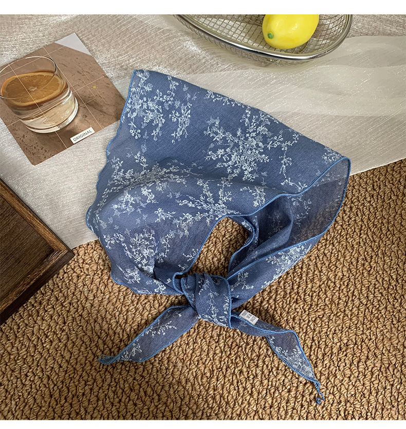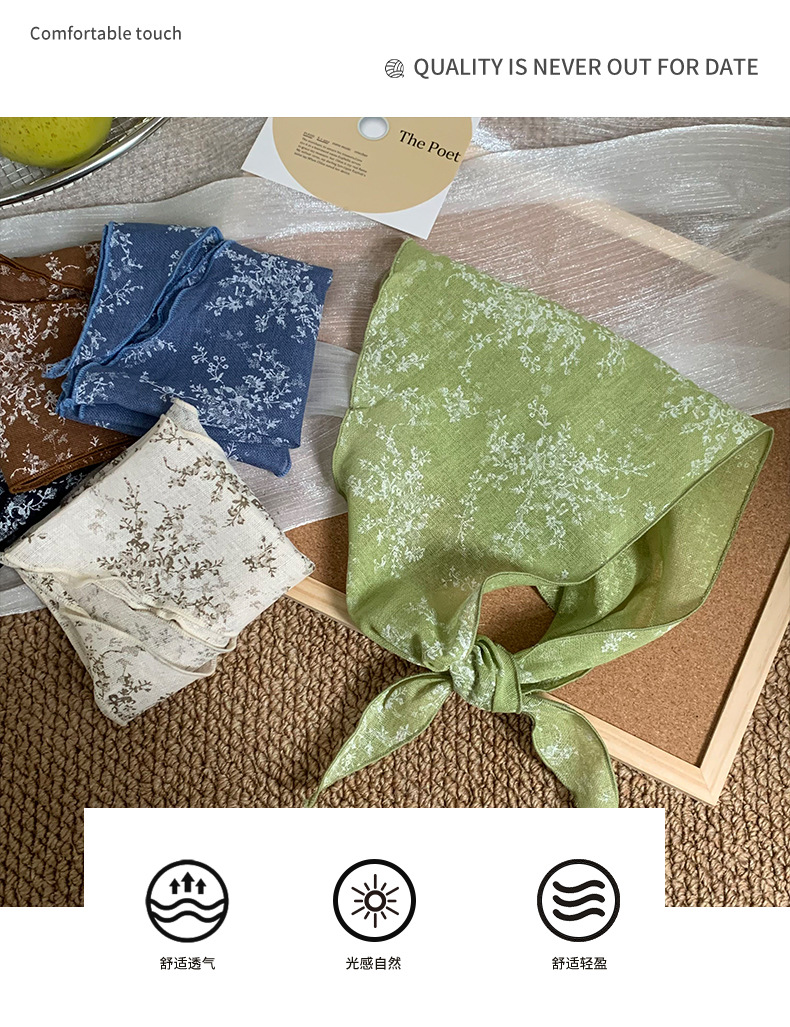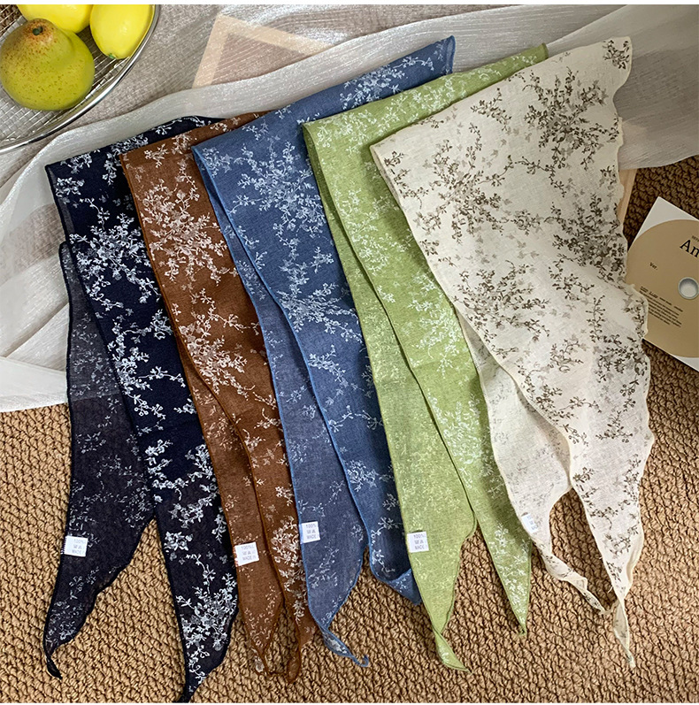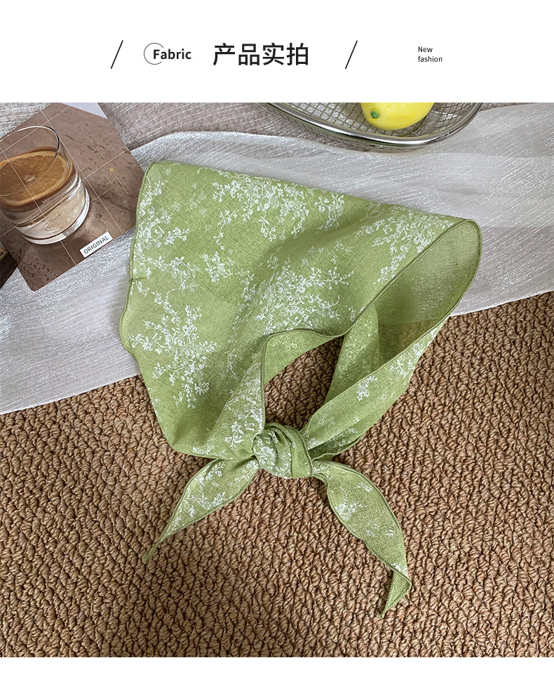 Bufanda triangular floral, pañuelo de seda, sentido de alta gama, moda de primavera y verano, bufanda pequeña de todo fósforo, pañuelo en la cabeza, cinturón para el cabello de estilo pastoral femenino de verano, accesorios para el cabello