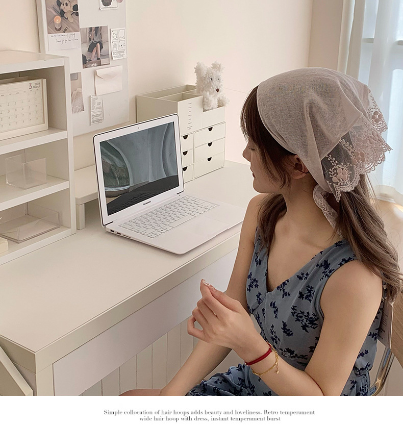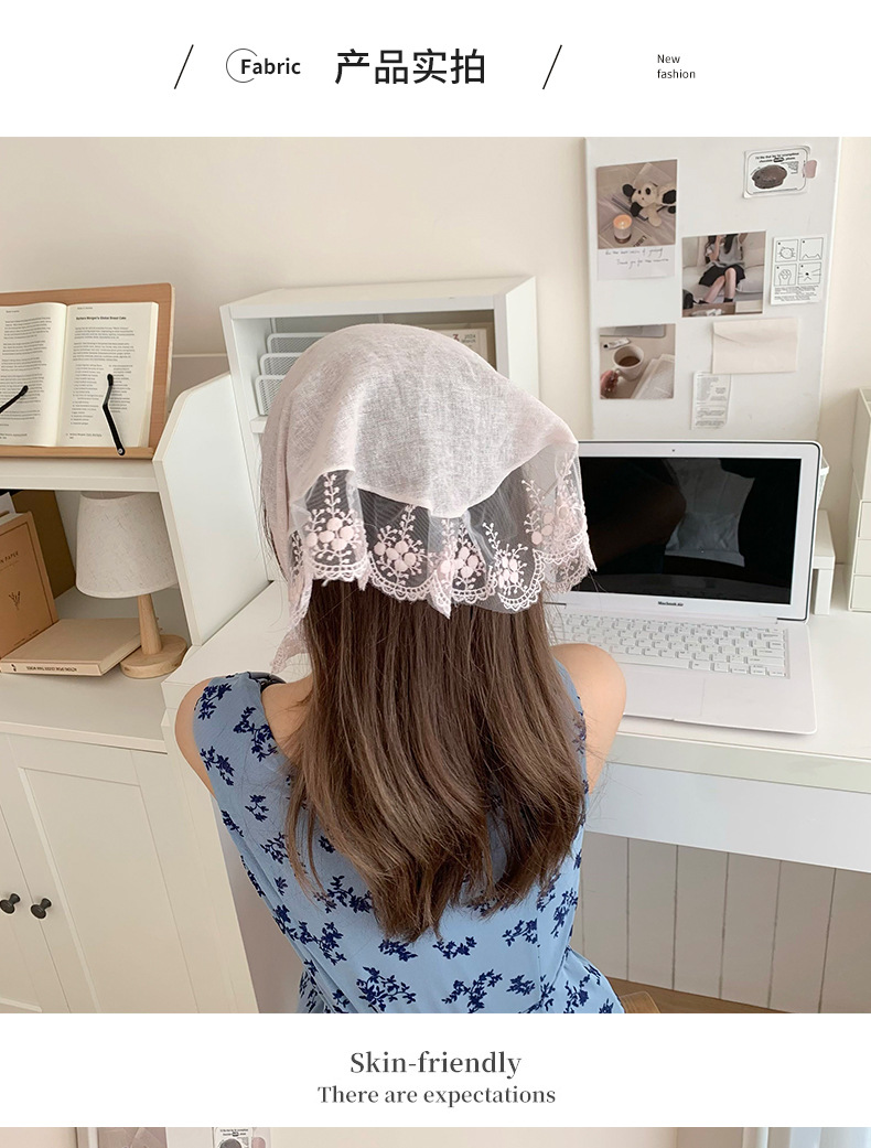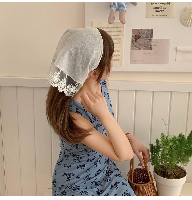 Bufanda de seda, diadema, mujer francesa, nuevo estilo, bufanda decorativa para el cuello, bufanda triangular de encaje, pañuelo en la cabeza, serpentina de estilo pastoral