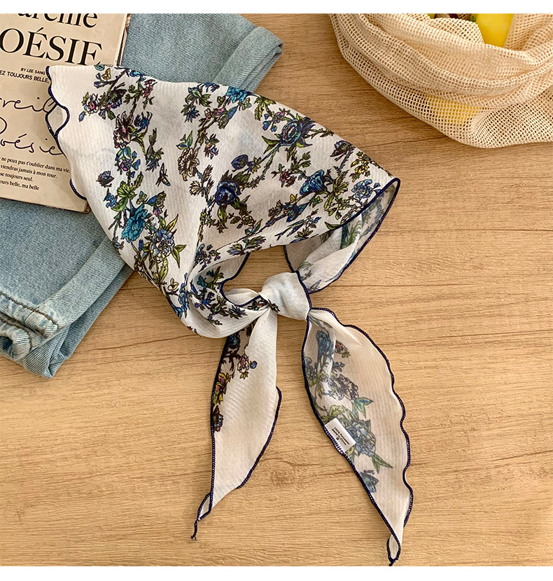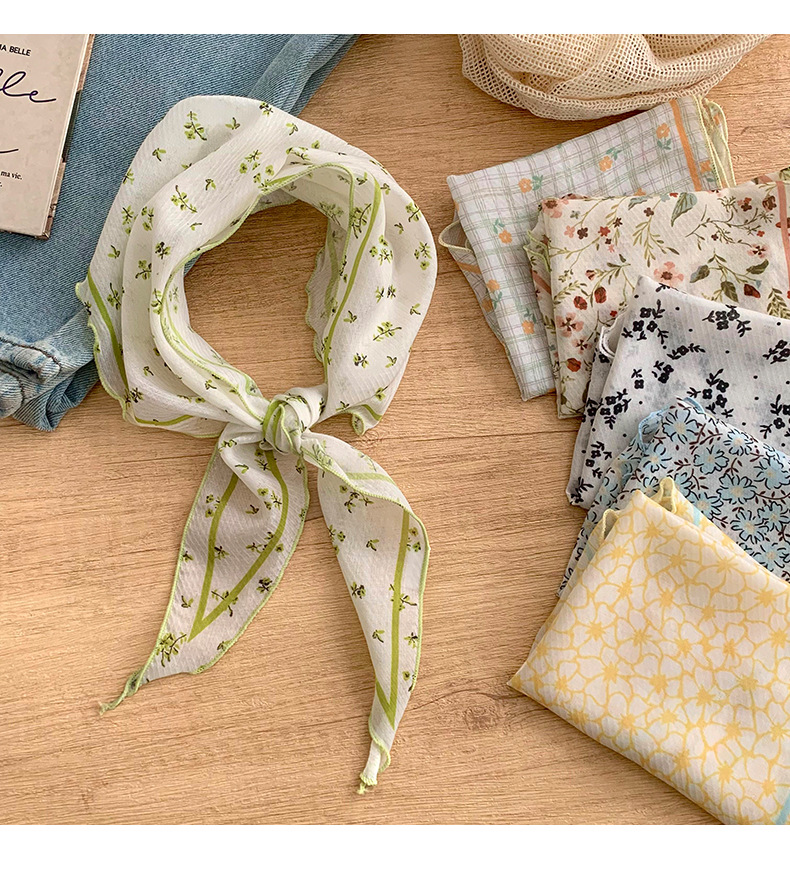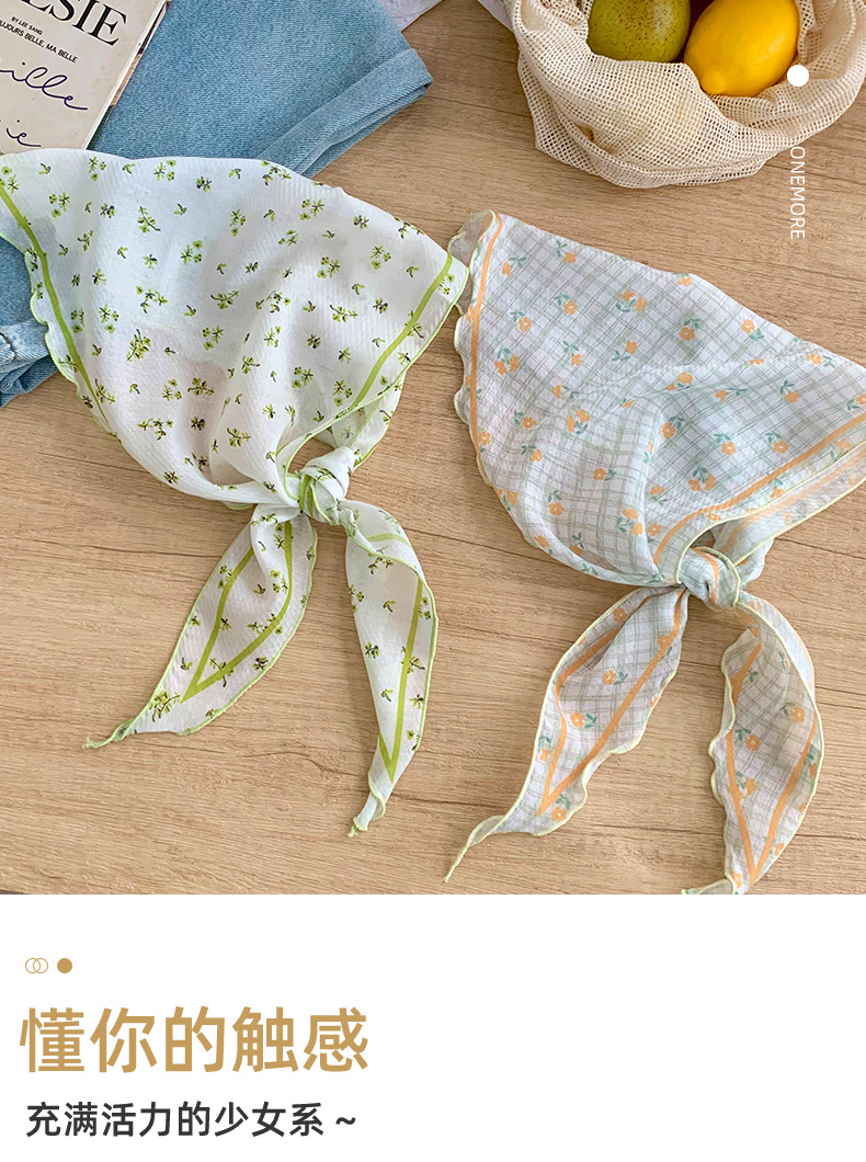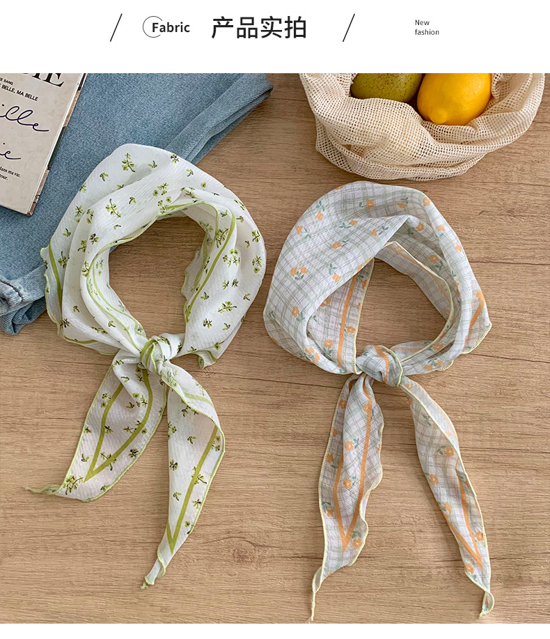 Bufanda de seda nuevo estilo protector para el cuello bufanda para el cuello pequeño y fresco pañuelo floral a cuadros cinturón para el cabello para atar el cabello bufanda triangular multiusos para atar la cintura