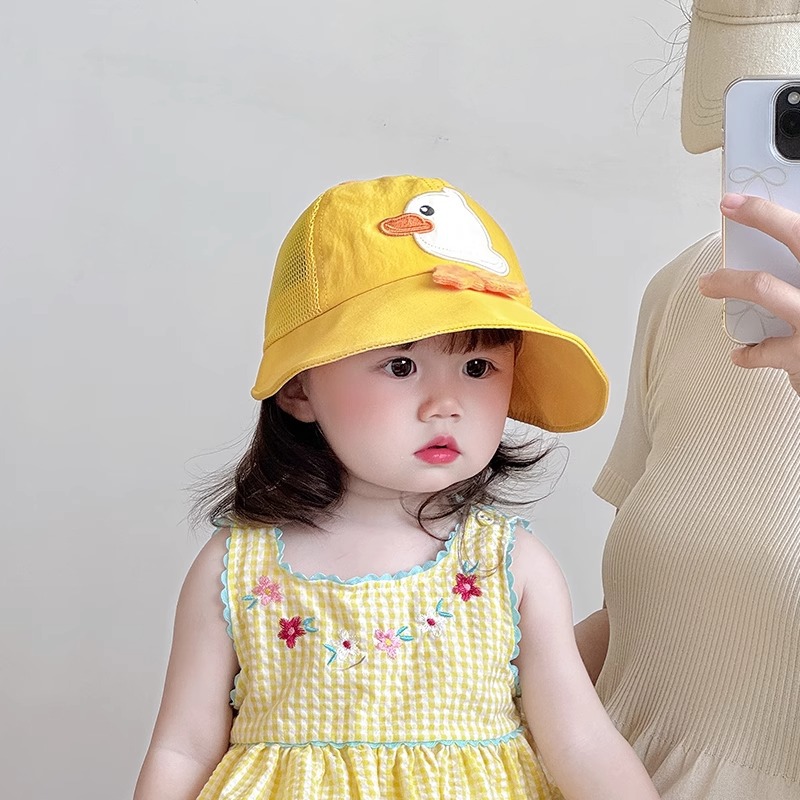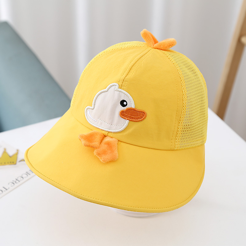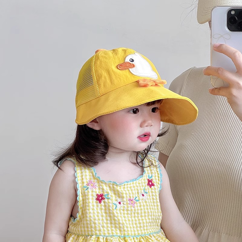 Bonito pato amarillo sombrero para niños de verano malla transpirable para niños y niñas bebés gorro de bisel grande sombrero de protección solar