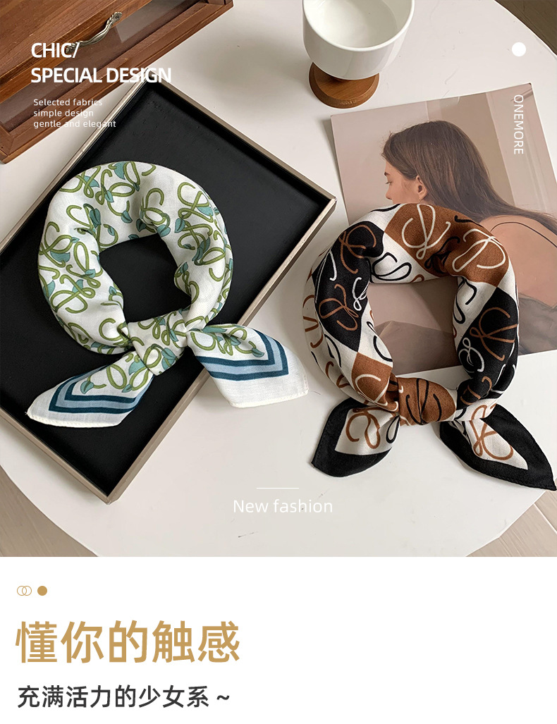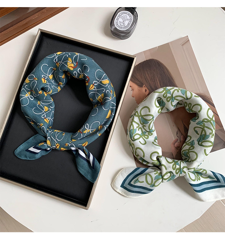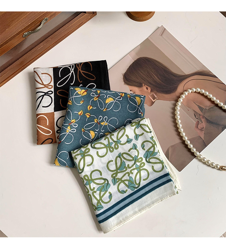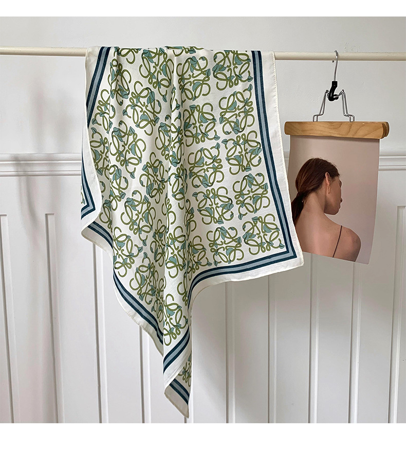 Bufandas de seda cuadrada alta sensación 2025 nuevo verde fresco estilo coreano moda decoración bufandas de seda de algodón y lino al por mayor