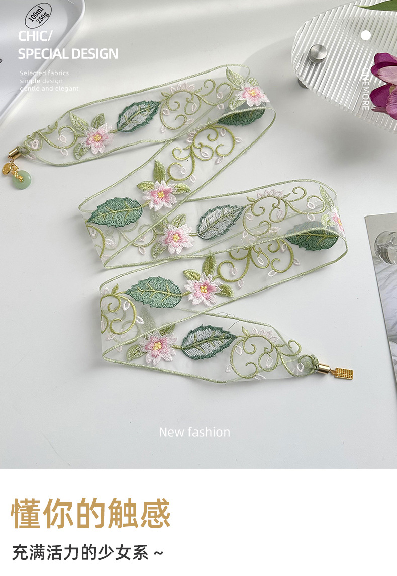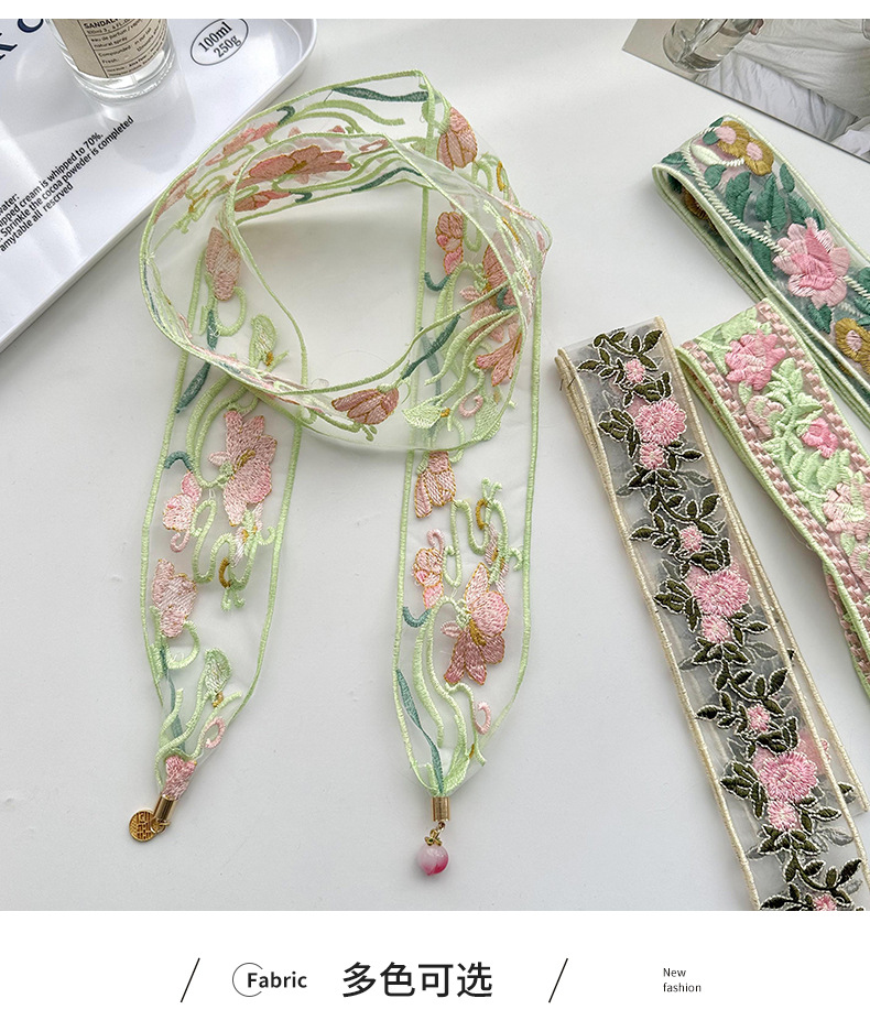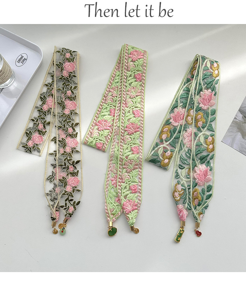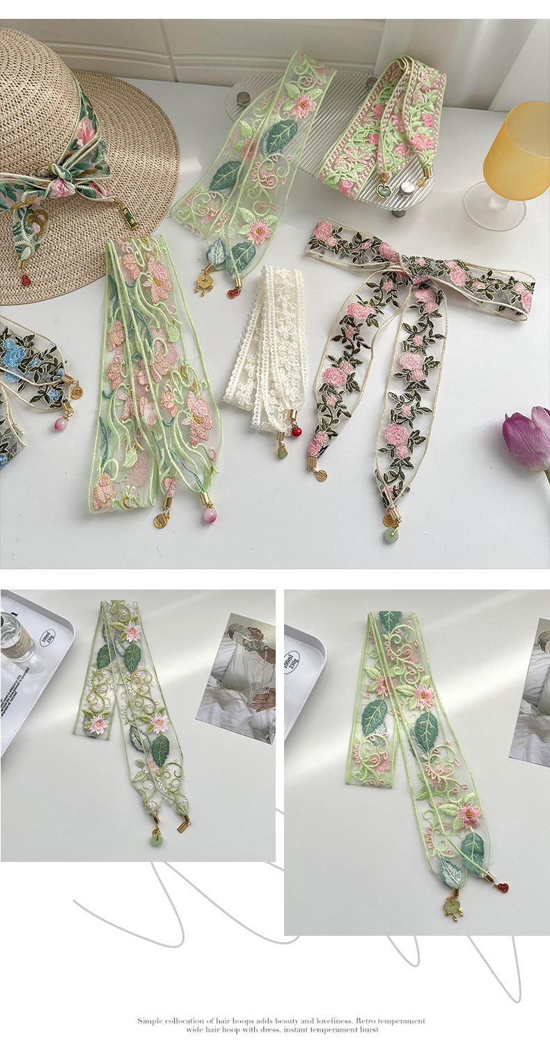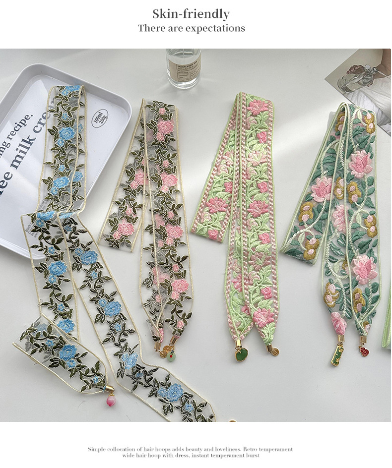 Bandas de cabello para mujeres bordadas chinas toallas de cabello de alto nivel sensación de tela floral de estilo chino colgante de borde ancho cinturón de lona multipropósito