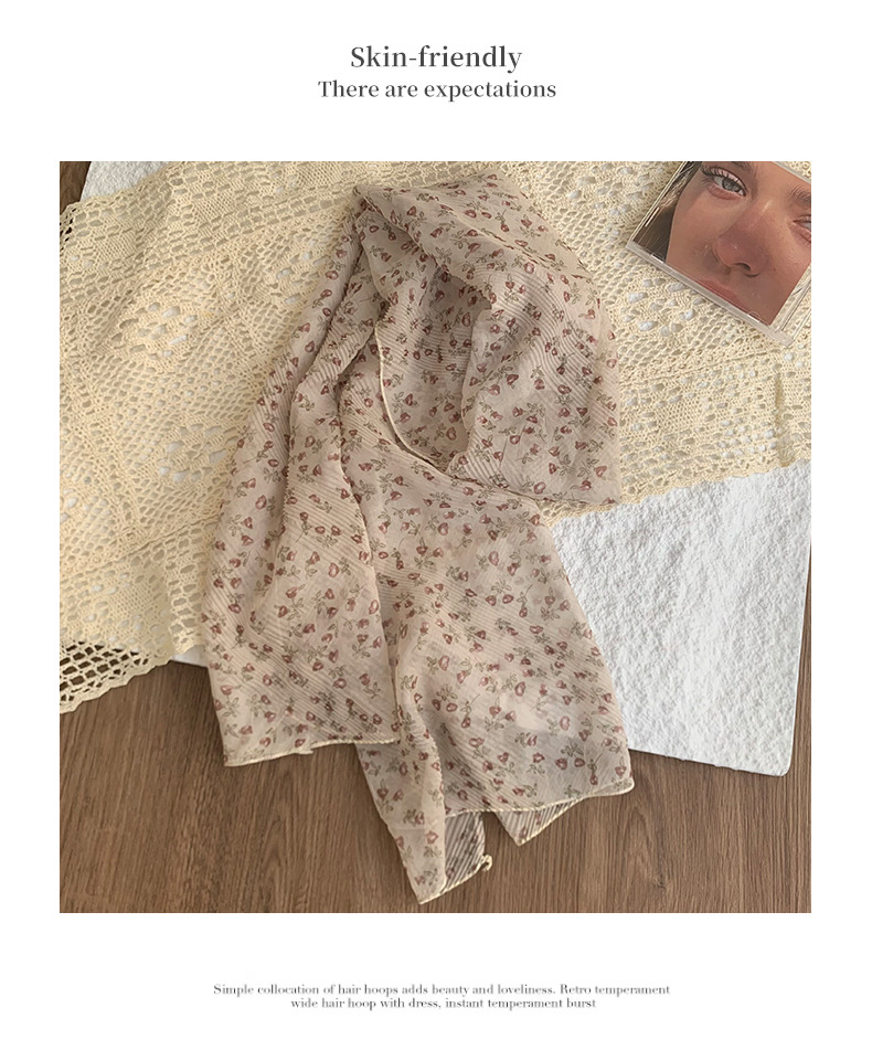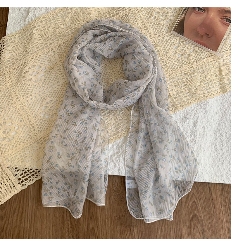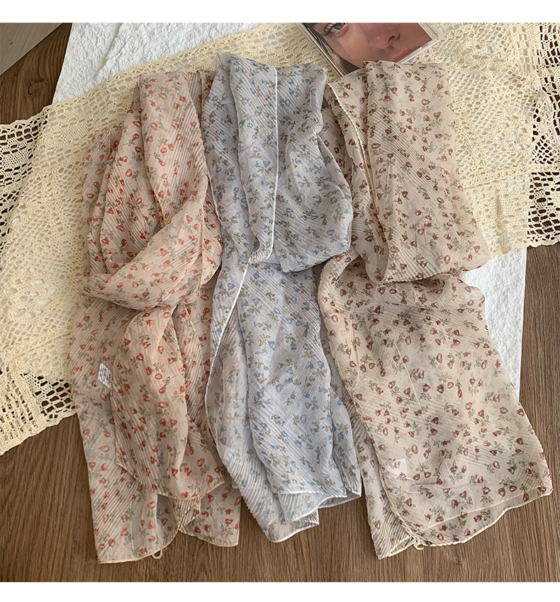 Bufanda delgada, nueva bufanda de seda de verano, pañuelo floral de alta calidad, bufanda de cuello, pequeño chal de protección solar fresco al por mayor