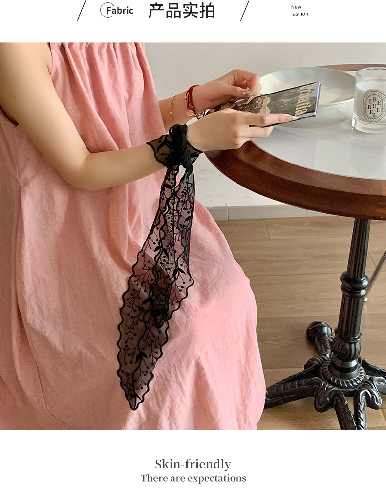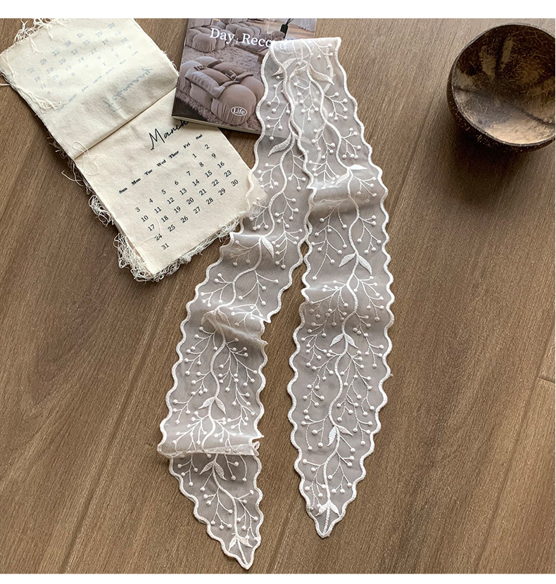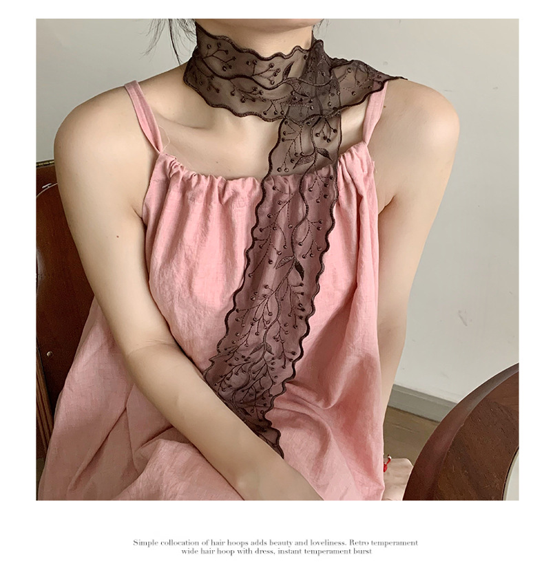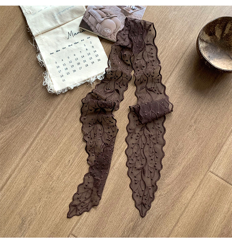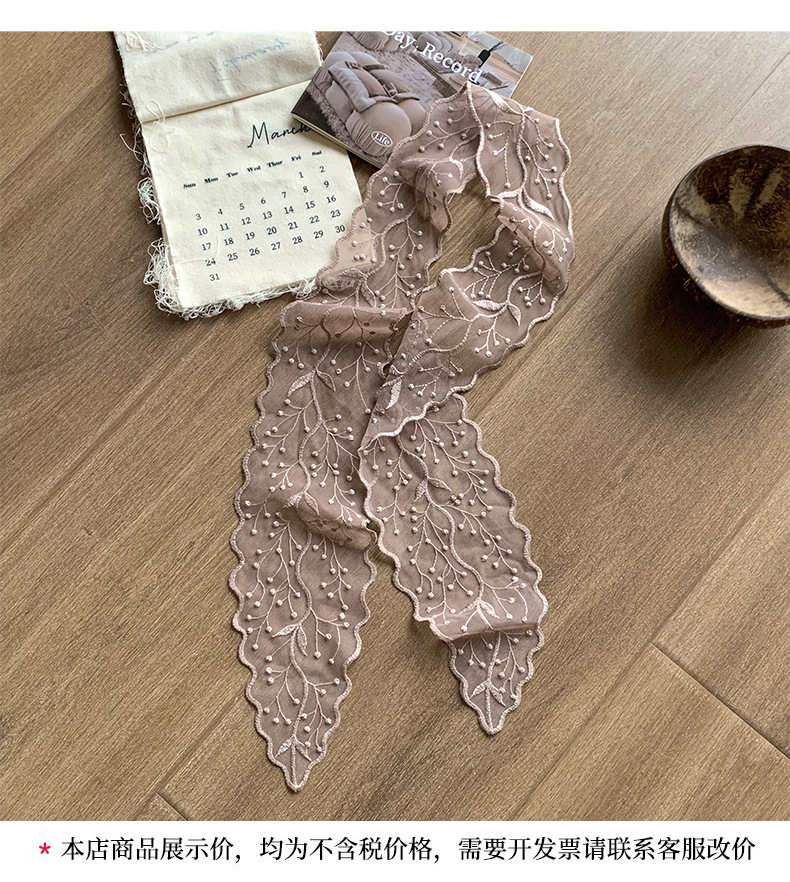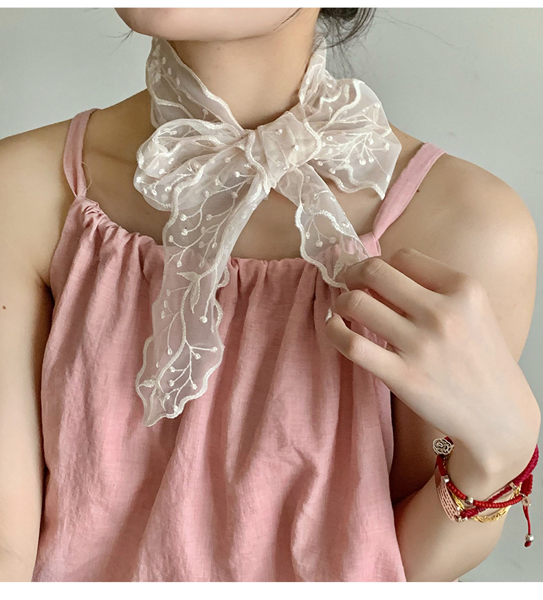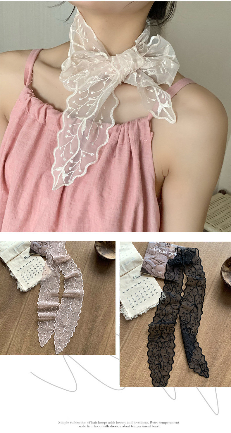 Bufandas de seda larga alta sensación japonesa y coreana dulce bufandas de encaje bordadas mujeres primavera y verano correa de pelo correa de pelo
