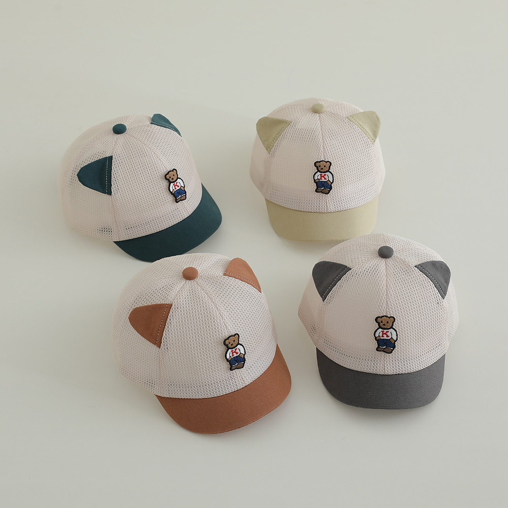 Sombrero para el sol para bebés, gorra de béisbol de malla, protector solar transpirable de verano, gorra de oreja de oso lindo, gorra de malla para niños
