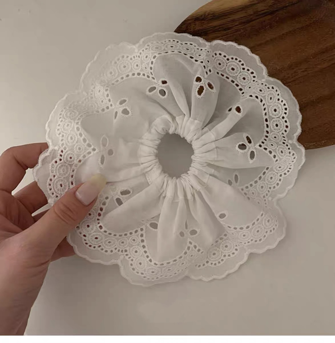 Atmosfera del sur de Francia 2025 primavera relajada delicada anillo de cabello de encaje tocado de cabello de cordón de cabello de alto elástico