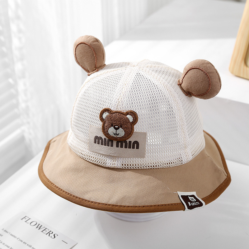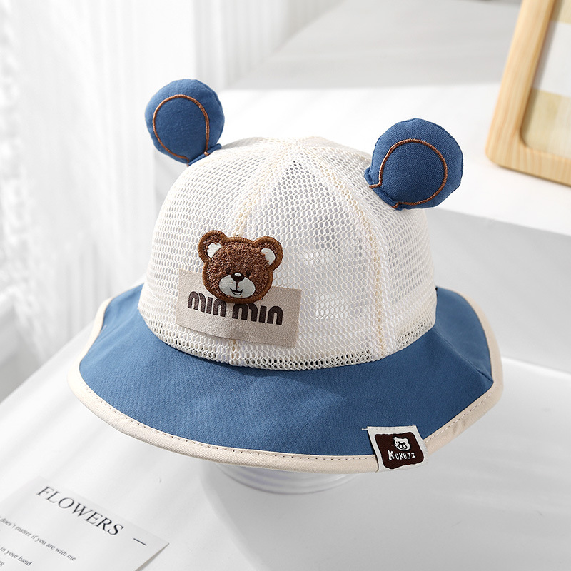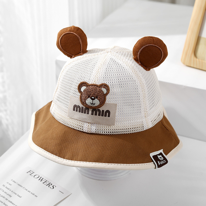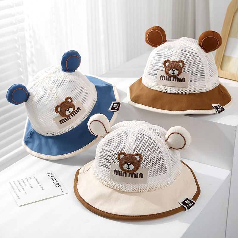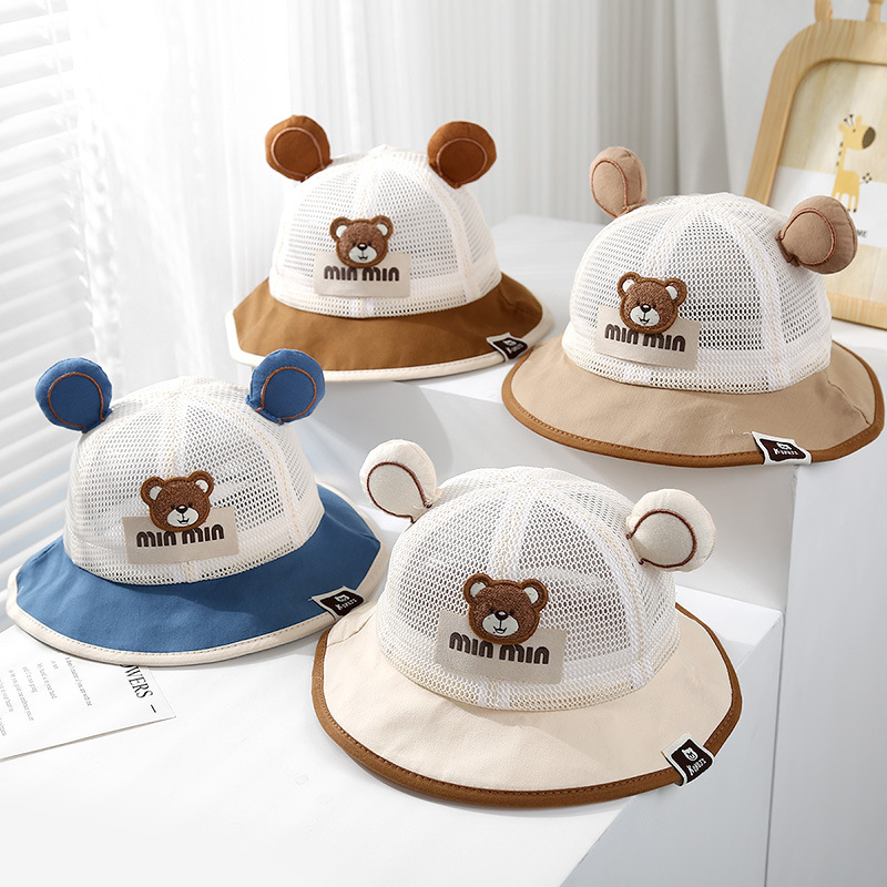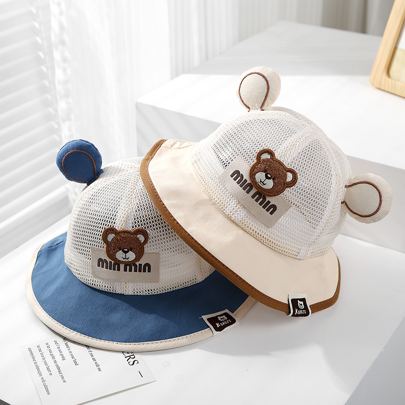Sombrero de pescador para bebé, sombrero de lavabo, lindo, súper lindo, dibujos animados, sombrero para el sol transpirable, niño y niña, malla de protección solar al aire libre de verano