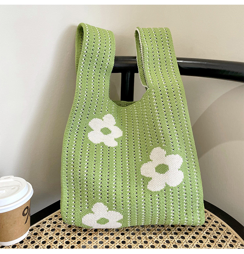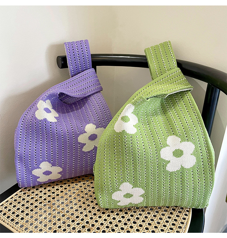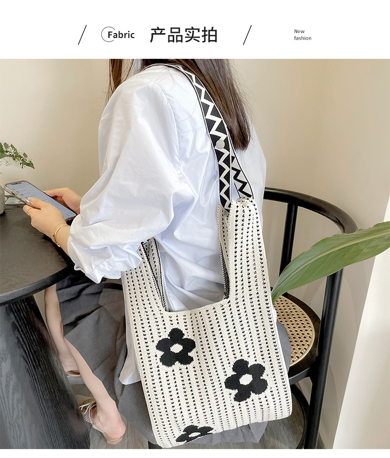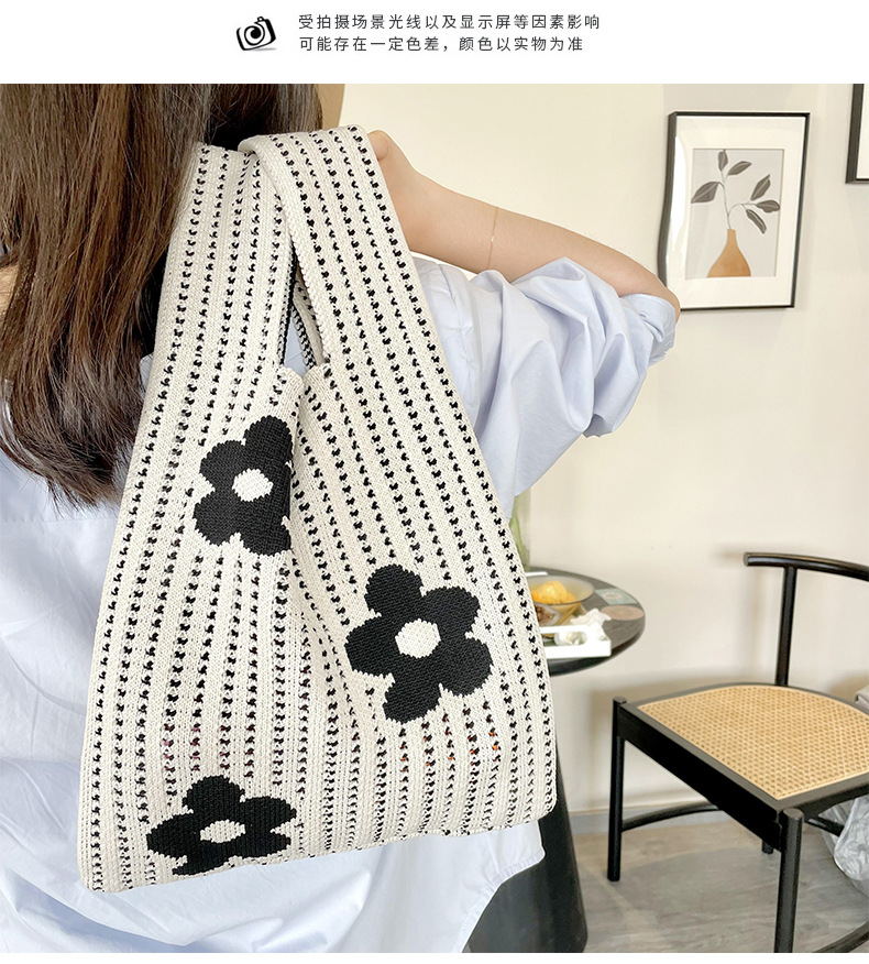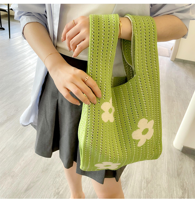 Estilo coreano nicho diseño moda hueco pequeña flor de punto bolso de mano estudiante de gran capacidad bolso de las axilas bolso de las mujeres