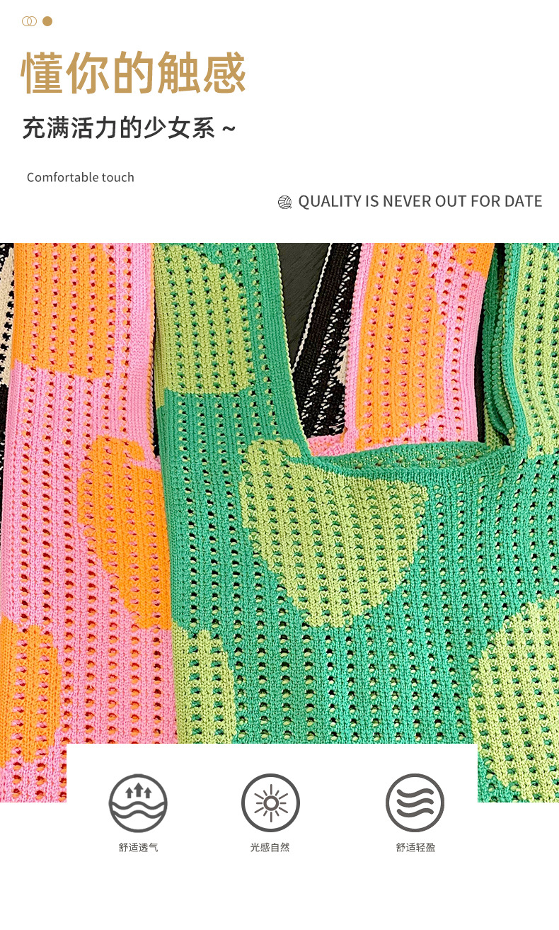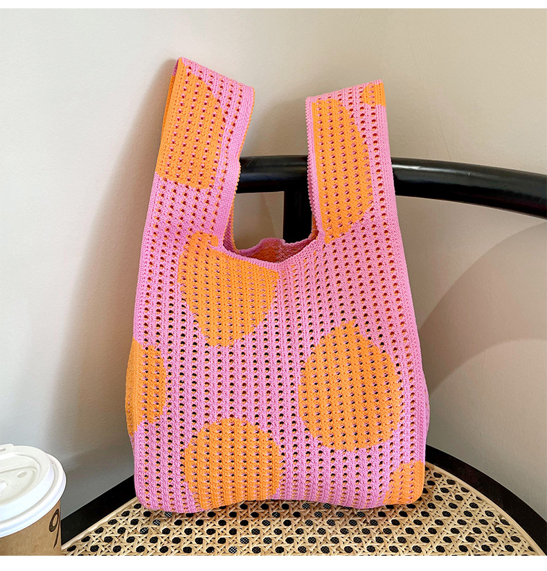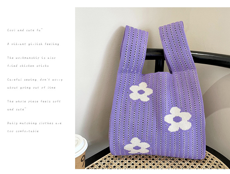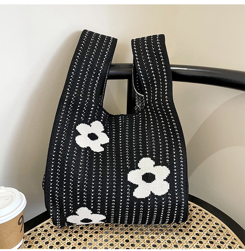 Estilo coreano nicho diseño moda hueco pequeña flor de punto bolso de mano estudiante de gran capacidad bolso de las axilas bolso de las mujeres