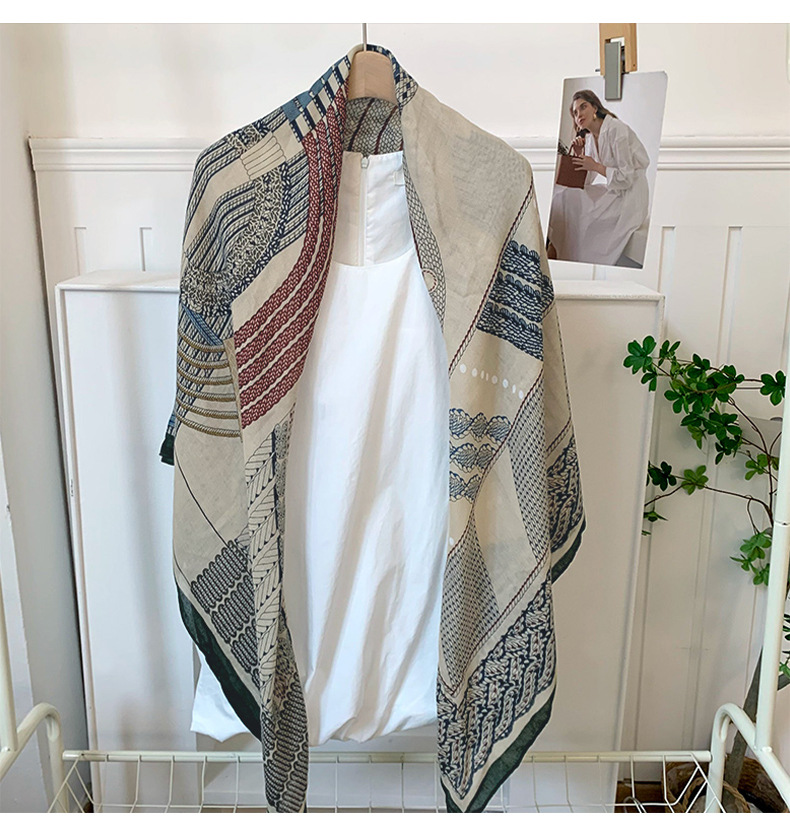 Bufanda cuadrada, sensación de alta calidad, nueva bufanda de lino, protector solar de verano para mujer, bufanda cuadrada grande, bufanda de seda delgada, aire acondicionado, chal exterior