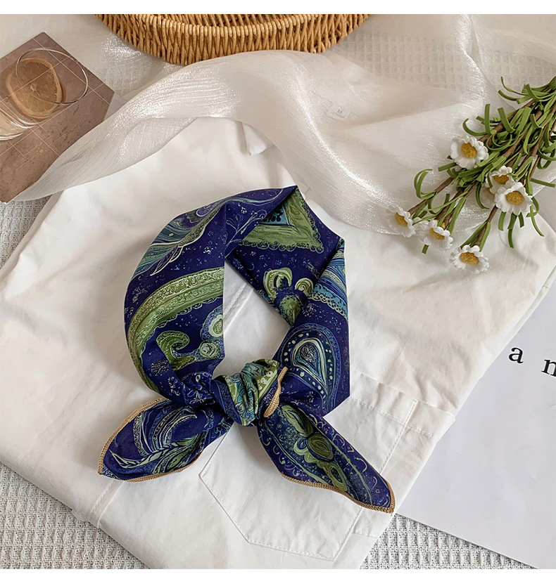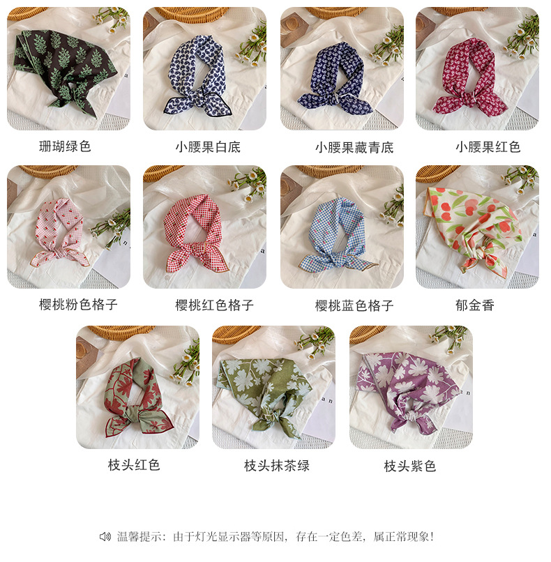 2025 versión coreana de la pequeña bufanda de seda femenina primavera y otoño temperamento salvaje 58CM algodón pequeño cuadrado bufanda pequeña decorativa bufanda pequeña bufanda pequeña