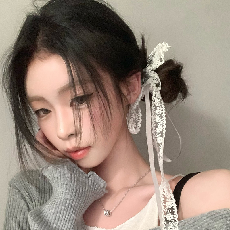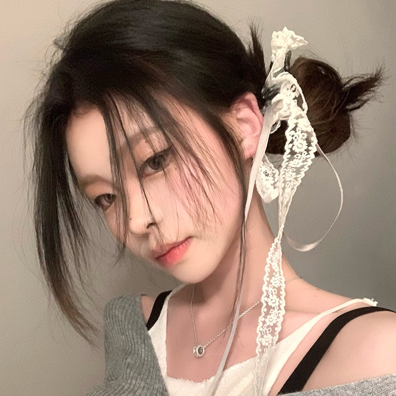 ins nicho dulce cool plateado encaje anillo de cabello larga correa de alto elástico cabeza detrás de la cabeza cabello de cabello
