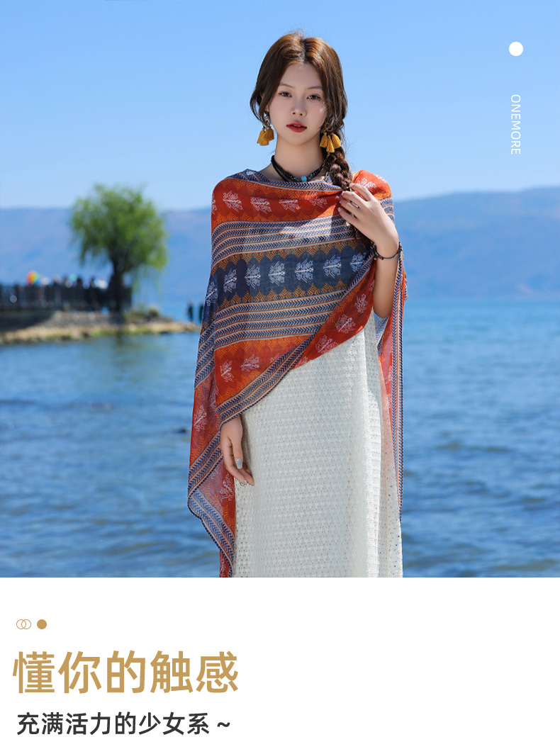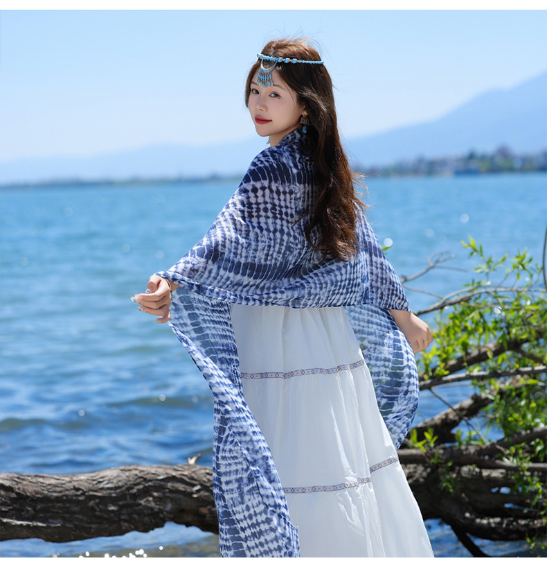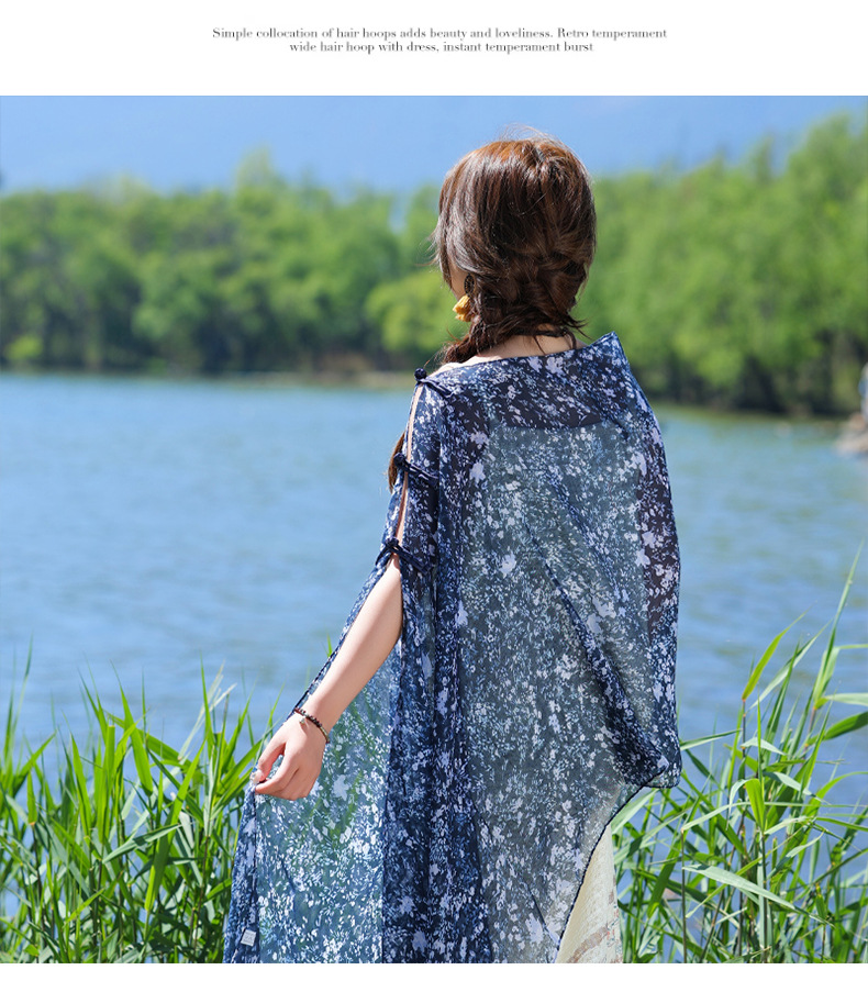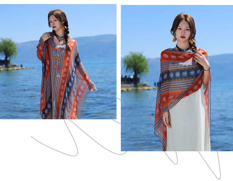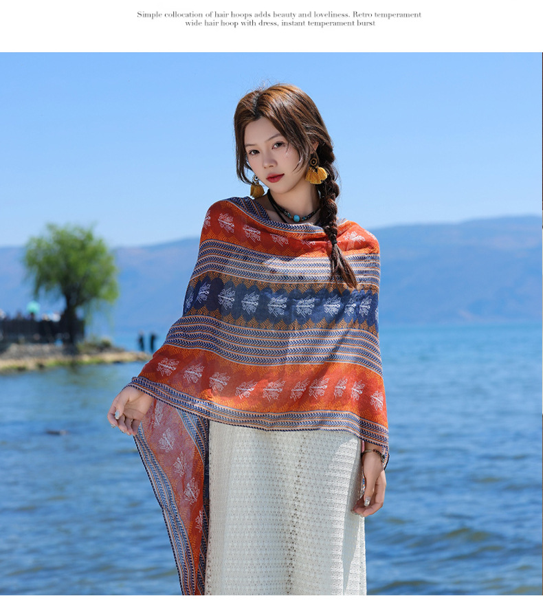 Chal Bufanda Verano de alta gama Nuevo estilo exótico Diadema Hebilla Estilo étnico Protector solar Chal con honda