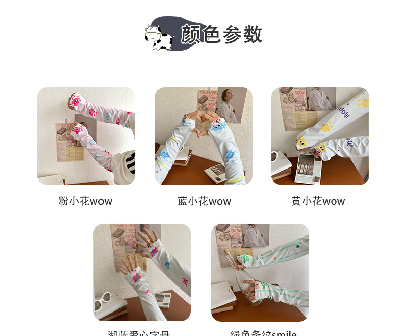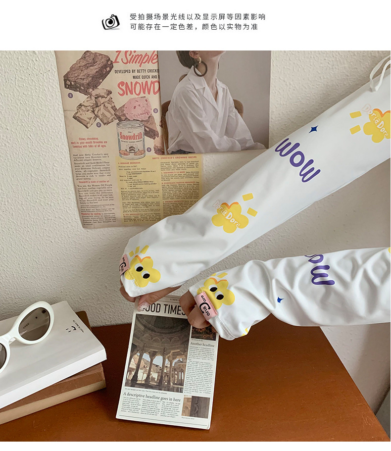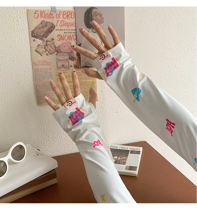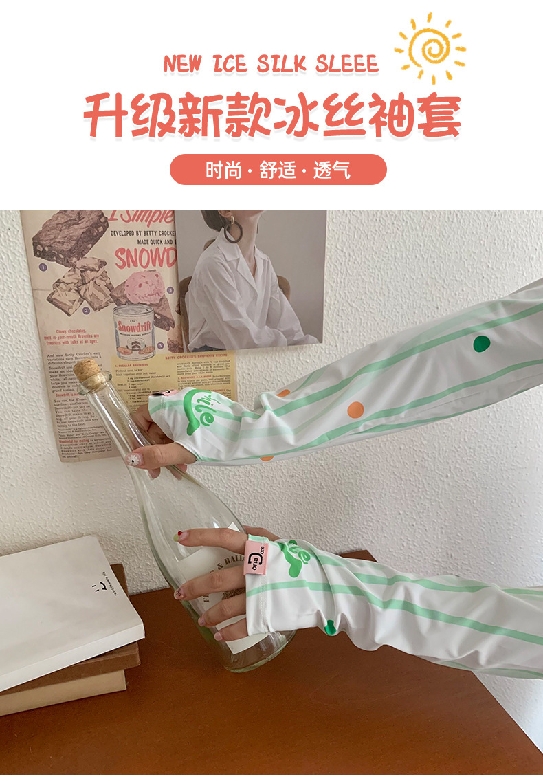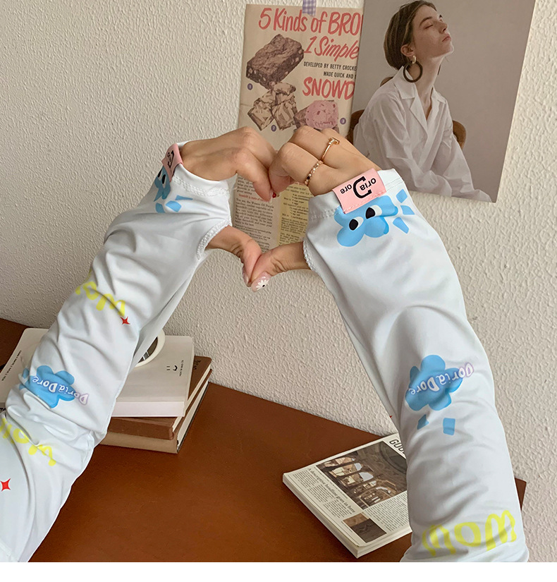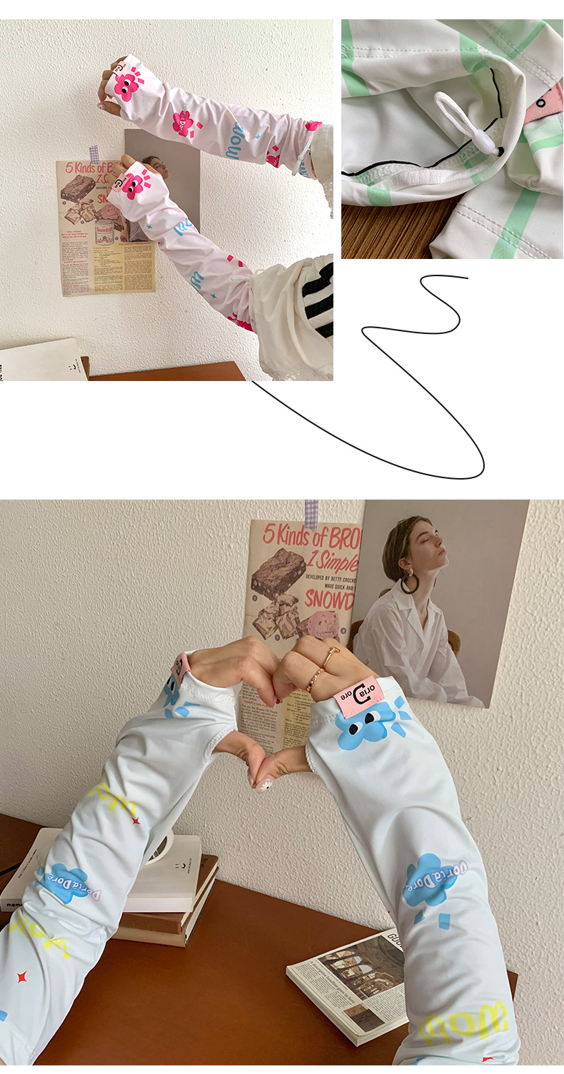 Manga de protección solar de seda de hielo para mujer verano nuevo estilo suelto anti-ultravioleta de dibujos animados lindo de alto valor manga de protección solar de manga de hielo