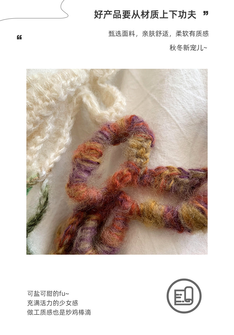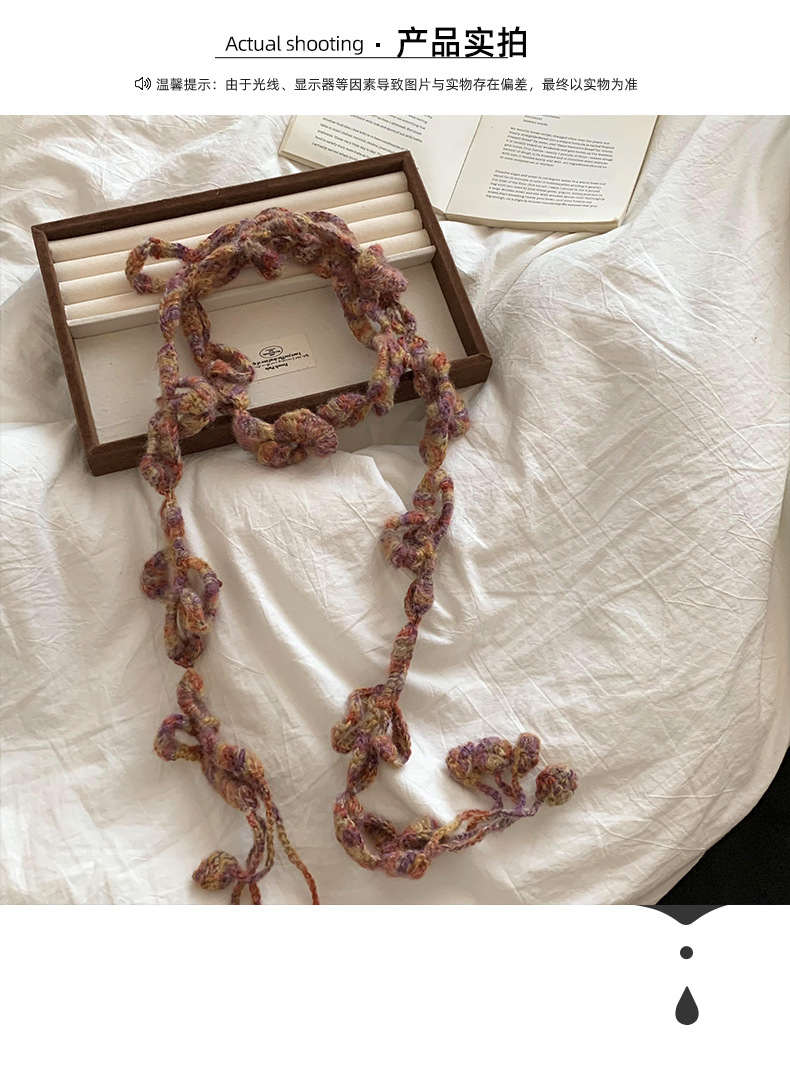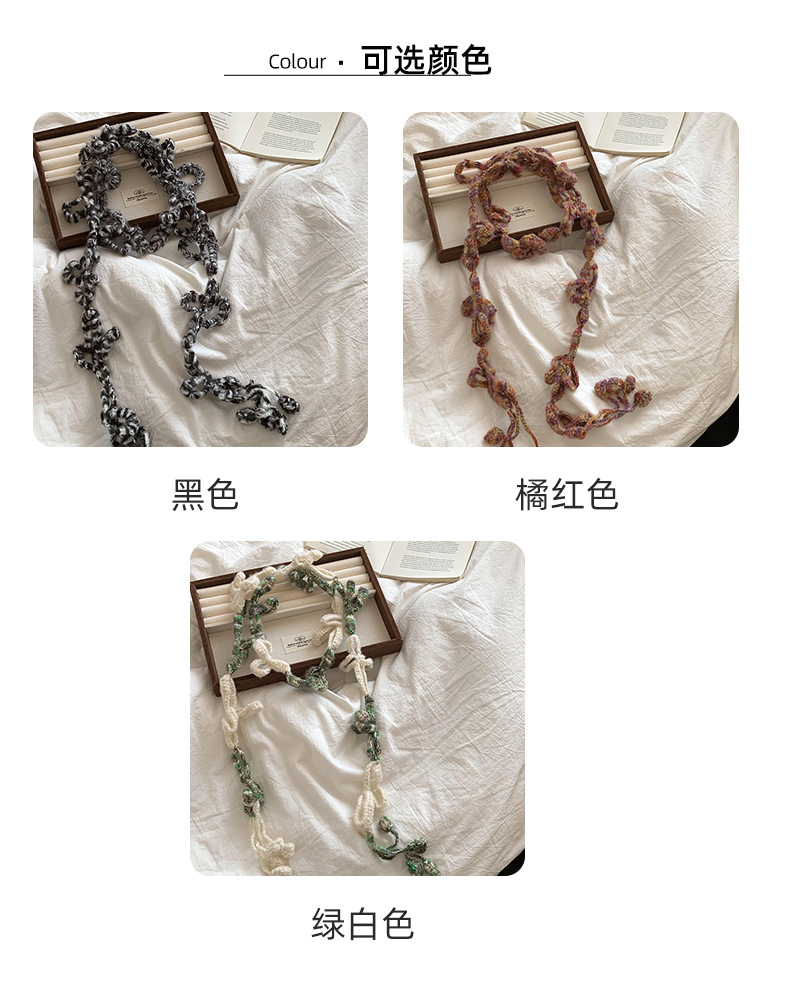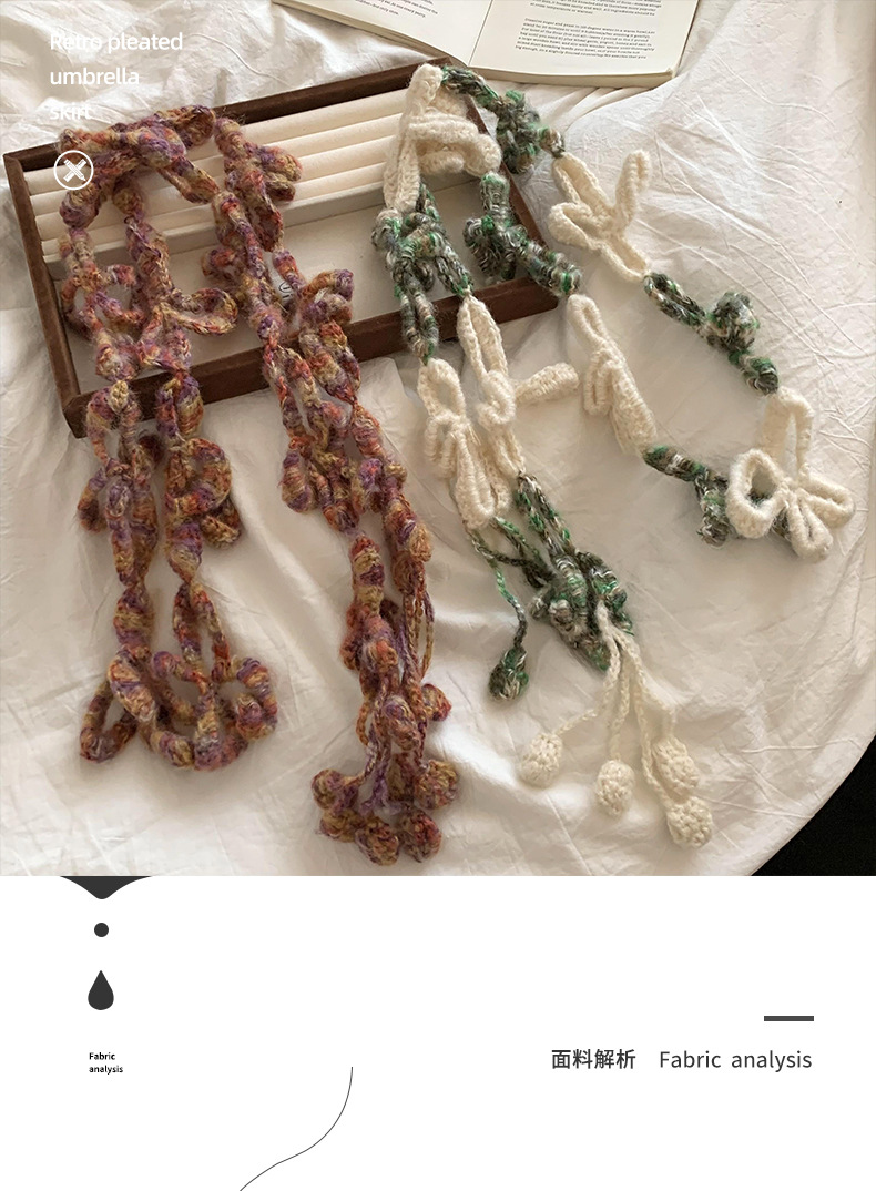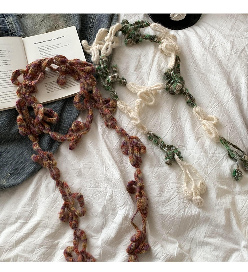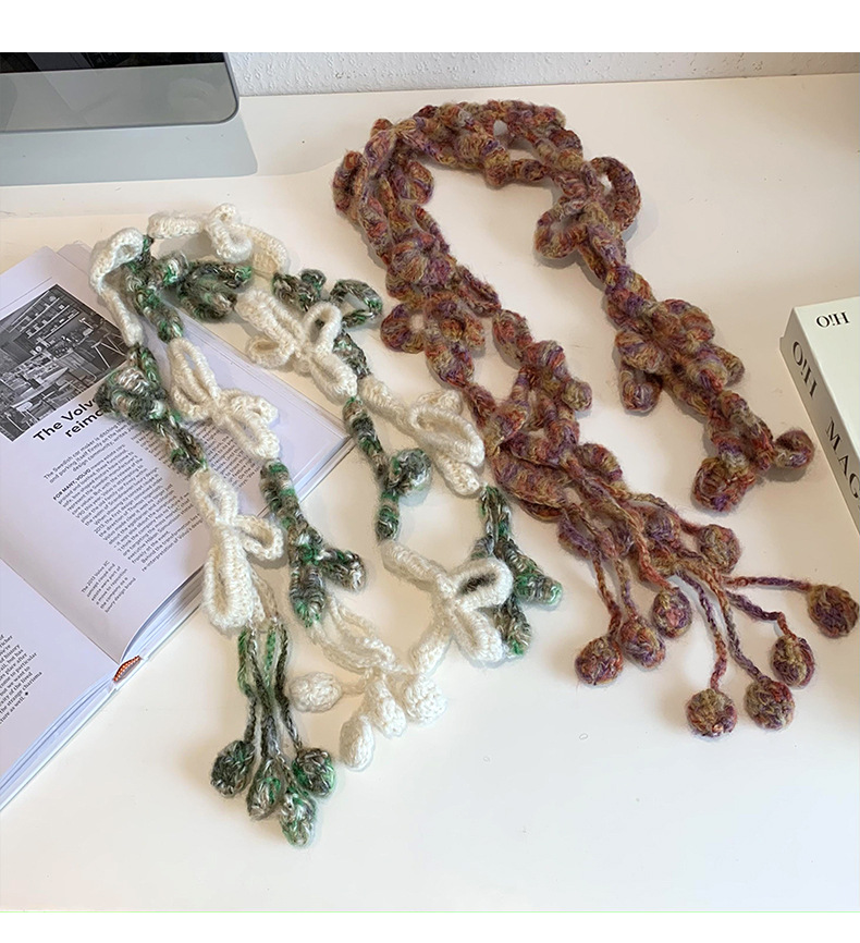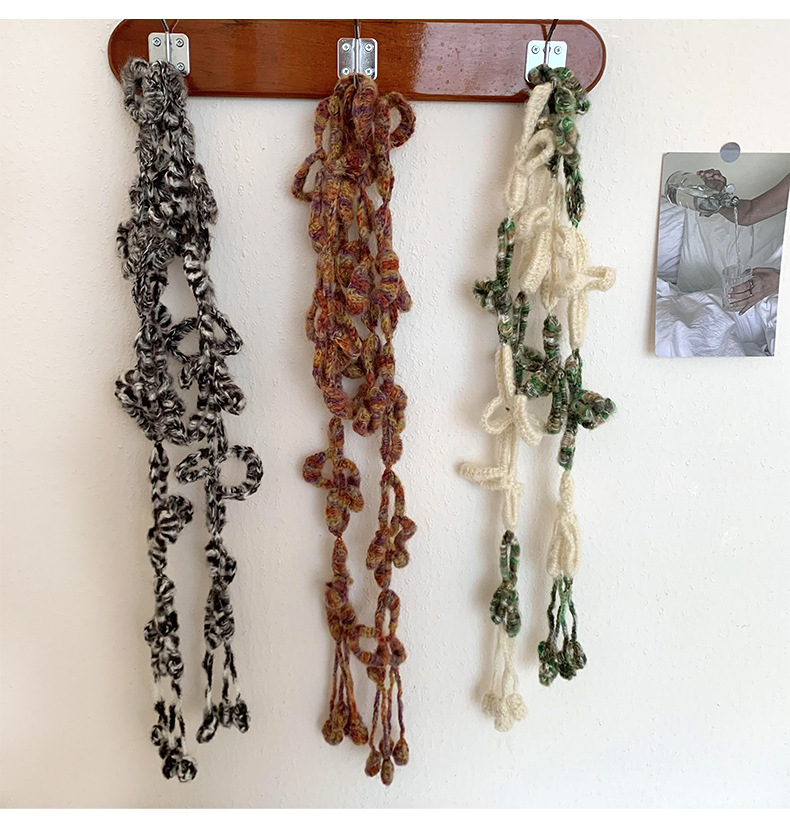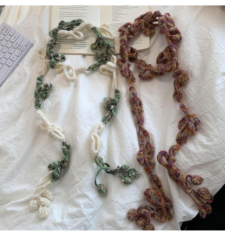 Bufandas de punto para mujeres 2025 nuevo color contrastante multifuncional lana tejida a mano ganchillo flor trenza collar original
