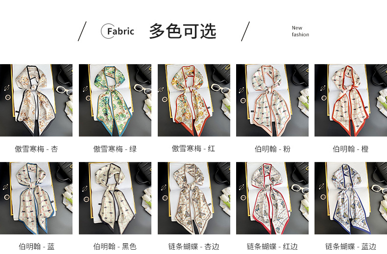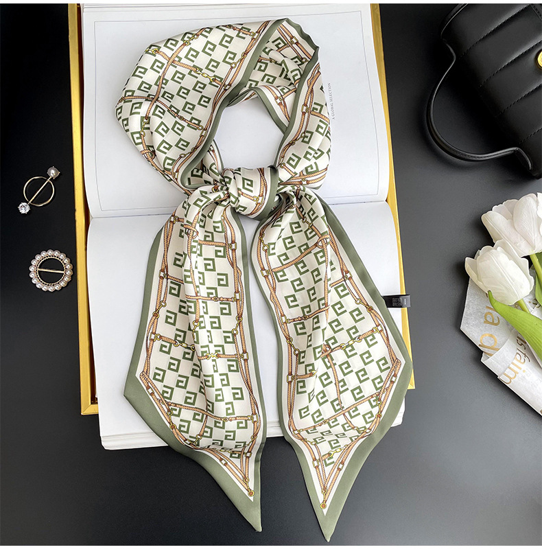 Bufanda larga pequeña para mujer primavera y verano nuevo impreso moda todo partido corbata de pelo bolsa bufanda decorativa cinta banda de pelo