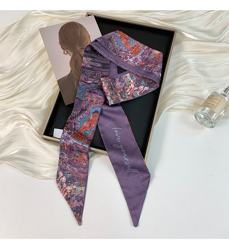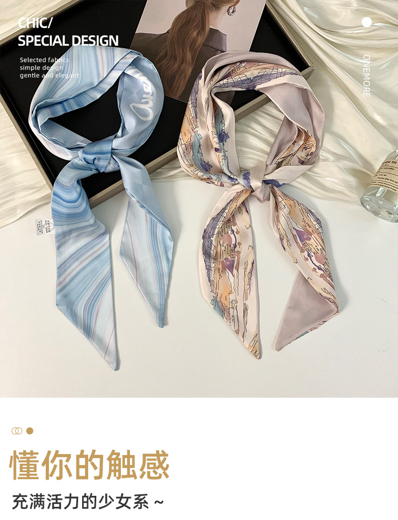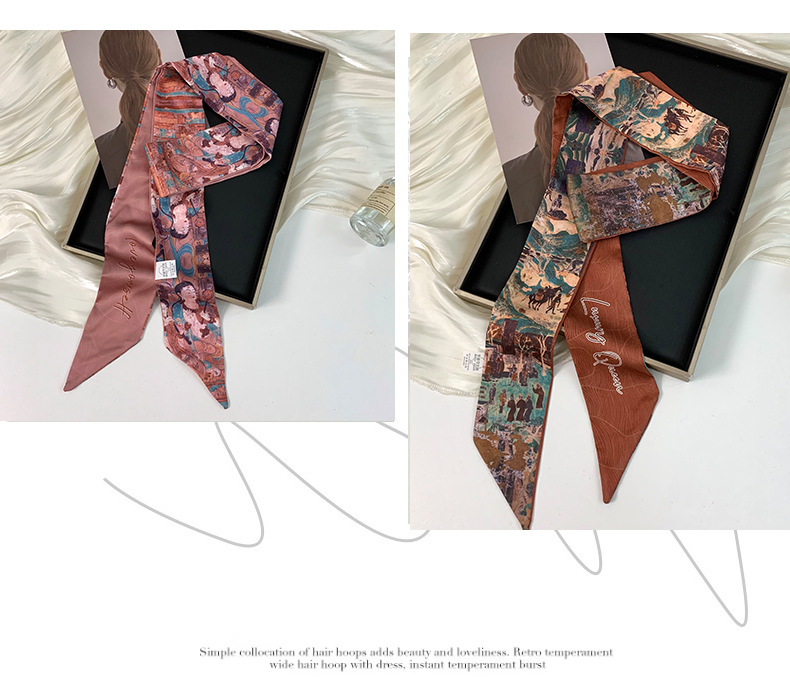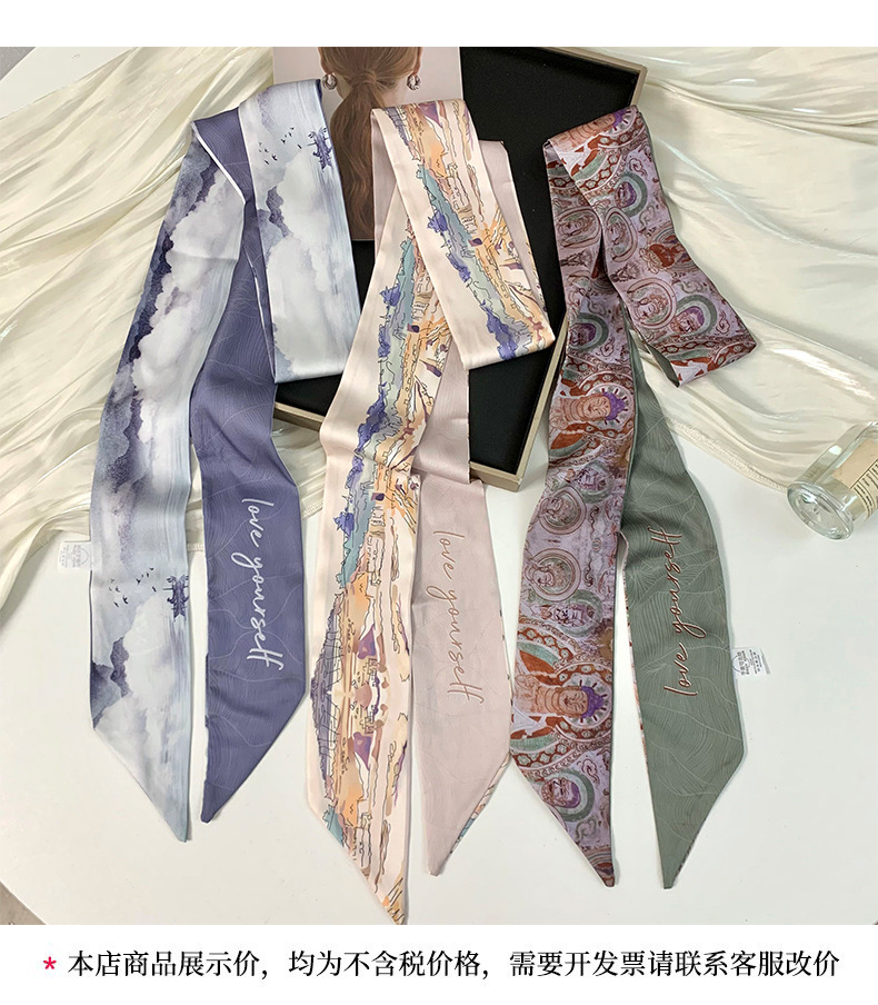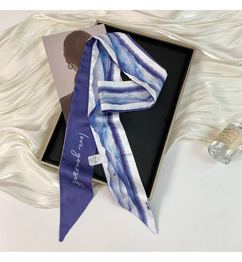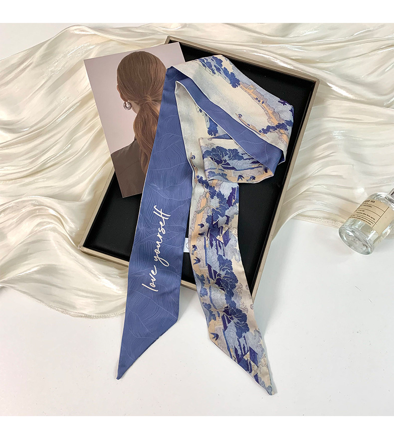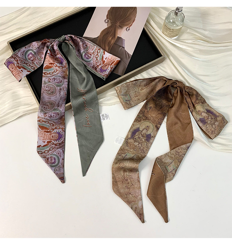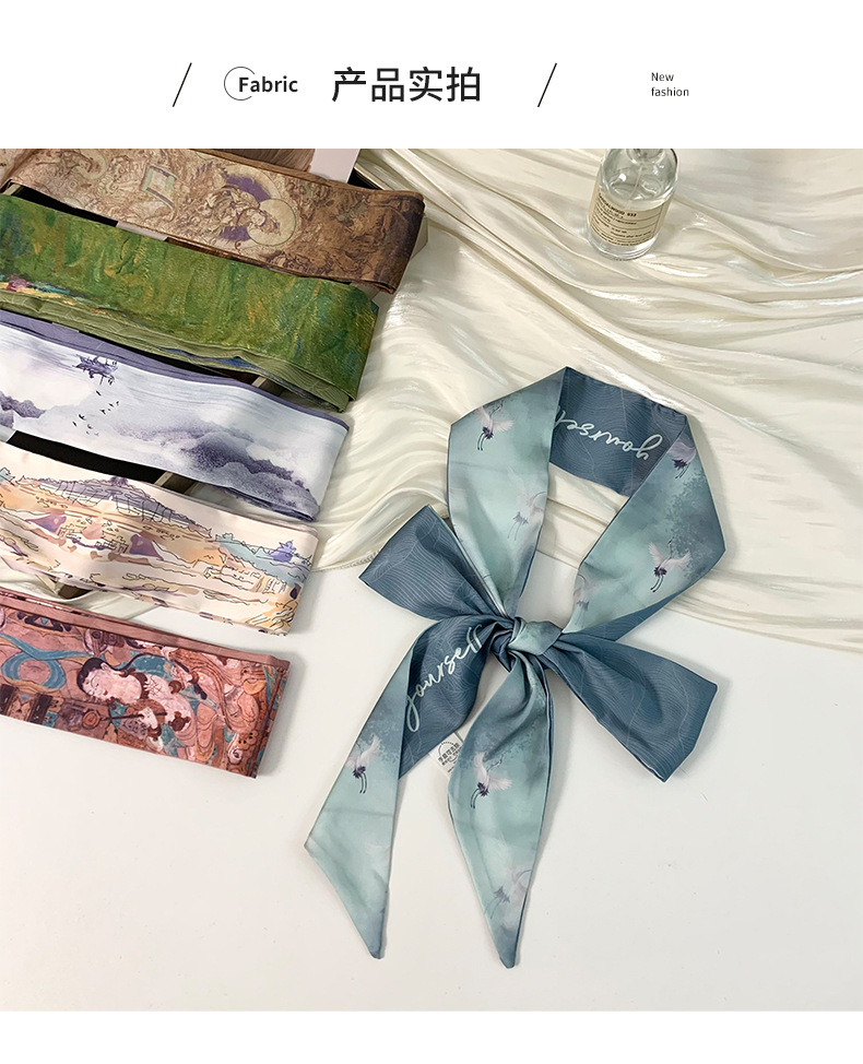 Pañuelo de seda largo y pequeño, cinturón para el cabello de estilo nacional con camisa, bolso atado, pañuelo en la cabeza de todo fósforo, cinturón de bufanda de decoración pastoral femenina de verano