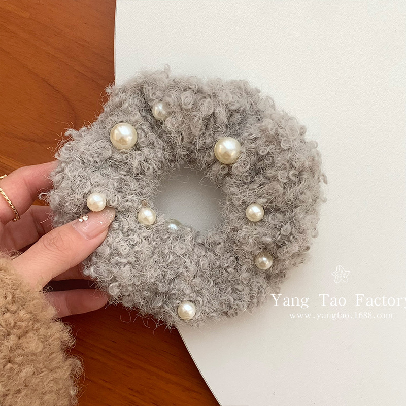 Perla de peluche collar de cabello de intestino para mujeres otoño y invierno 2024 nuevo estilo de alta sensación de cuerda de cabello de correa cuerda de cabello accesorios