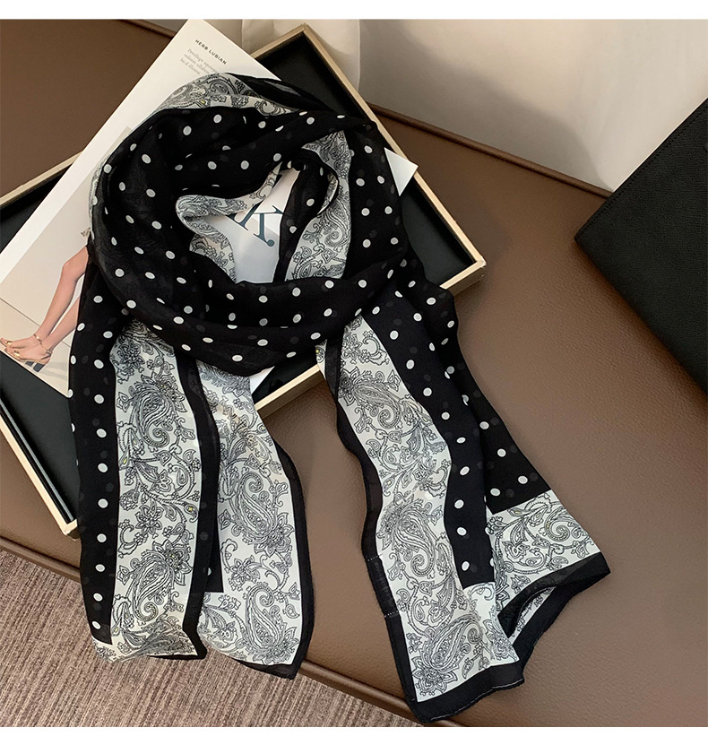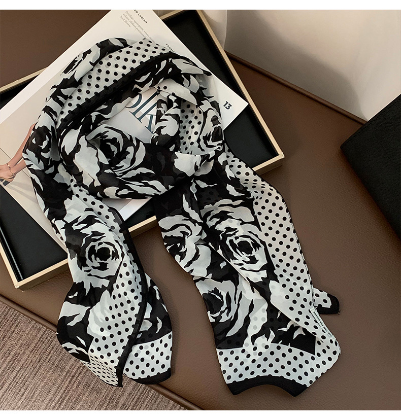 Bufanda de seda, sentido avanzado, todo fósforo, nuevo estilo multiusos, lunares, rosa, cuello, bufanda, bufanda, pañuelo, cinturón para el cabello, cinturón decorativo