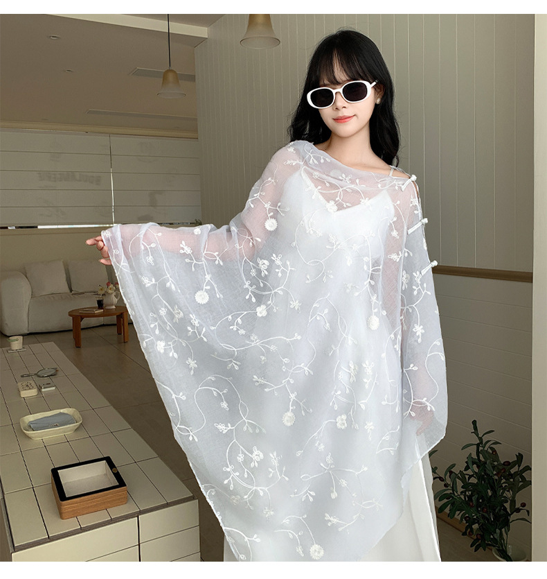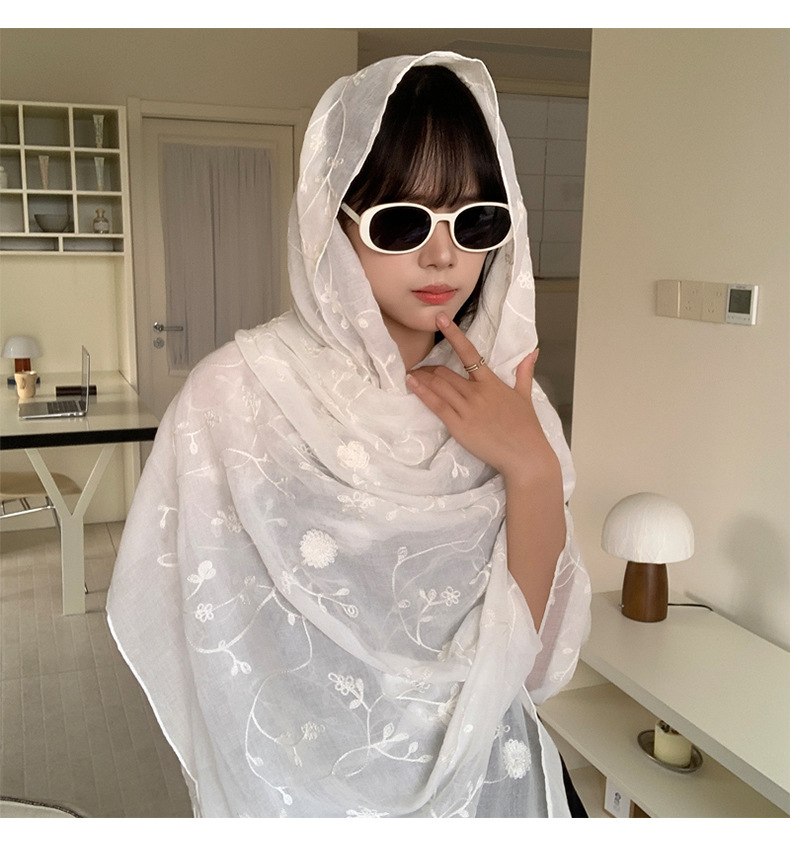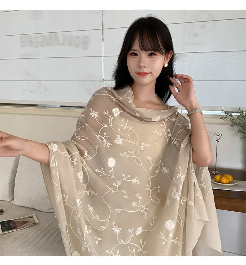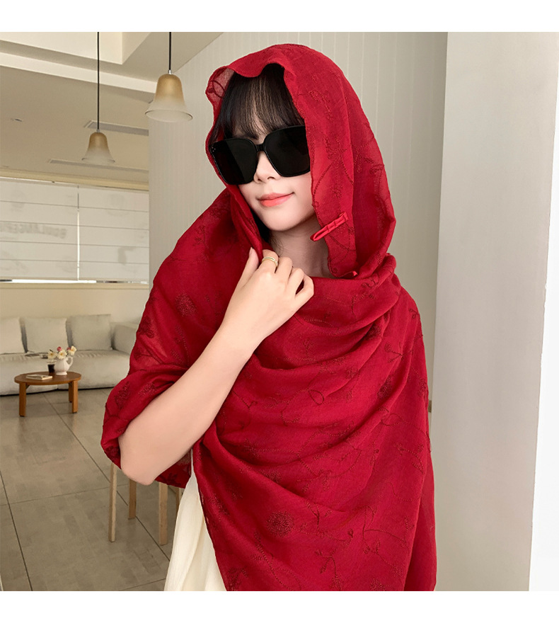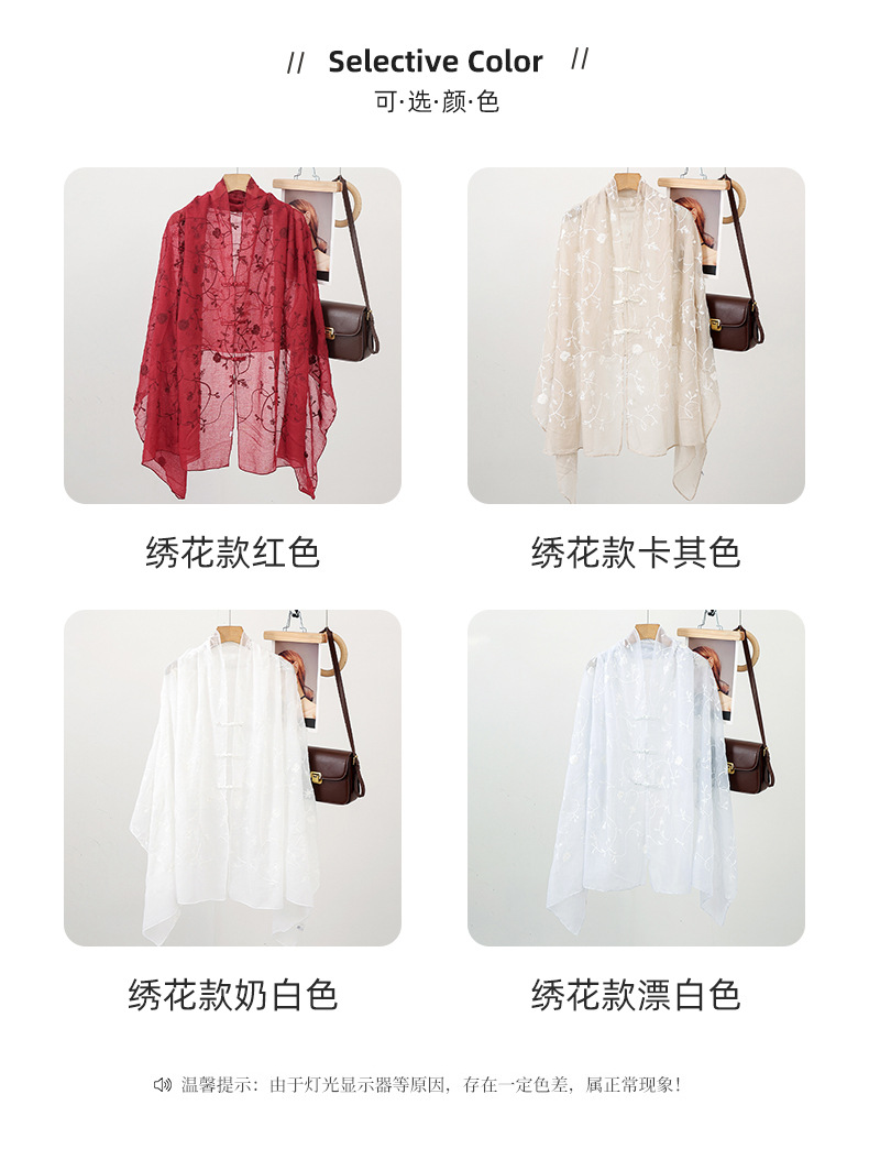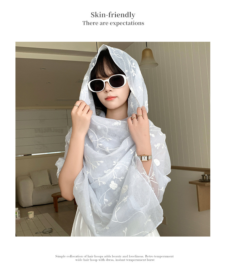 Bufanda de seda bordada, ambiente coreano, color sólido, todo fósforo, pañuelo en la cabeza, bufanda de cuello multiusos, hebilla de placa de protección solar, chal exterior
