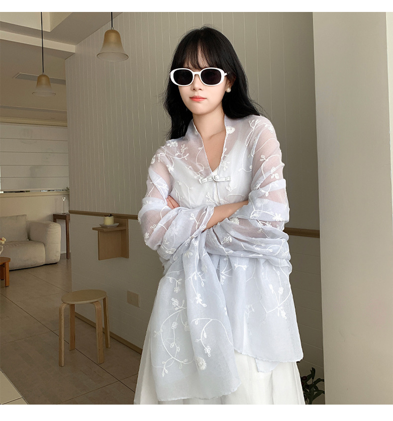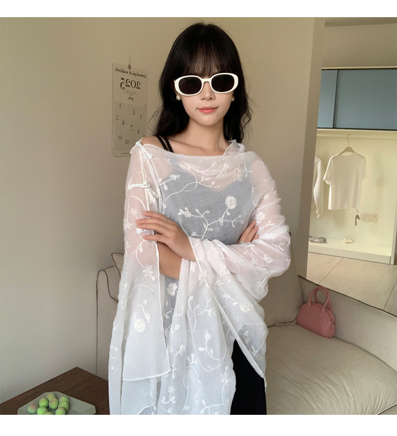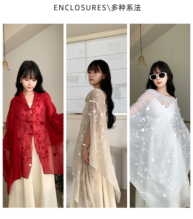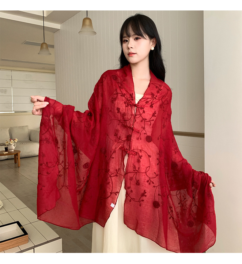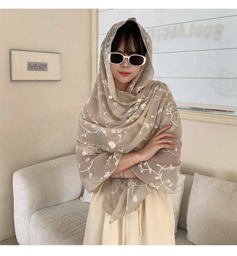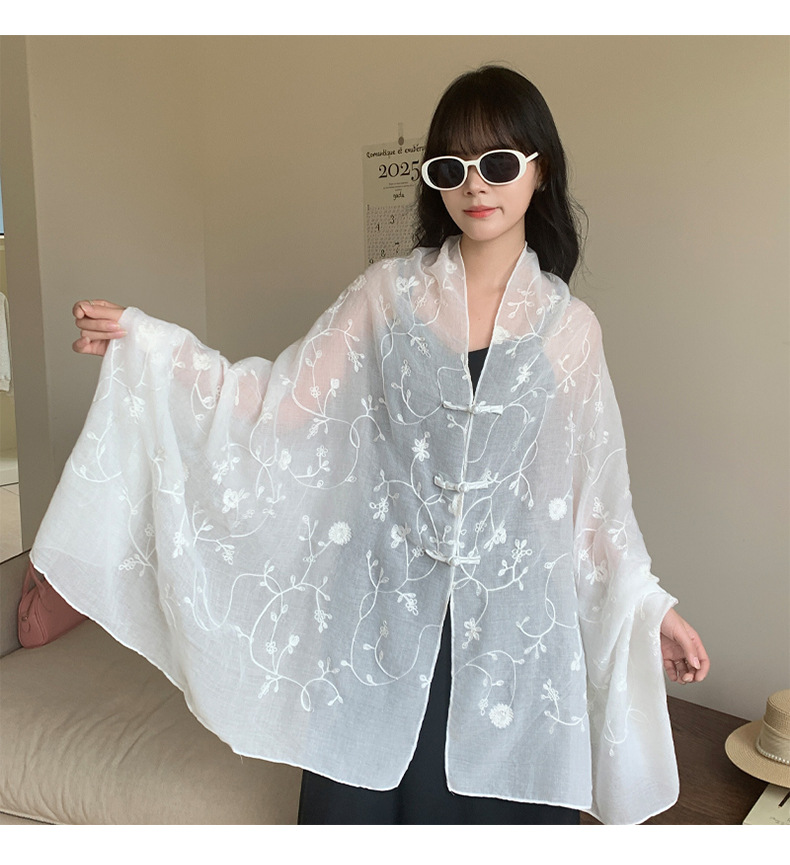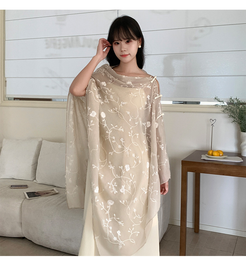 Bufanda de seda bordada, ambiente coreano, color sólido, todo fósforo, pañuelo en la cabeza, bufanda de cuello multiusos, hebilla de placa de protección solar, chal exterior