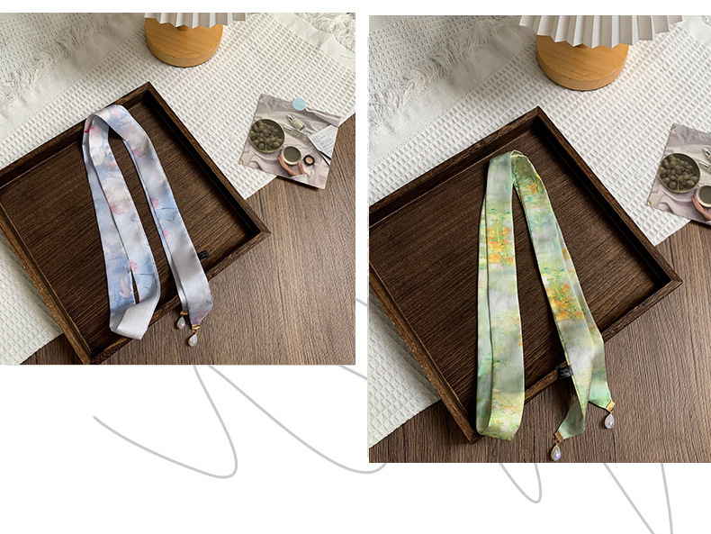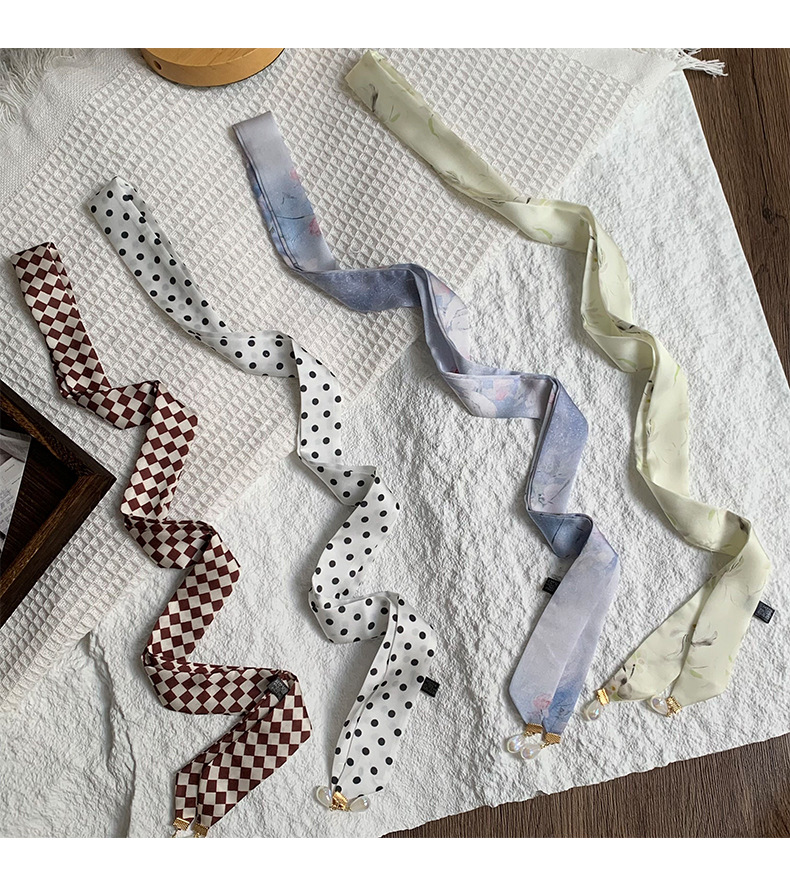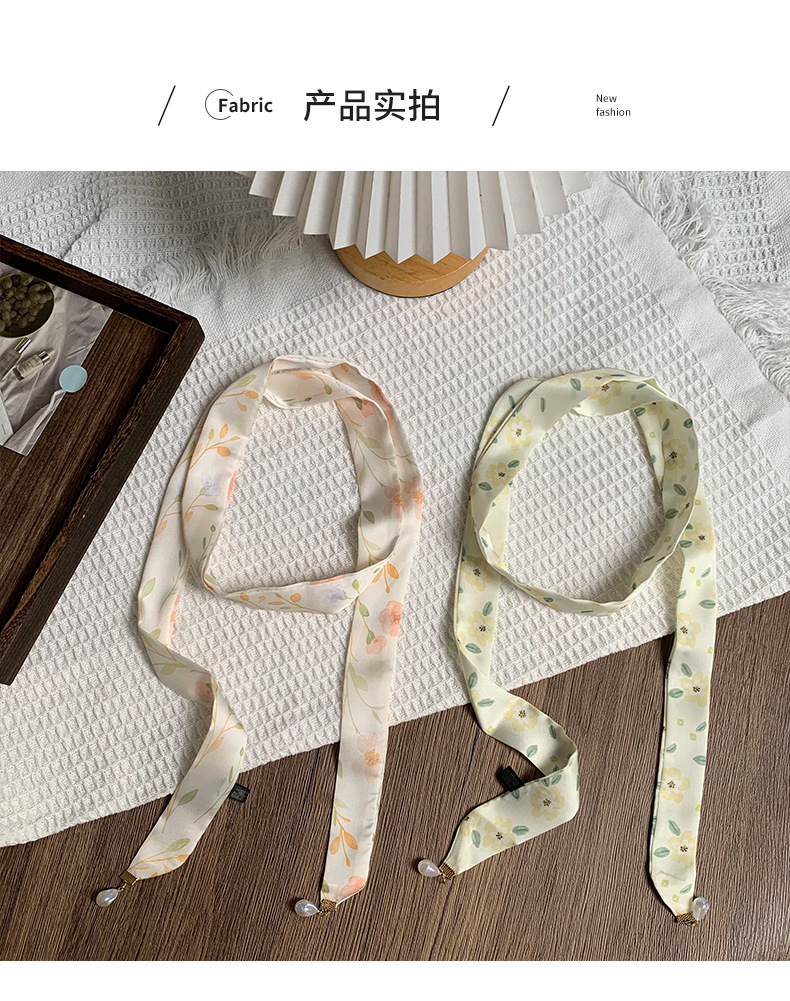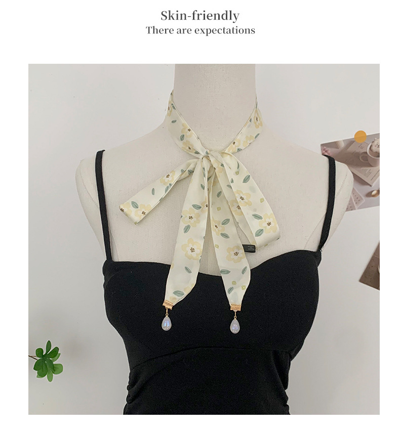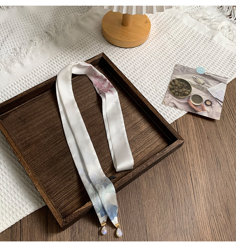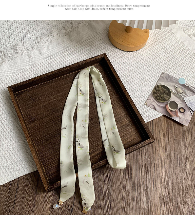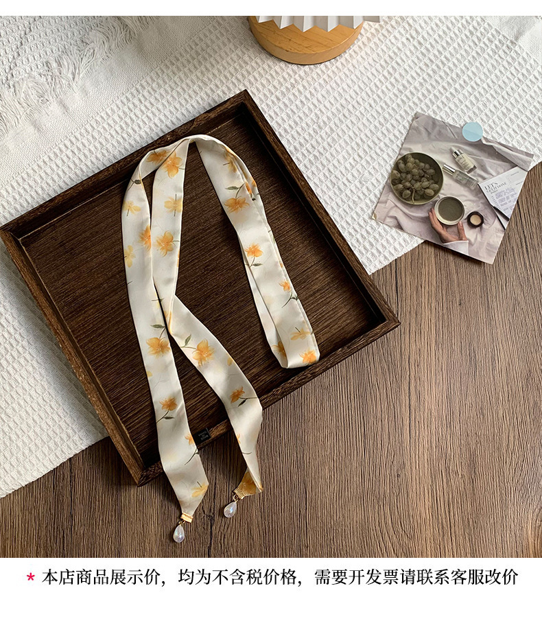 Bufanda de seda, sentido avanzado, nueva bufanda pequeña de verano, estilo antiguo, lazo, perla, colgante pequeño, pañuelo en la cabeza, cinta para el cabello atada, serpentinas para el cabello