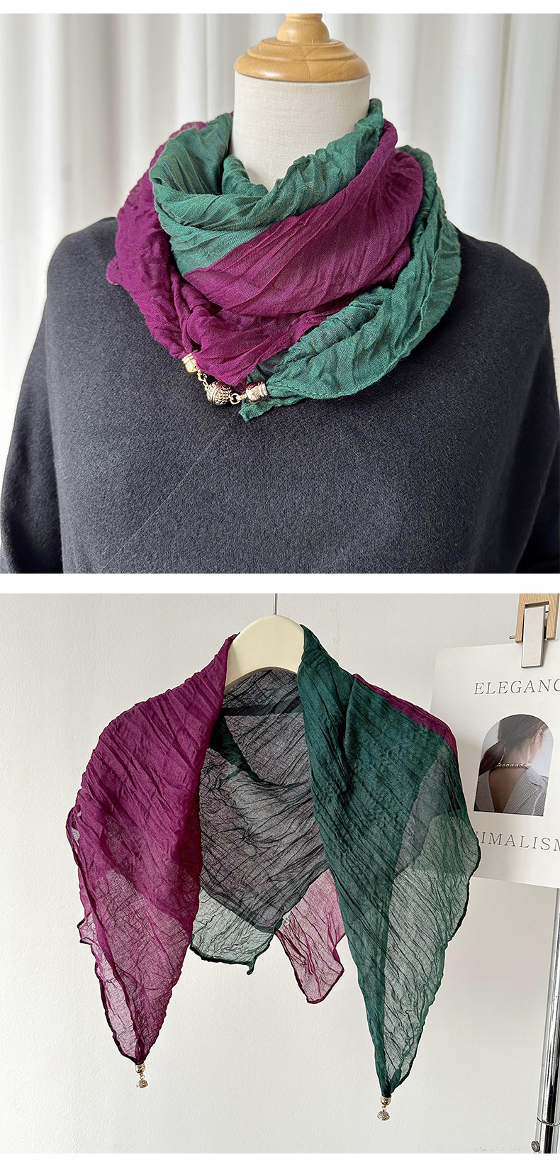 Buckle magnético pliegue bufandas de algodón y lino collar protector de cuello frío otoño y invierno decoración de moda bufandas cuadradas