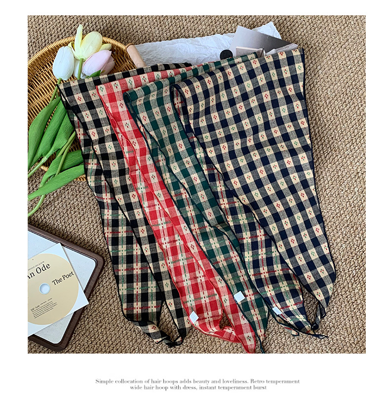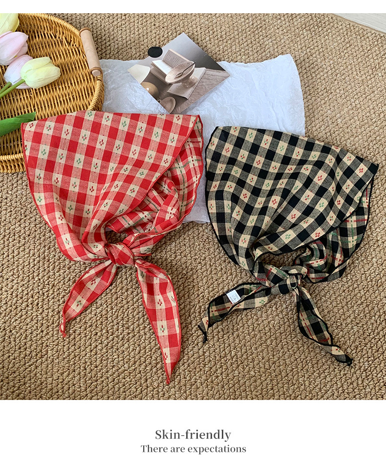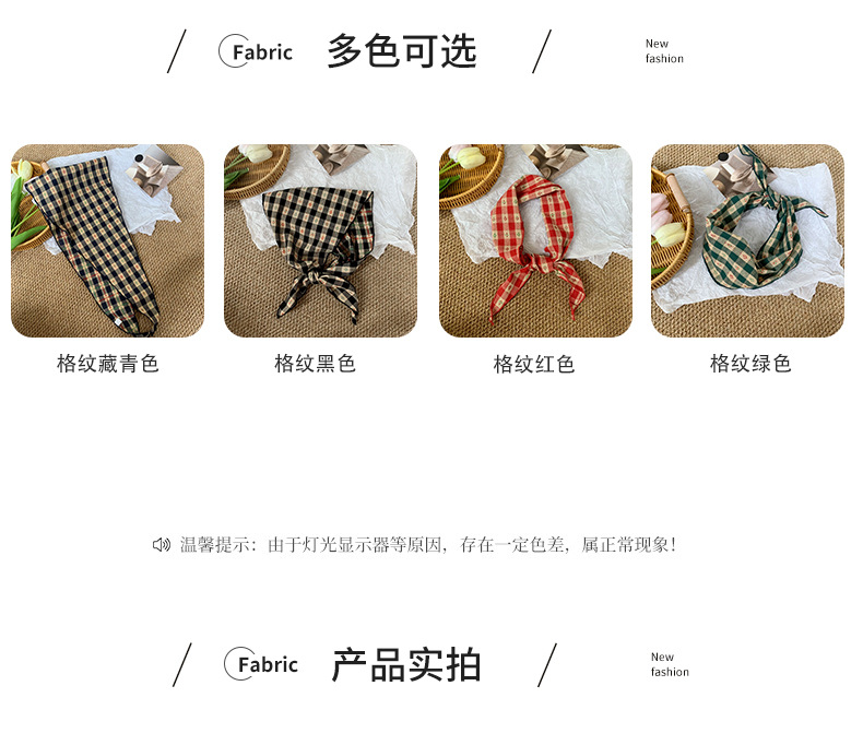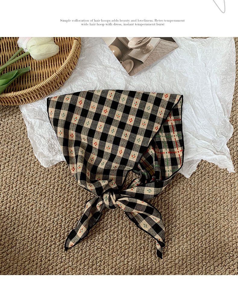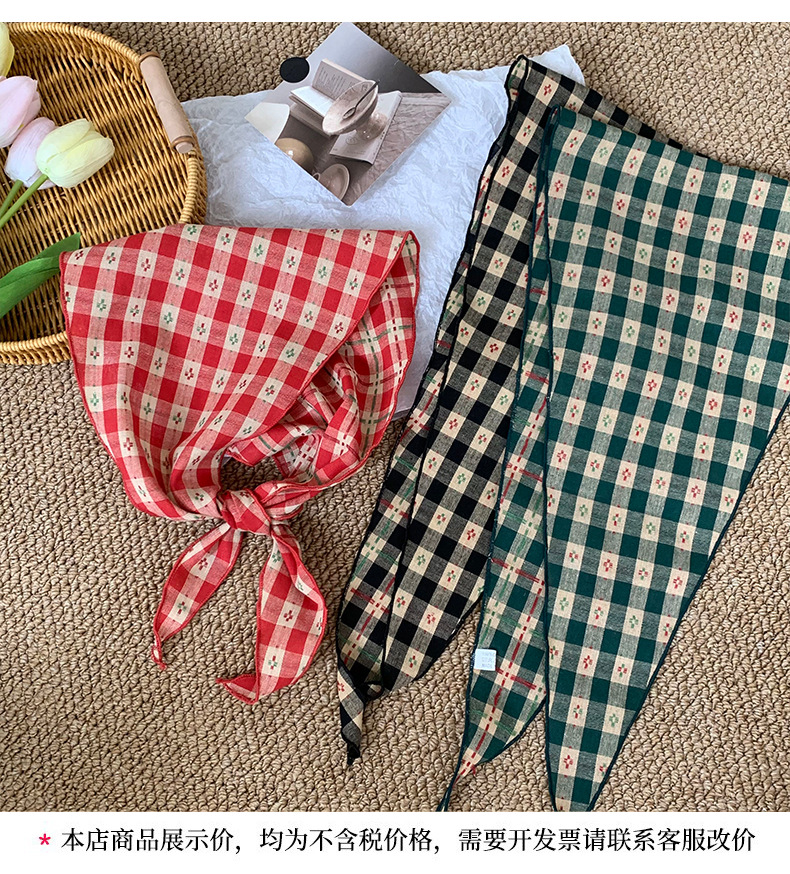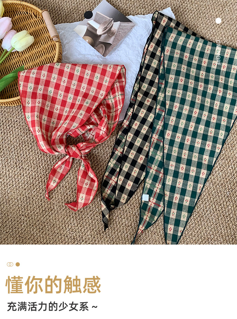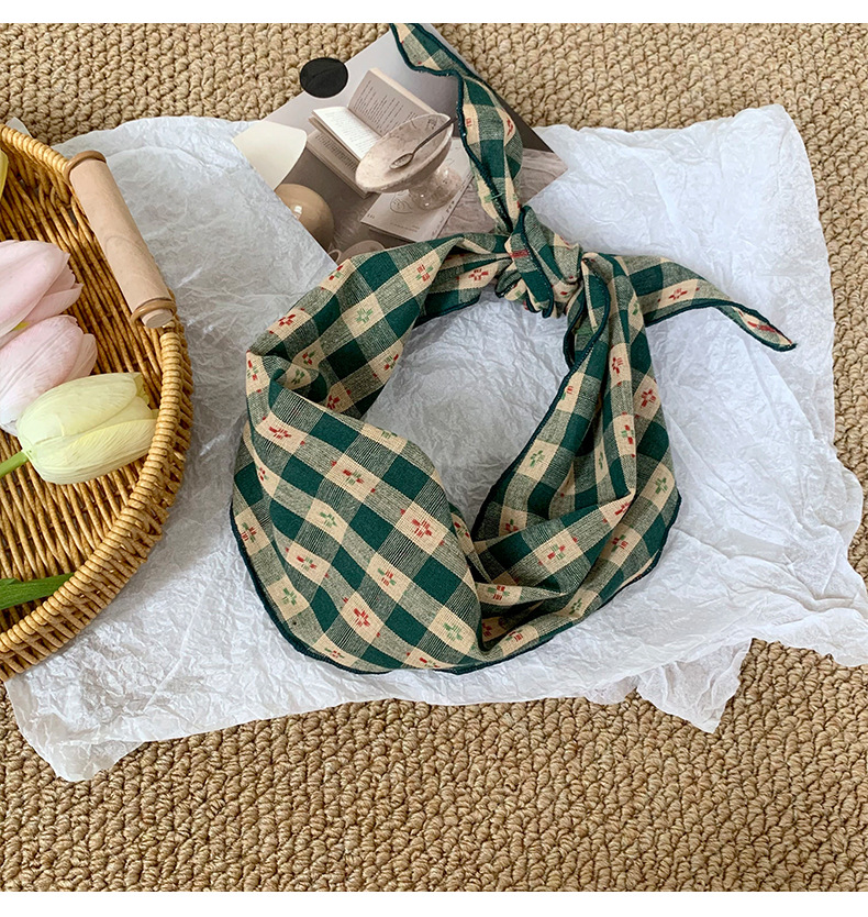 Pañuelo en la cabeza Summer Girl Pastoral Todo-fósforo Arte retro Cuadrícula Triángulo Pañuelo pequeño de moda Decoración Pañuelo en la cabeza Cinturón para el cabello Atar el cabello
