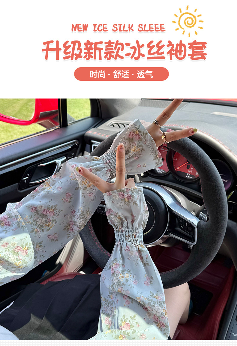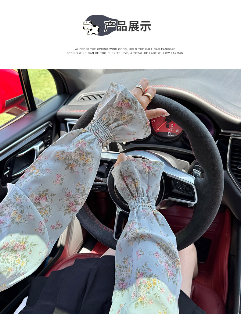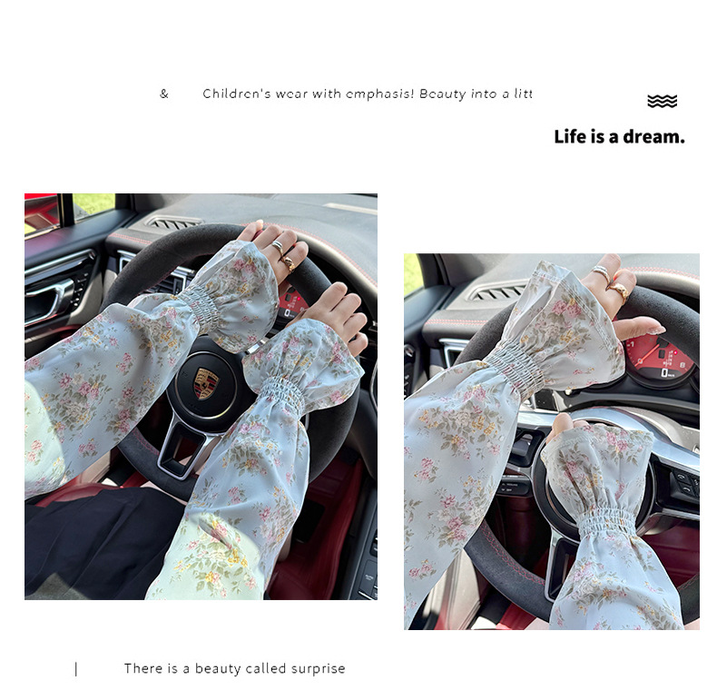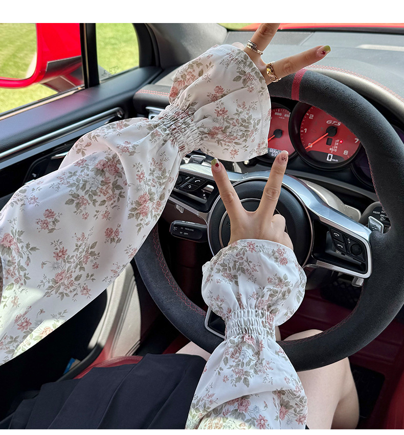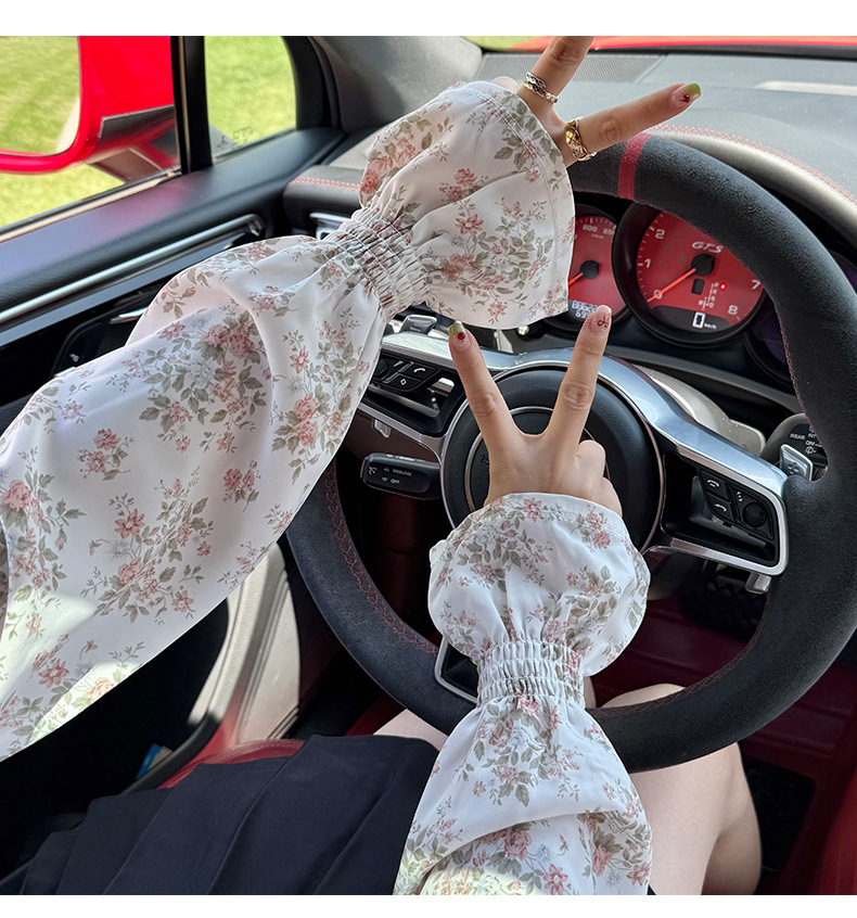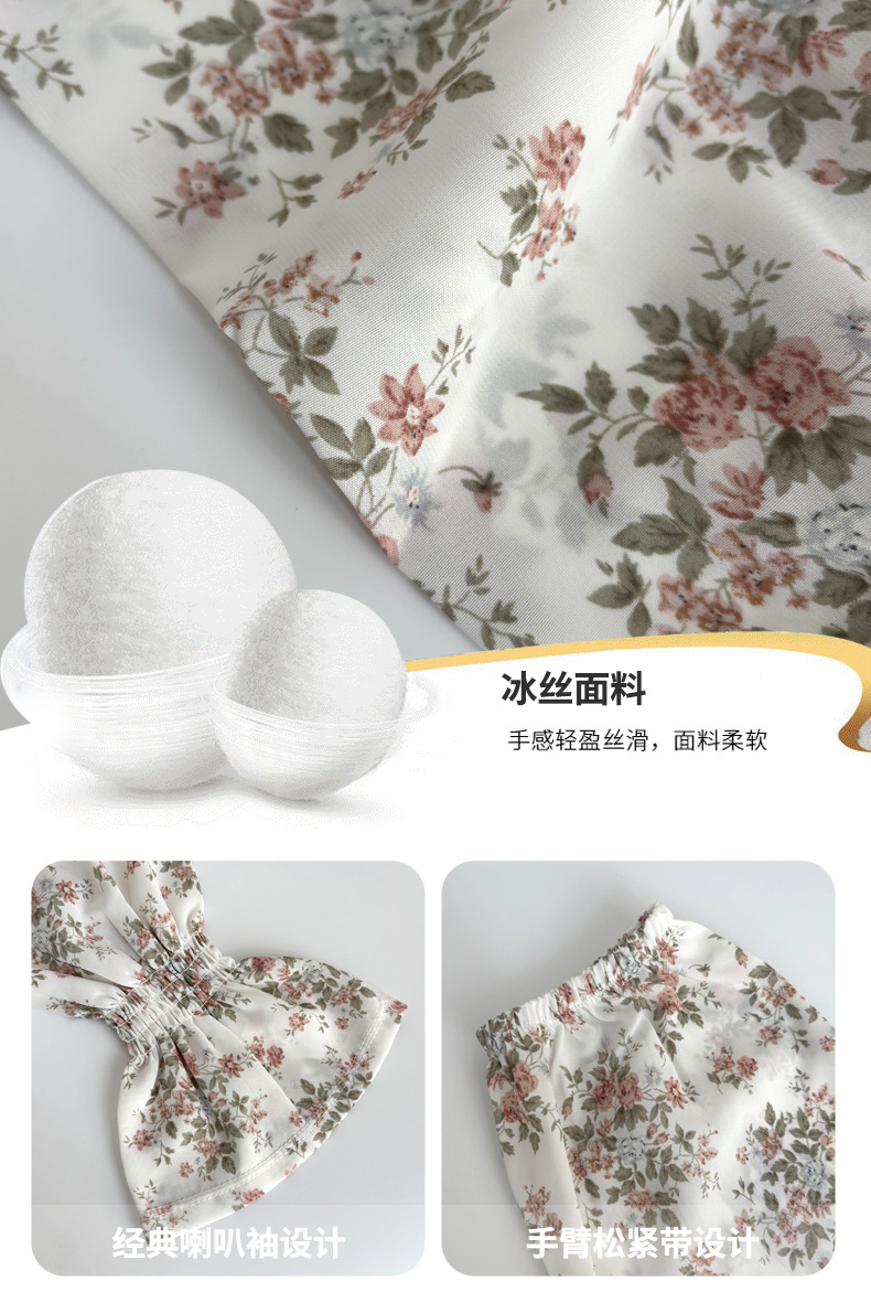 Manga de hielo Manga de soplo de gasa dulce suelta y transpirable Nuevo estilo floral de verano con falda Manga de protección solar