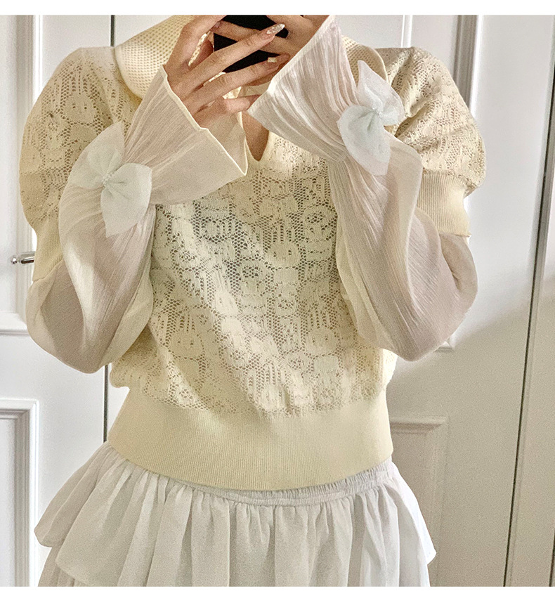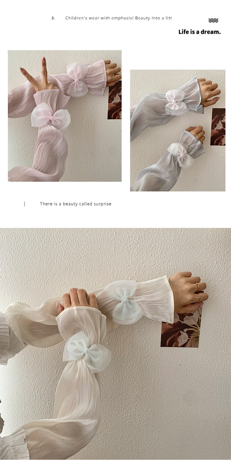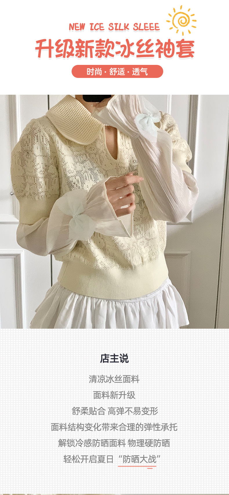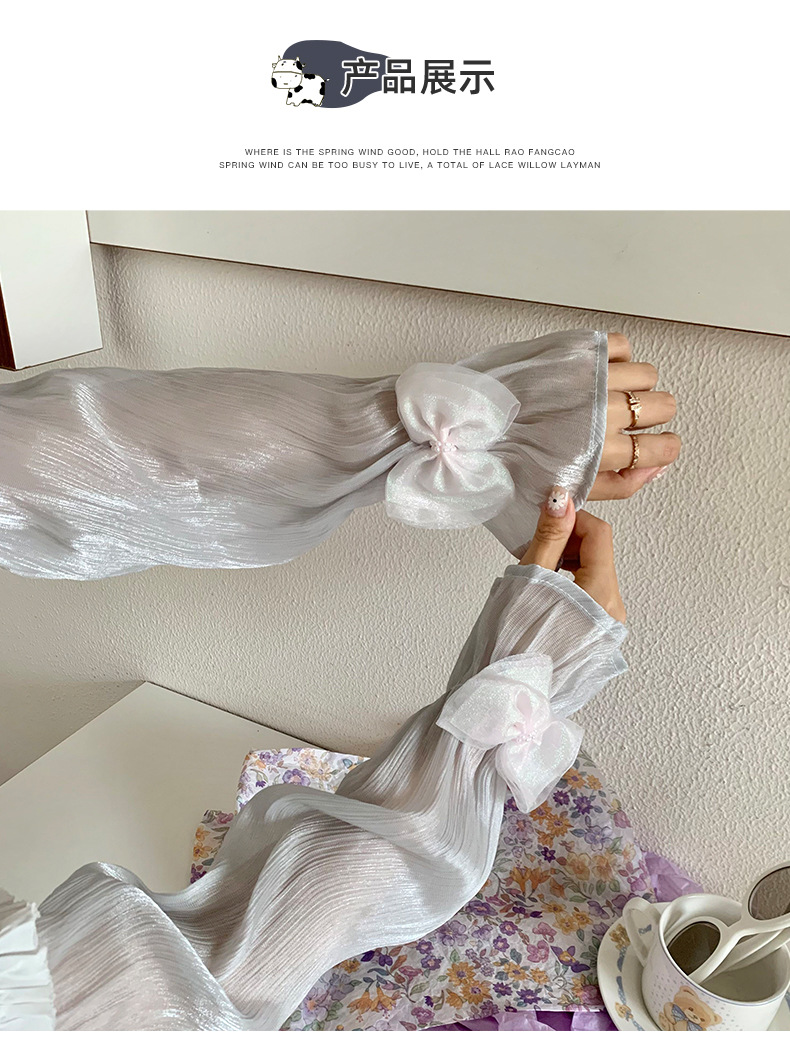 Mangas de hielo, mangas de protección solar, verano, nuevo estilo, temperamento elegante, gasa de malla, lazo, mangas abullonadas sueltas, protección de mangas, protección de brazos