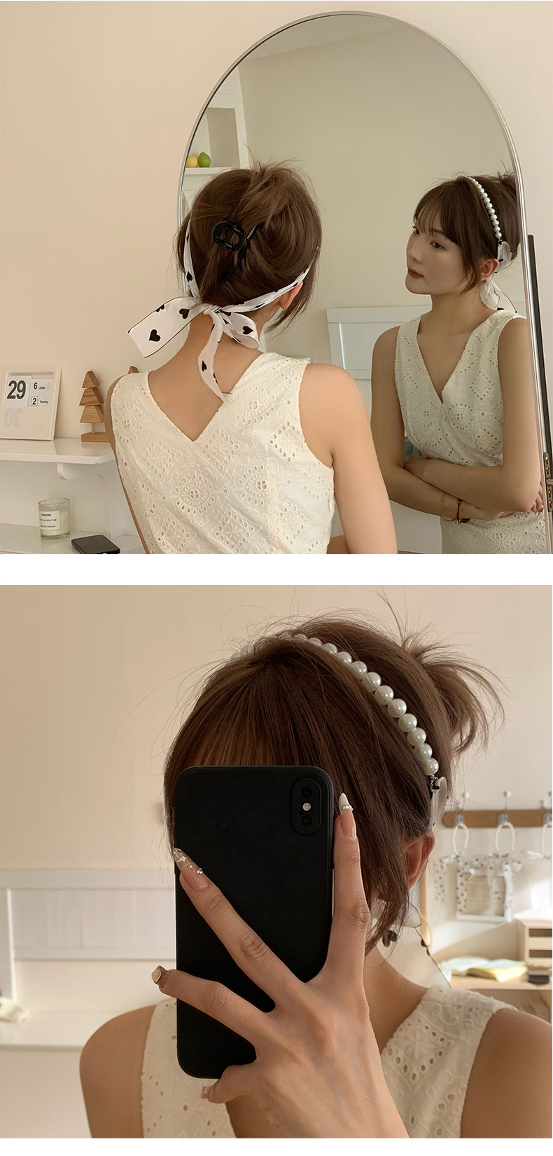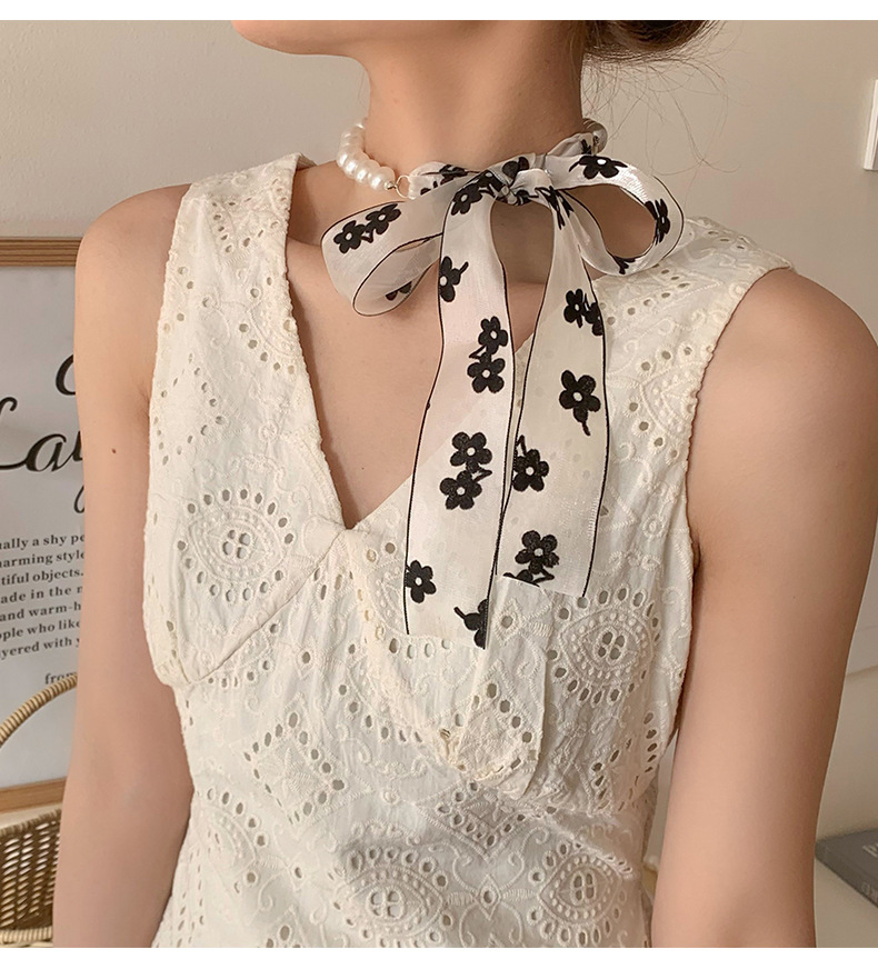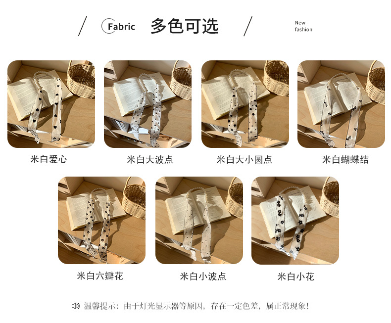 Nueva cinta de lunares, bufanda de seda de perlas, niña, primavera y verano, hada de todo fósforo, cinta pequeña, bufanda de viento, collar