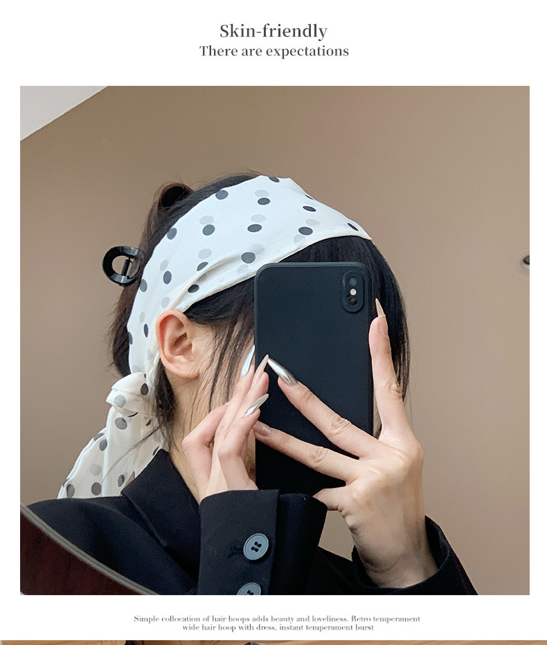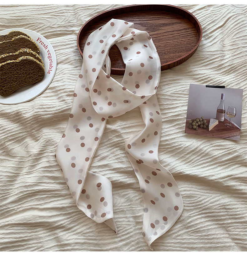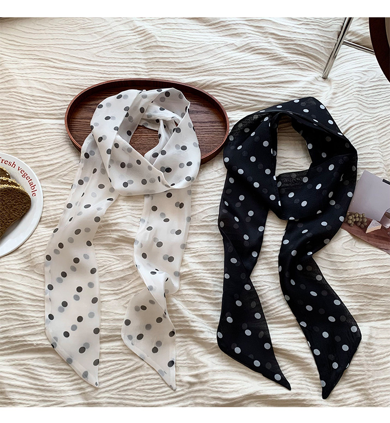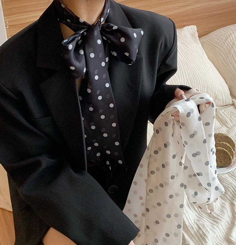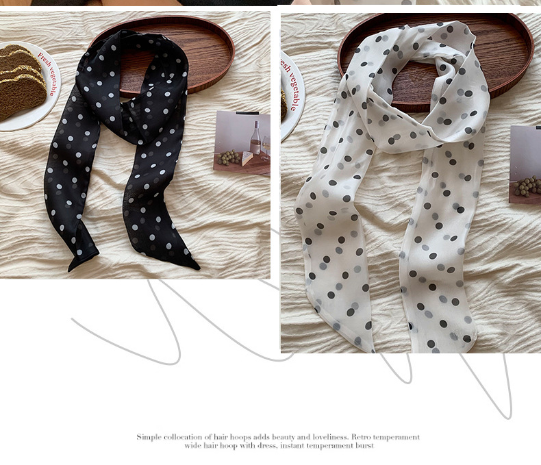 Bufanda de seda para mujer, banda larga, sensación de alta calidad, doble capa, lunares, cinta de moda, bufanda decorativa, bufanda, cinturón para el cabello
